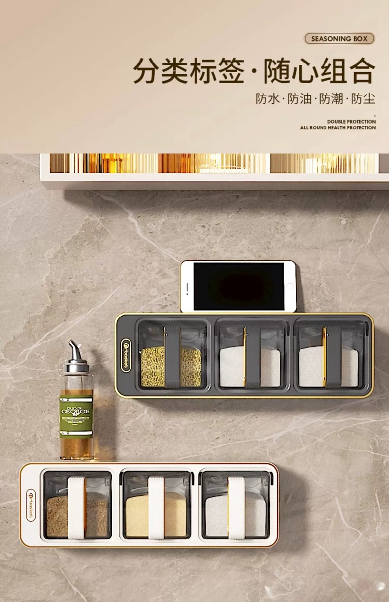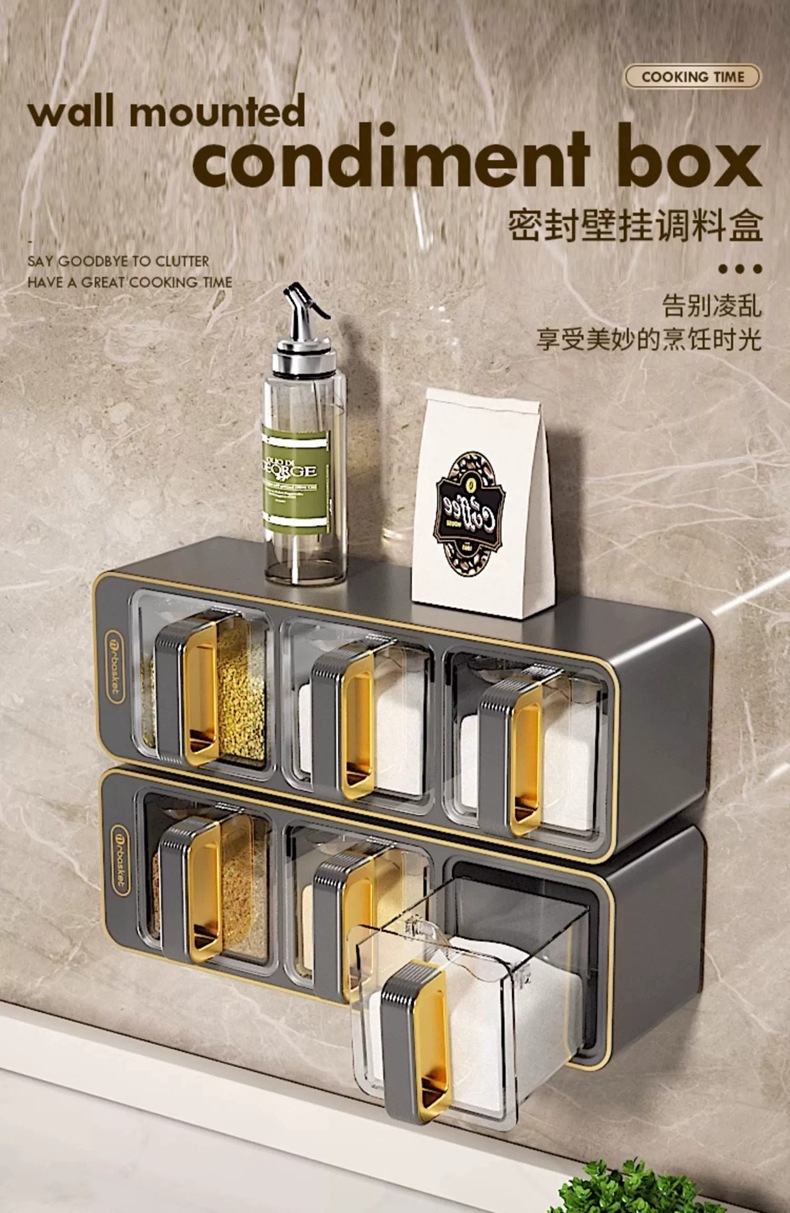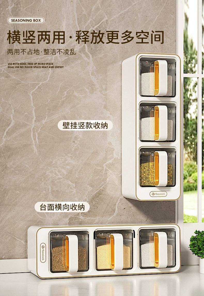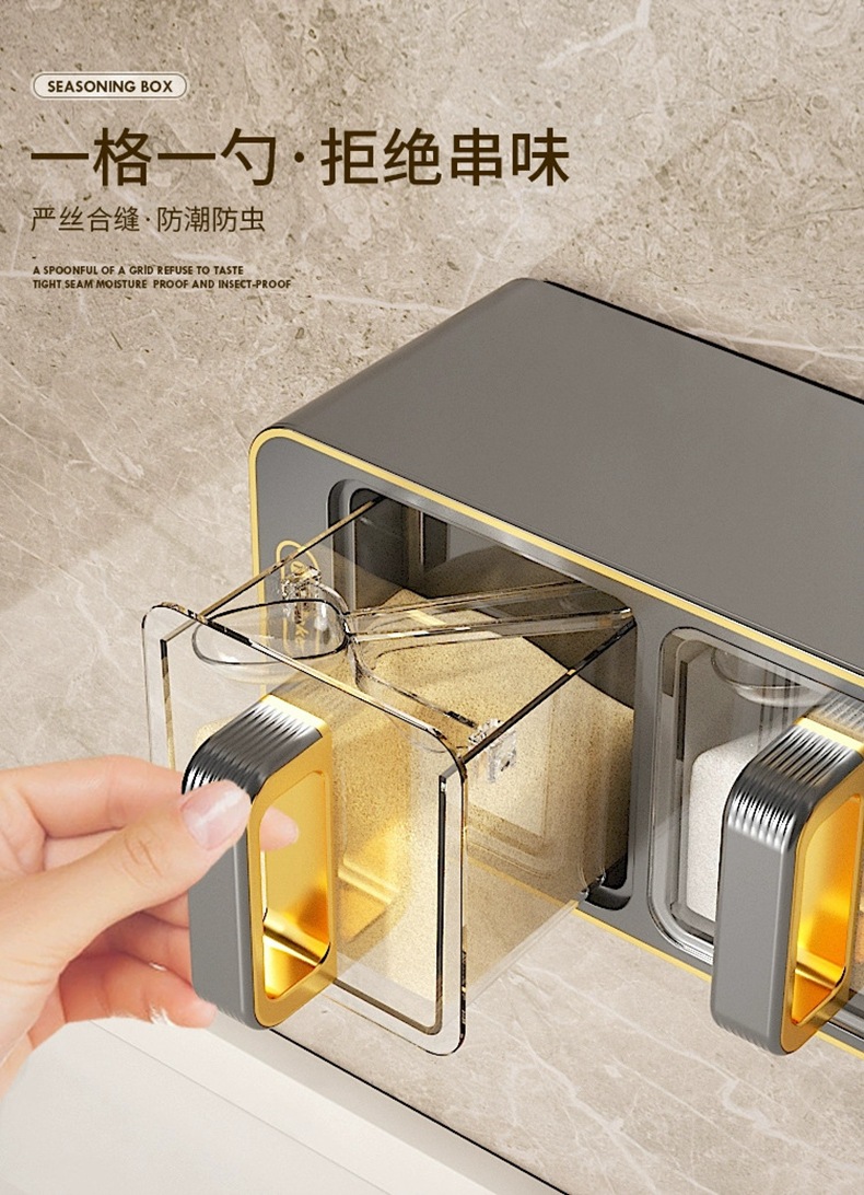 Caja de condimentos Caja de almacenamiento de condimentos de pimienta de cocina doméstica montada en la pared Juego de combinación de tarros de condimentos de sal MSG