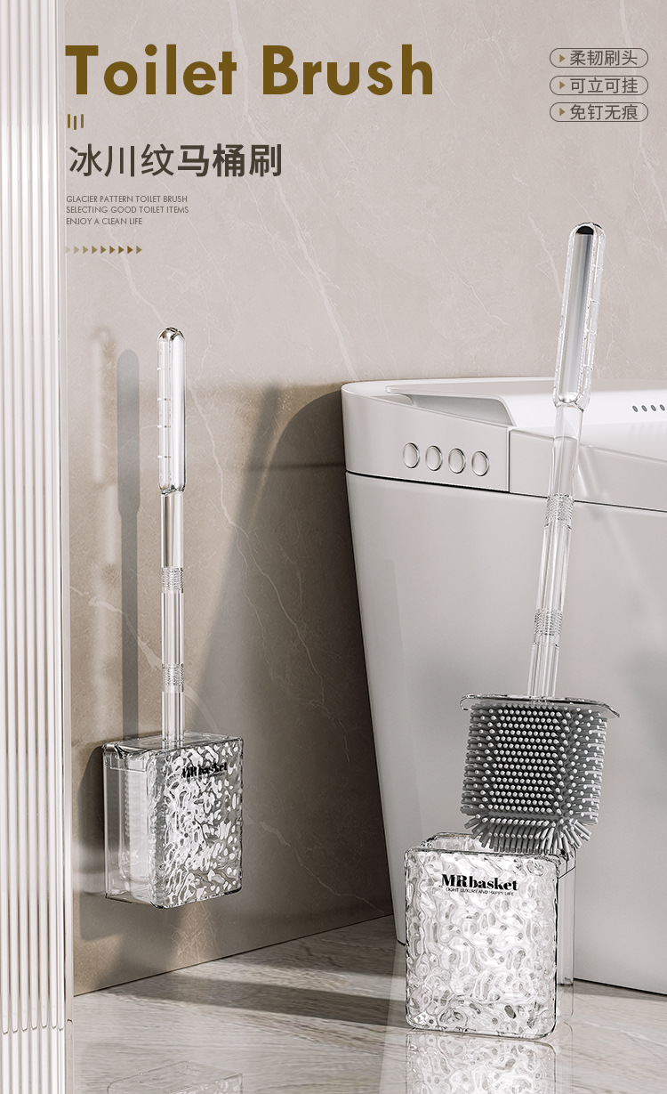 2023 nuevo baño colgante de pared cepillo de limpieza de silicona mango largo cepillo de inodoro de lujo ligero hogar sin ángulo muerto