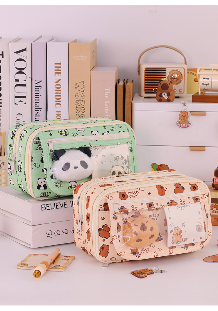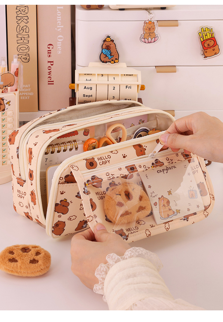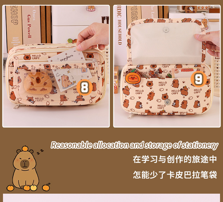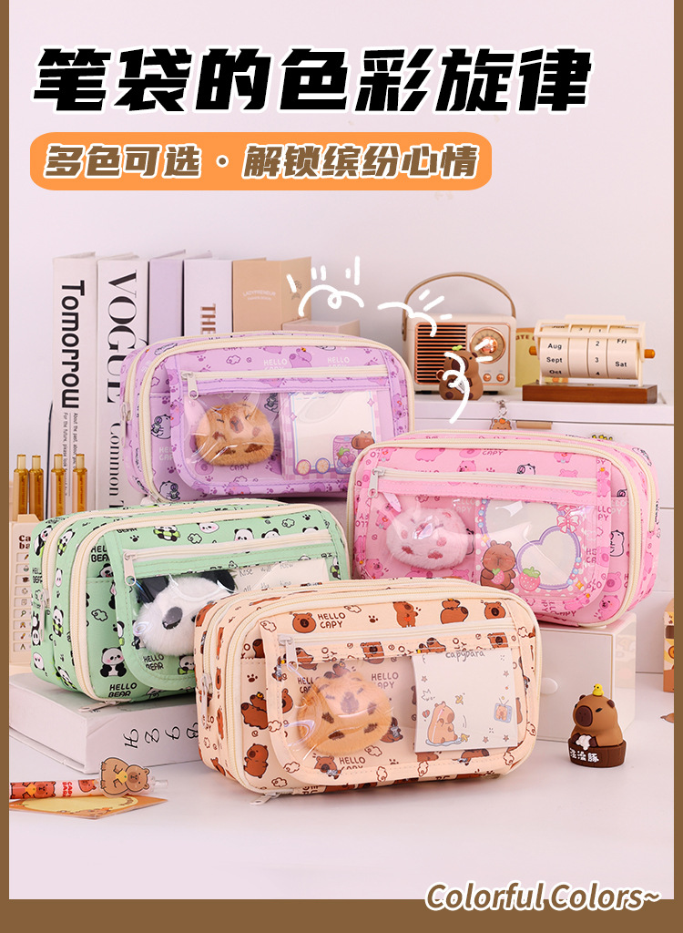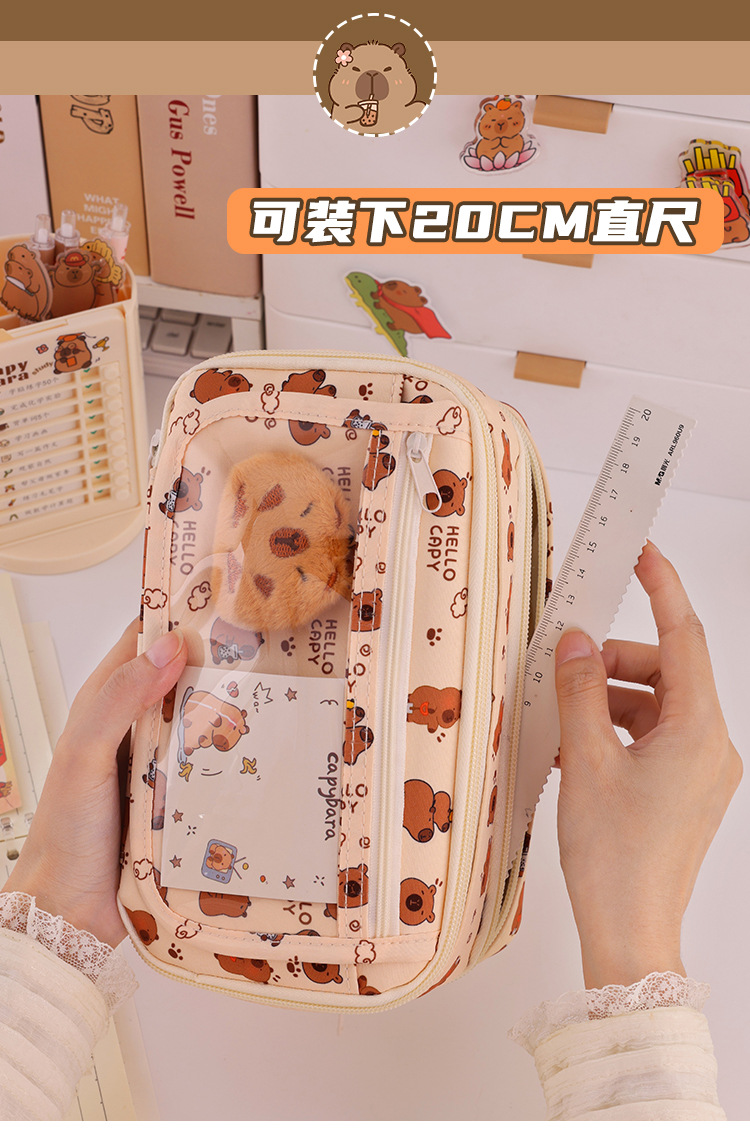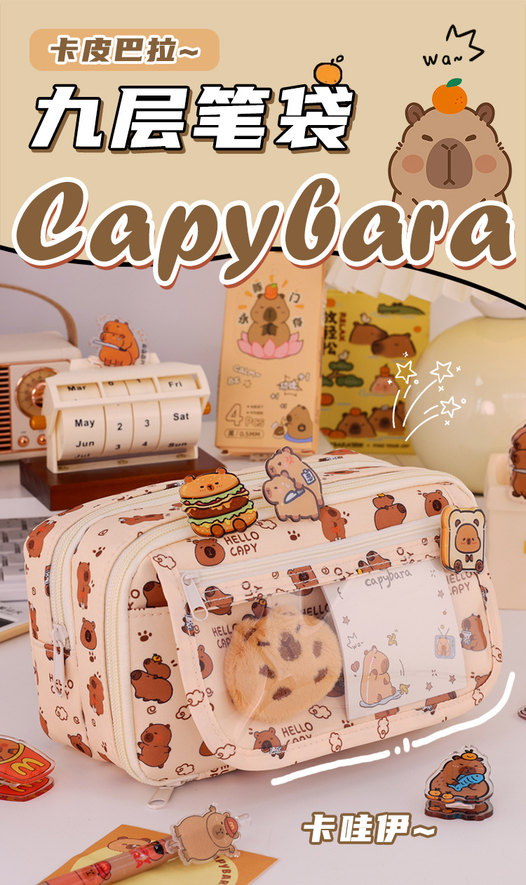 Kapibara 9 capa de gran capacidad bolsas de lápiz transparentes caja de papelería de alto valor facial multifuncional caja de lápiz para estudiantes de secundaria primaria