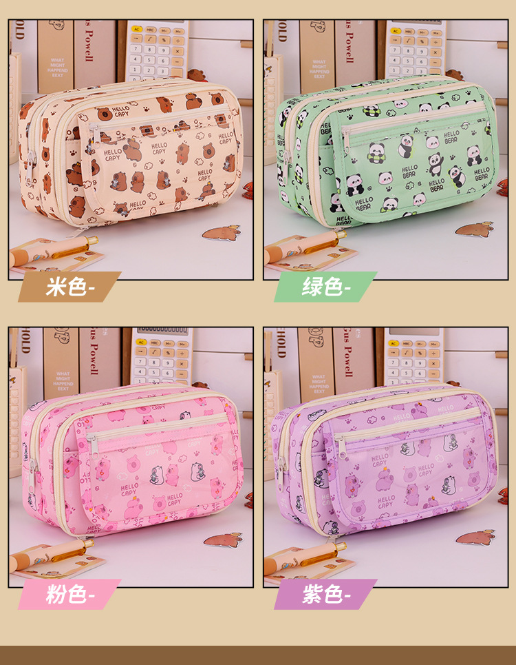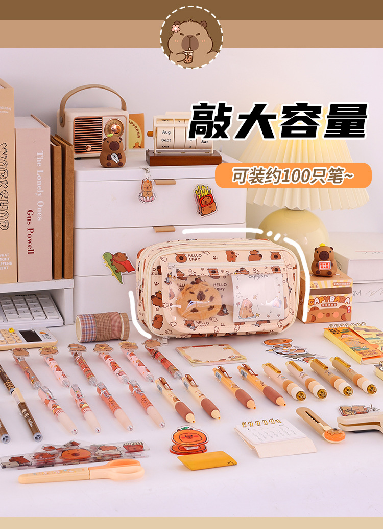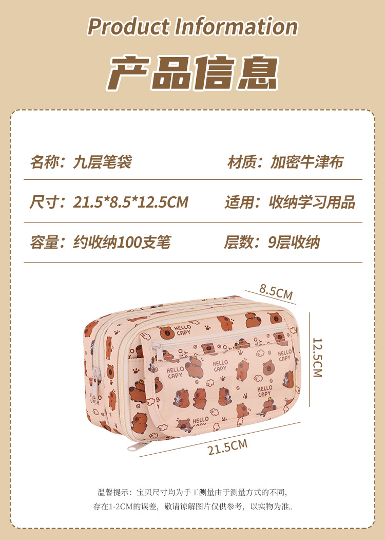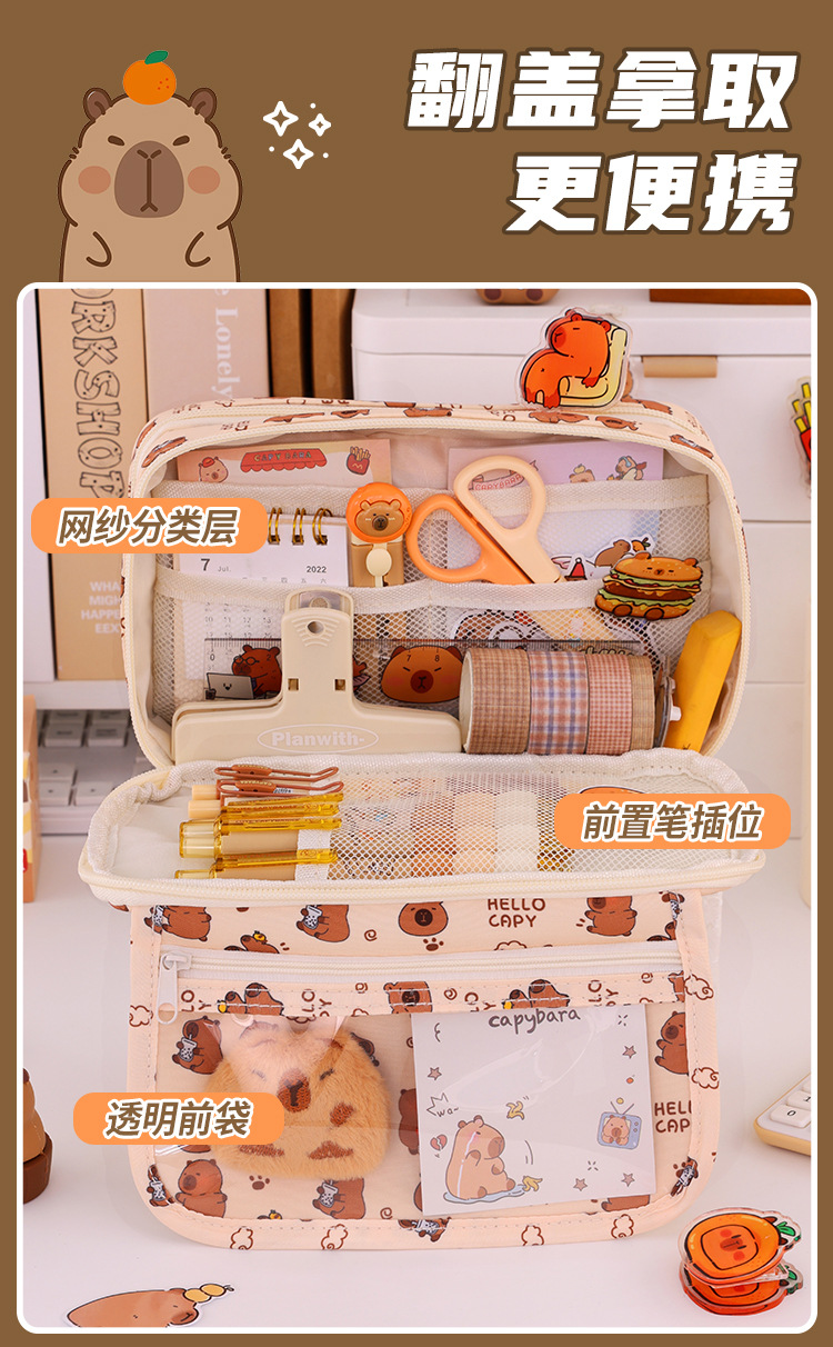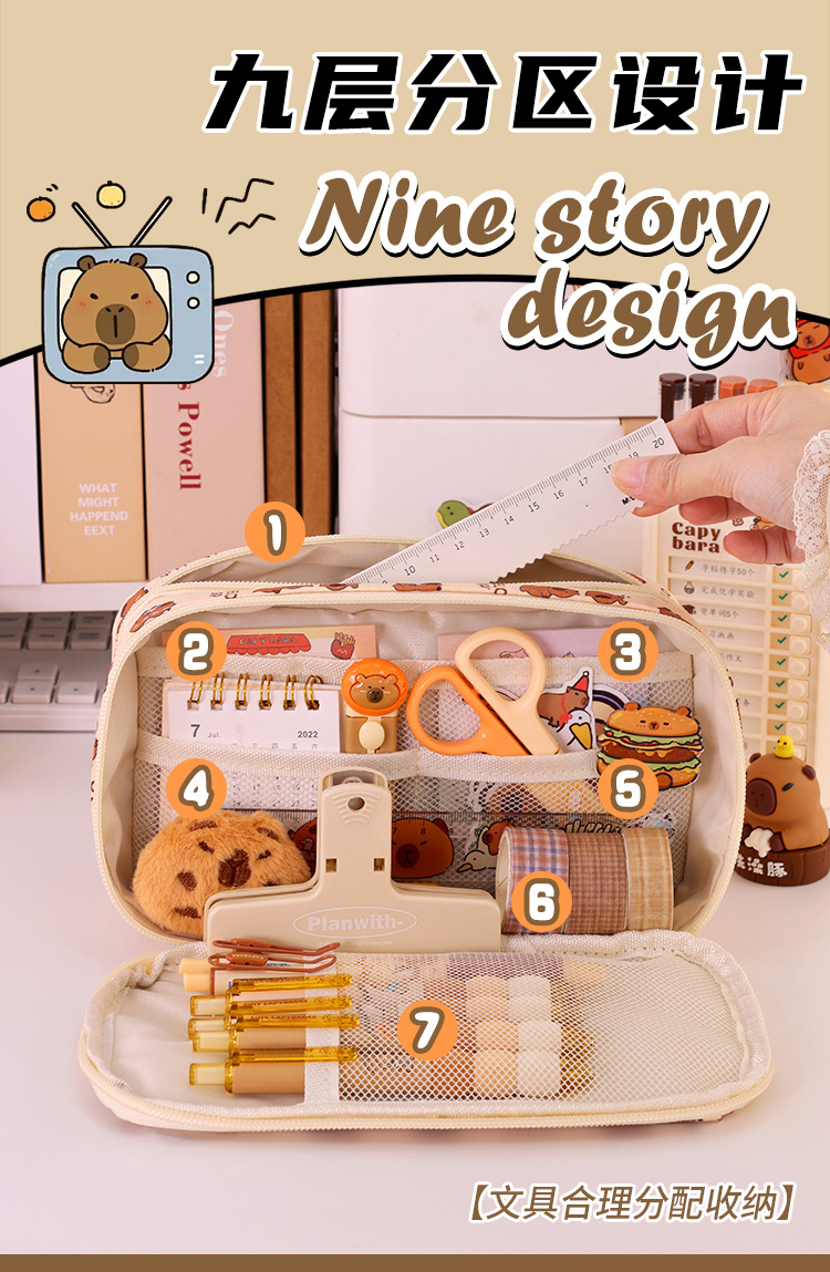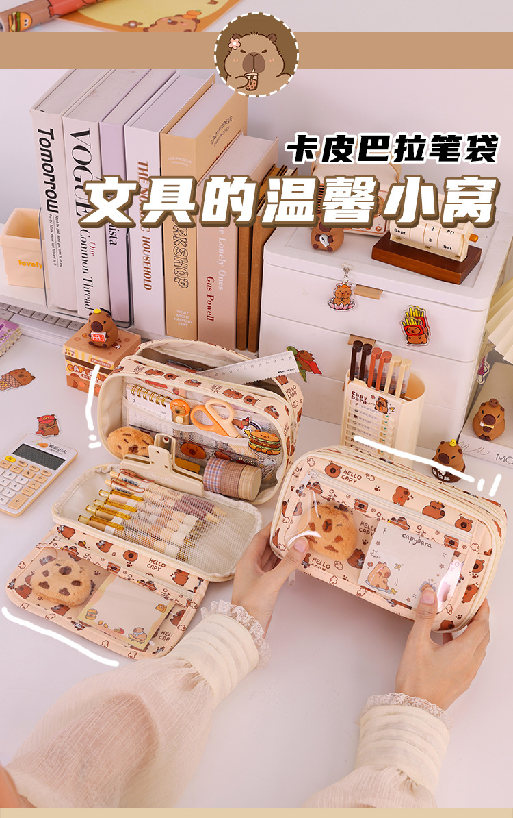 Kapibara 9 capa de gran capacidad bolsas de lápiz transparentes caja de papelería de alto valor facial multifuncional caja de lápiz para estudiantes de secundaria primaria