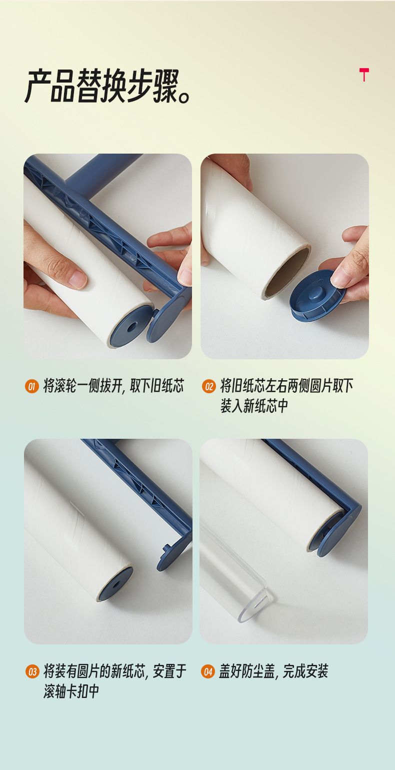 Rodillo removedor de pelusa de papel pegajoso desgarrable cepillo de rodillo de pelo de succión cepillo de eliminación de pelo ropa rollo de papel de repuesto rodillo de fieltro pegajoso
