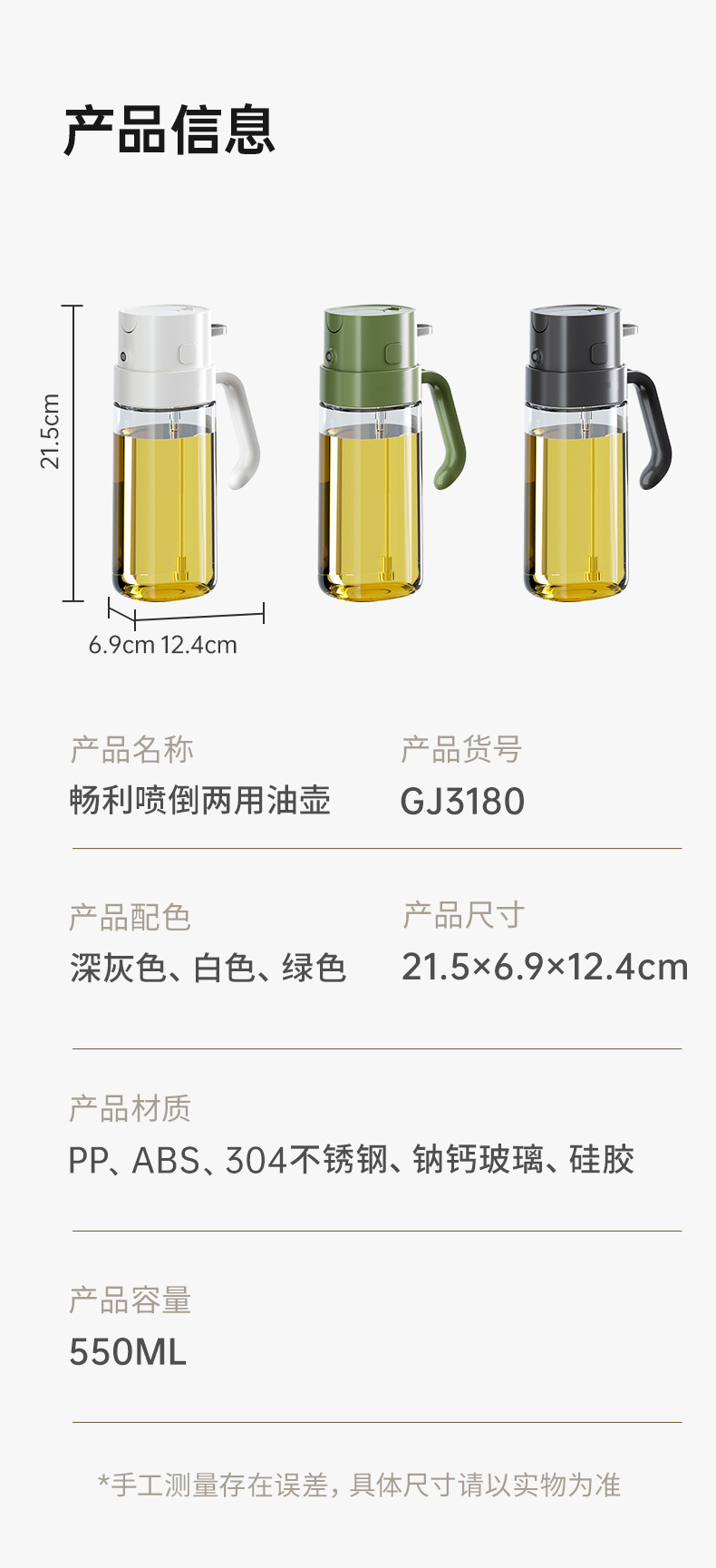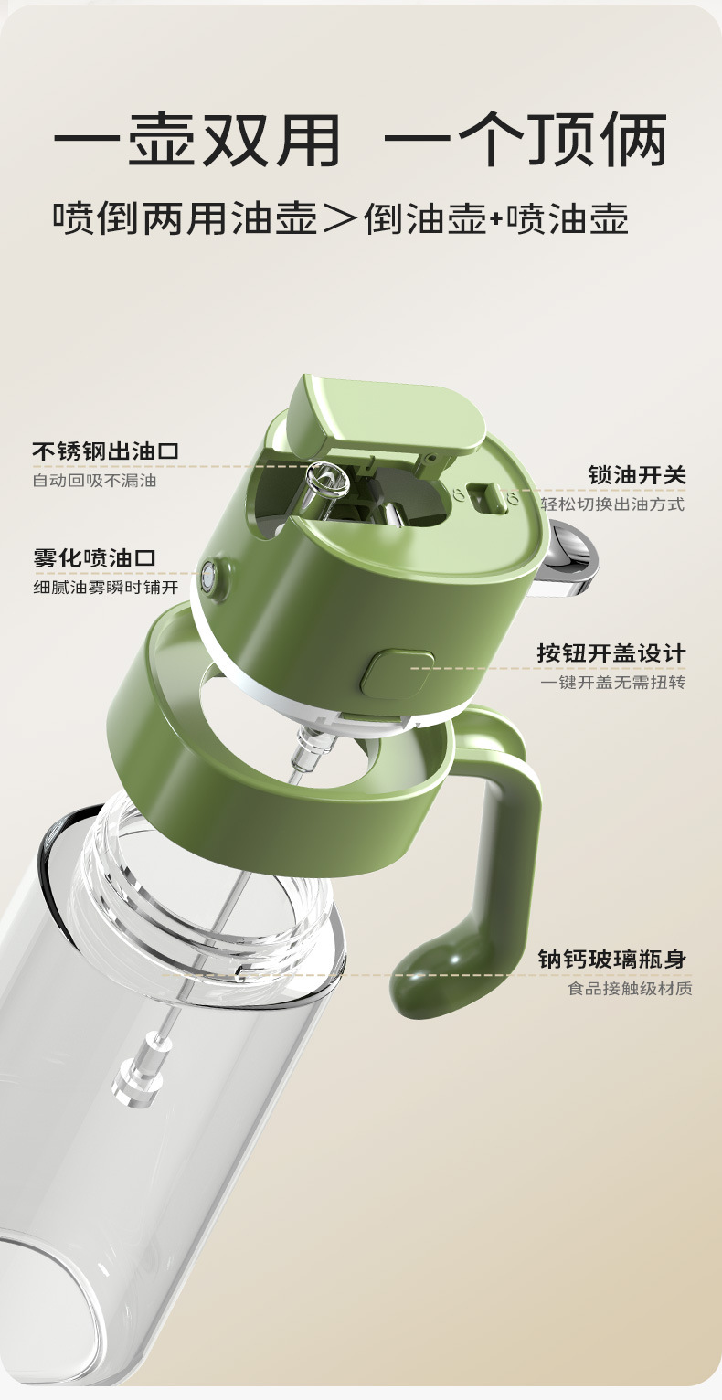 Botella de pulverización de aceite de oliva de grado alimenticio de vidrio de cocina doméstica botella de pulverización de aceite de oliva atomizadora de aceite freidora de aire botella de pulverización de aceite
