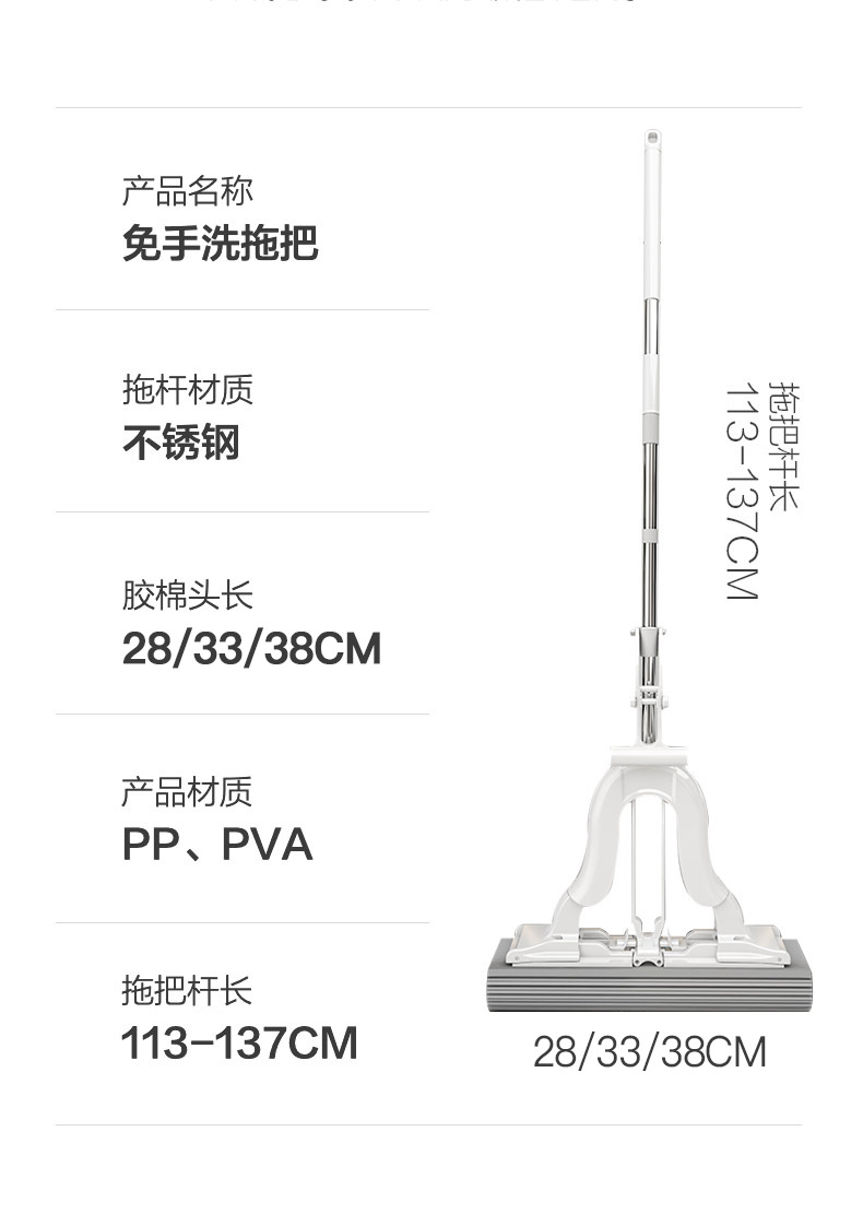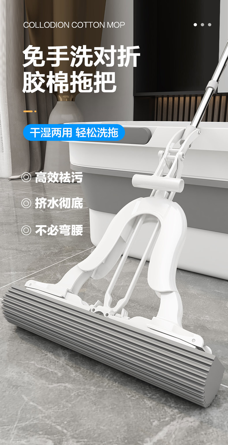 Yooca trapeador de esponja de lavado a mano gratuito para el hogar One Tol Net 2024 nuevo trapeador de trapeador de suelo de algodón plegable absorbente