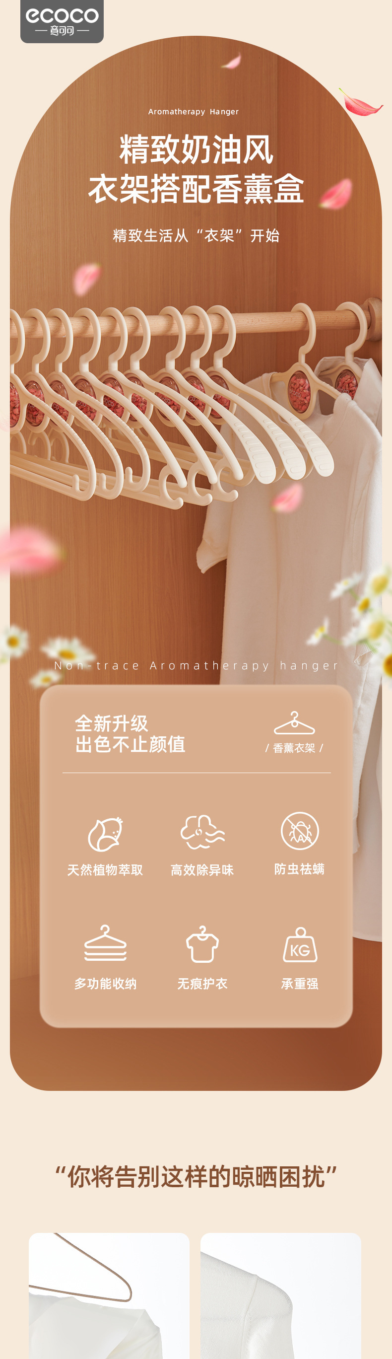 Percha de cacao italiano ropa de hogar percha estudiante dormitorio apoyo antideslizante sin costuras anti-hombro esquina multifuncional percha