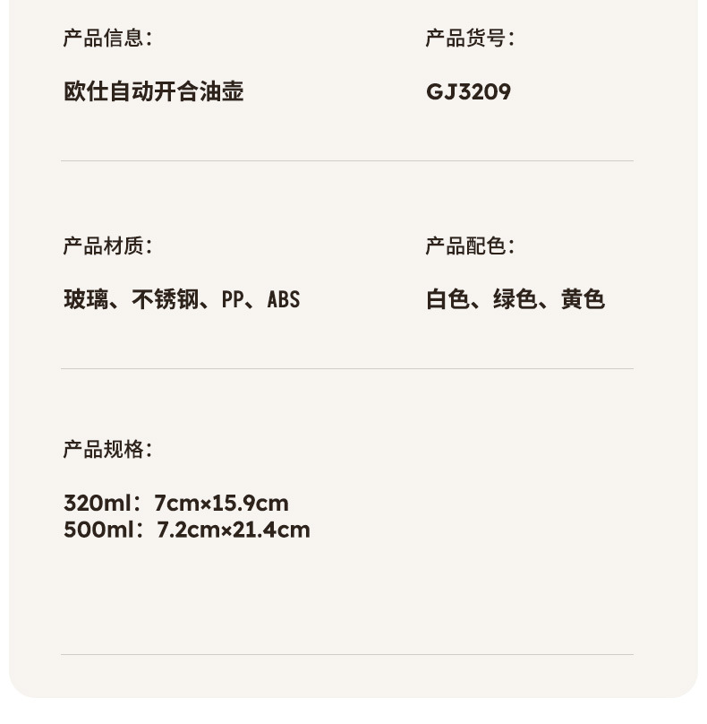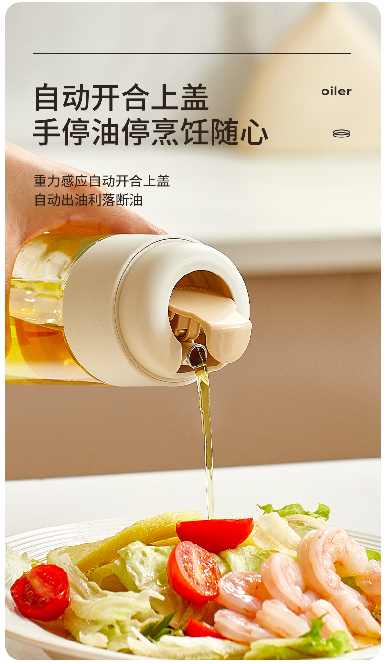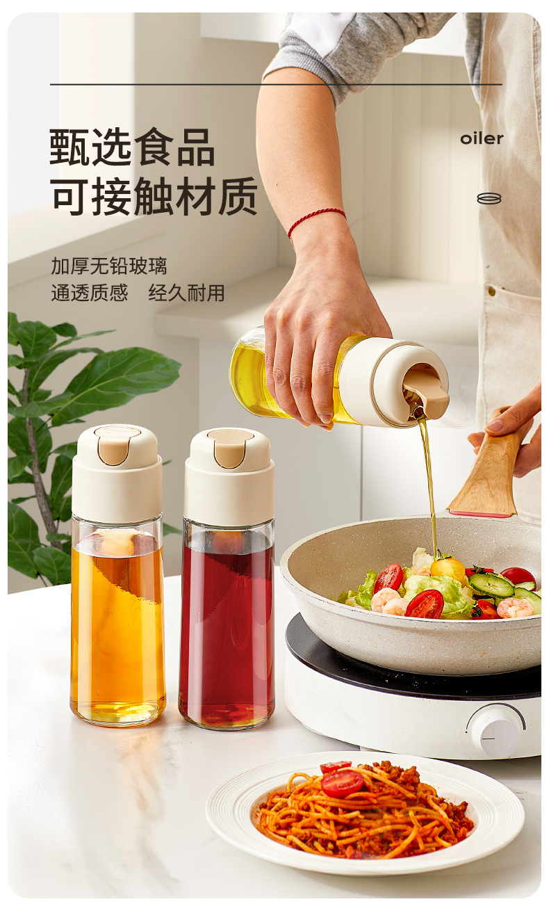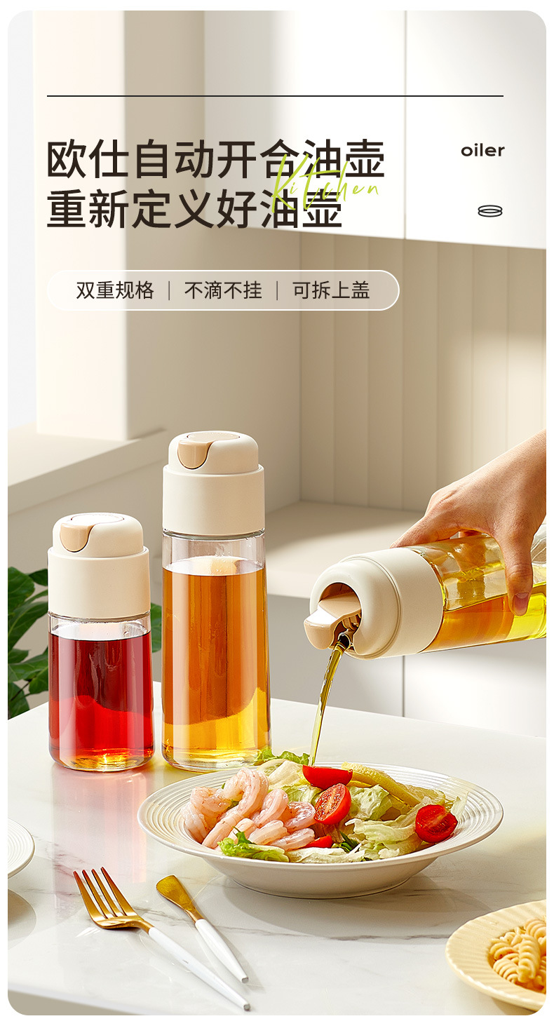 Oushi olla de aceite de vidrio apertura y cierre automático olla de aceite a prueba de fugas olla de cocina hogar sin aceite colgante botella de condimento de salsa de soja botella de aceite