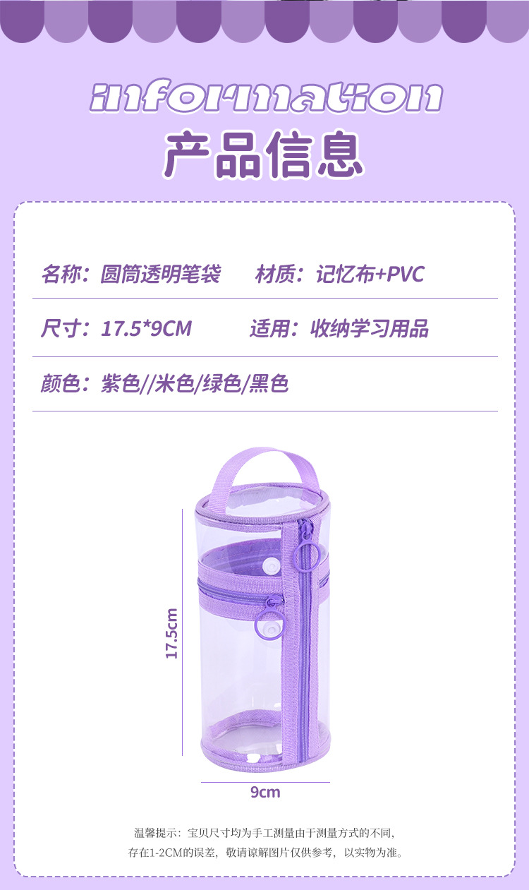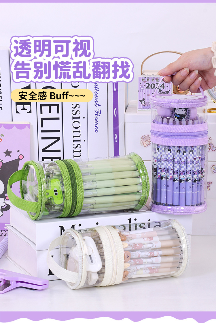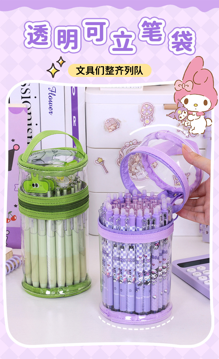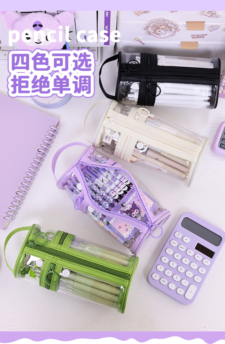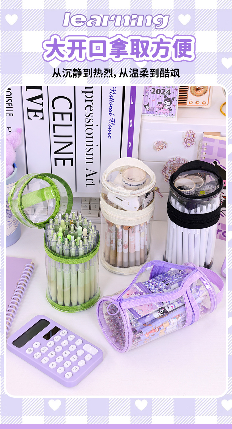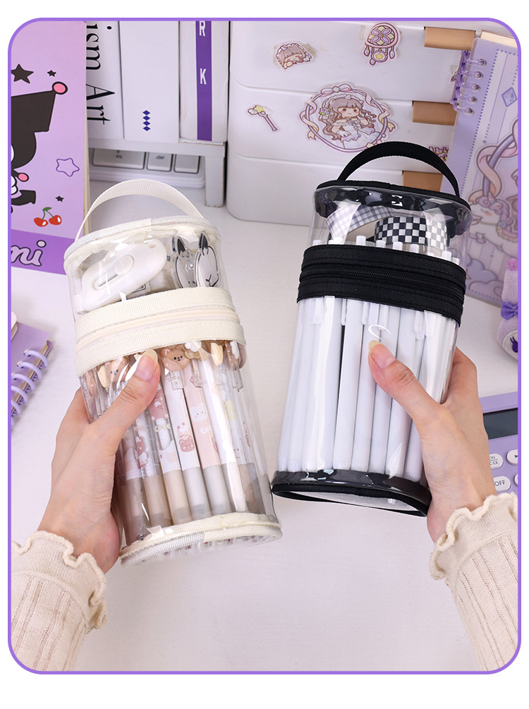 Bolsa de lápiz transparente redonda simple, caja de lápiz cilíndrico de alto valor facial, caja de papelería de almacenamiento de lápiz transparente de gran capacidad para estudiantes