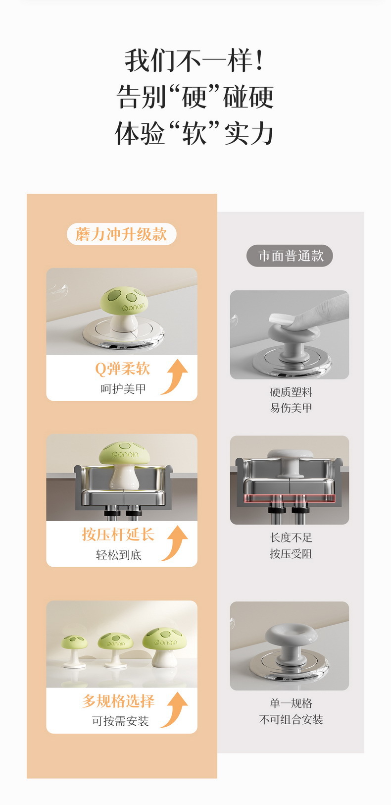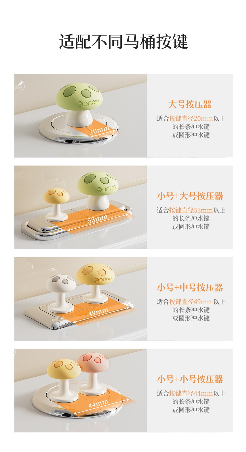 Presión del inodoro, interruptor del tanque de agua del inodoro, botón especial de manicure, botón de descarga creativo encantador