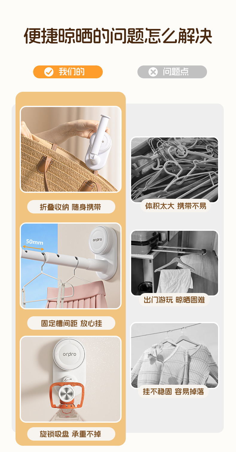 Ventosa de viaje, tendedero, viaje portátil, hotel, perchero plegable, artefacto de secado telescópico sin perforación