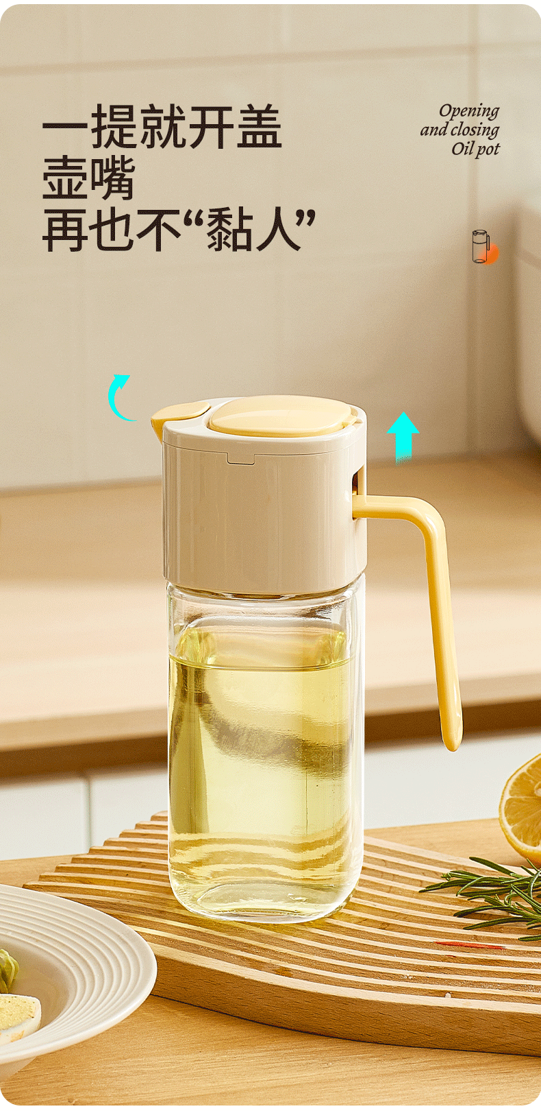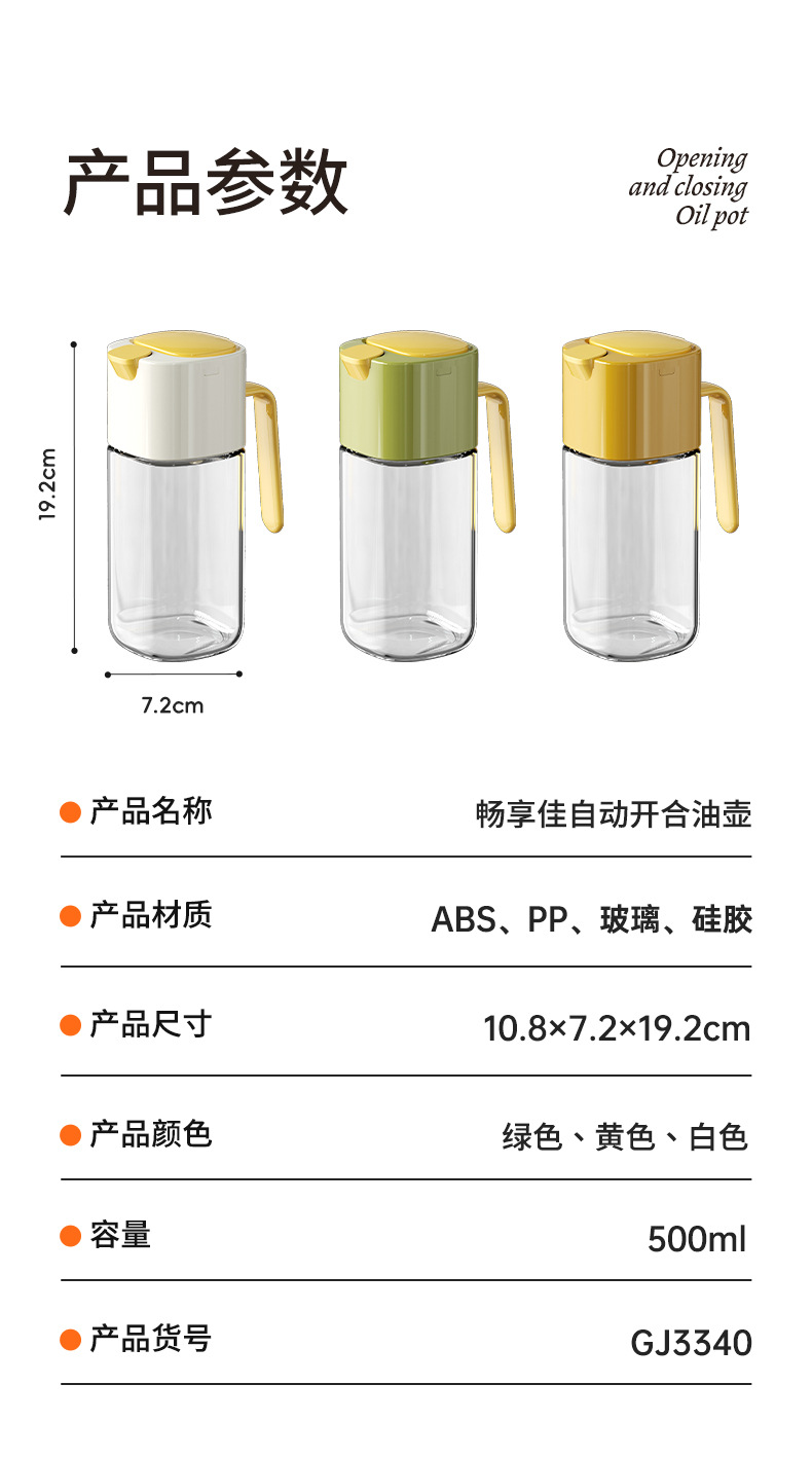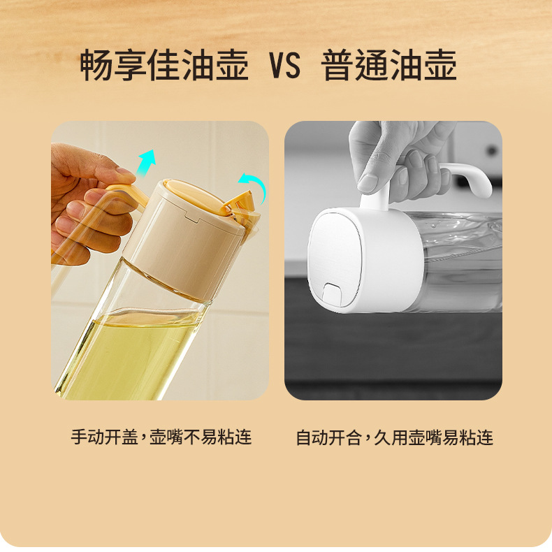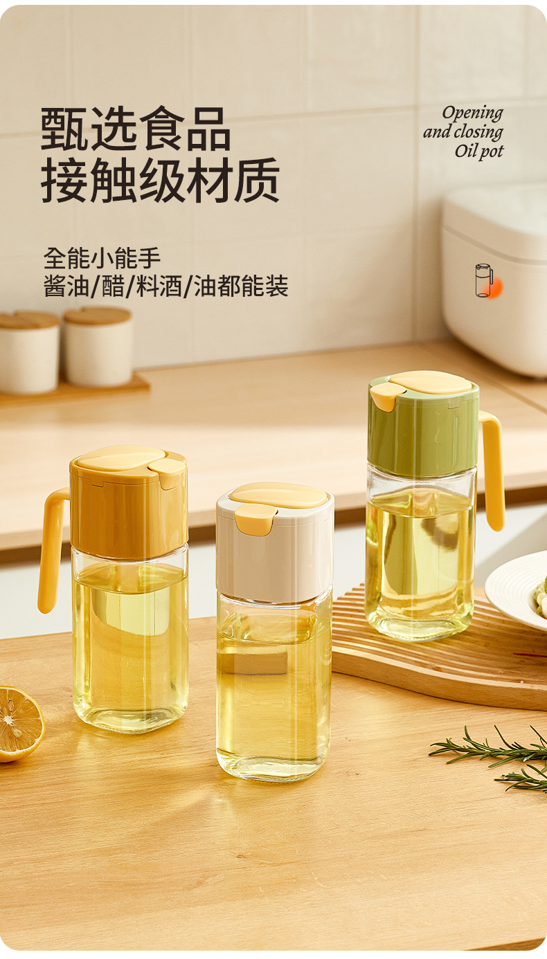 Changxianjia auto-abertura y cierre botella de aceite de cocina salsa de soja vinagre botella de condimento 2025 nuevo no colgar botella de aceite de vidrio doméstico