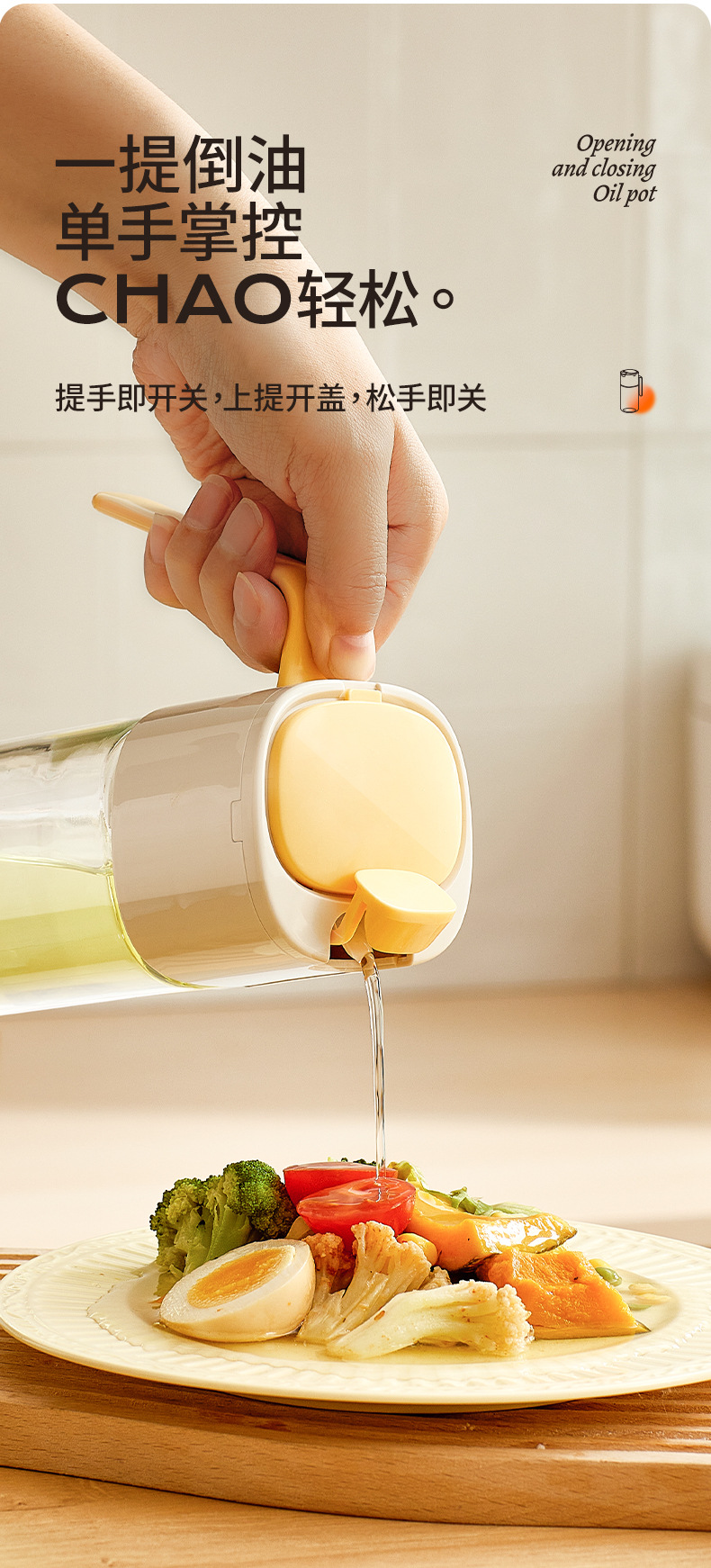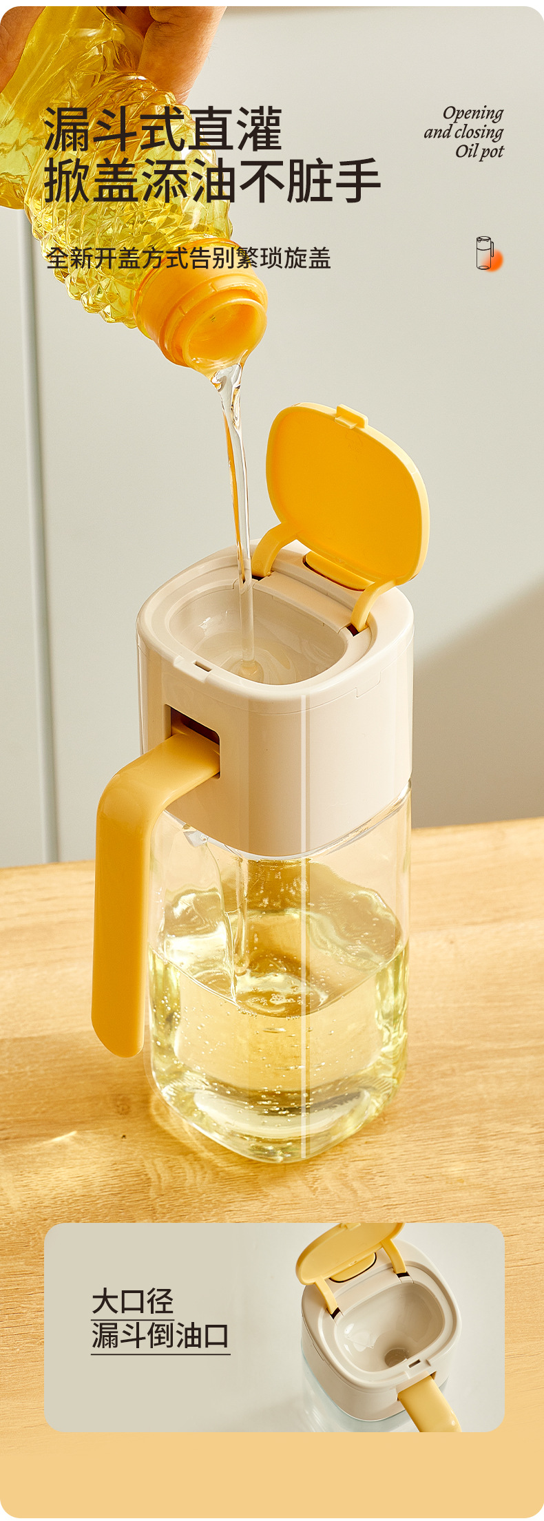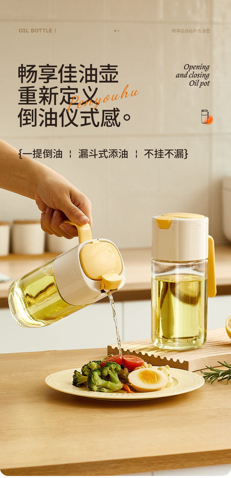 Changxianjia auto-abertura y cierre botella de aceite de cocina salsa de soja vinagre botella de condimento 2025 nuevo no colgar botella de aceite de vidrio doméstico