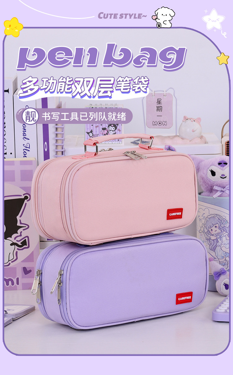 Bolsa de bolígrafo de macarón de gran capacidad multicapa dividida caja de papelería de estudiantes de secundaria secundaria portátil bolsas de bolígrafo de doble capa simples y resistentes a la suciedad
