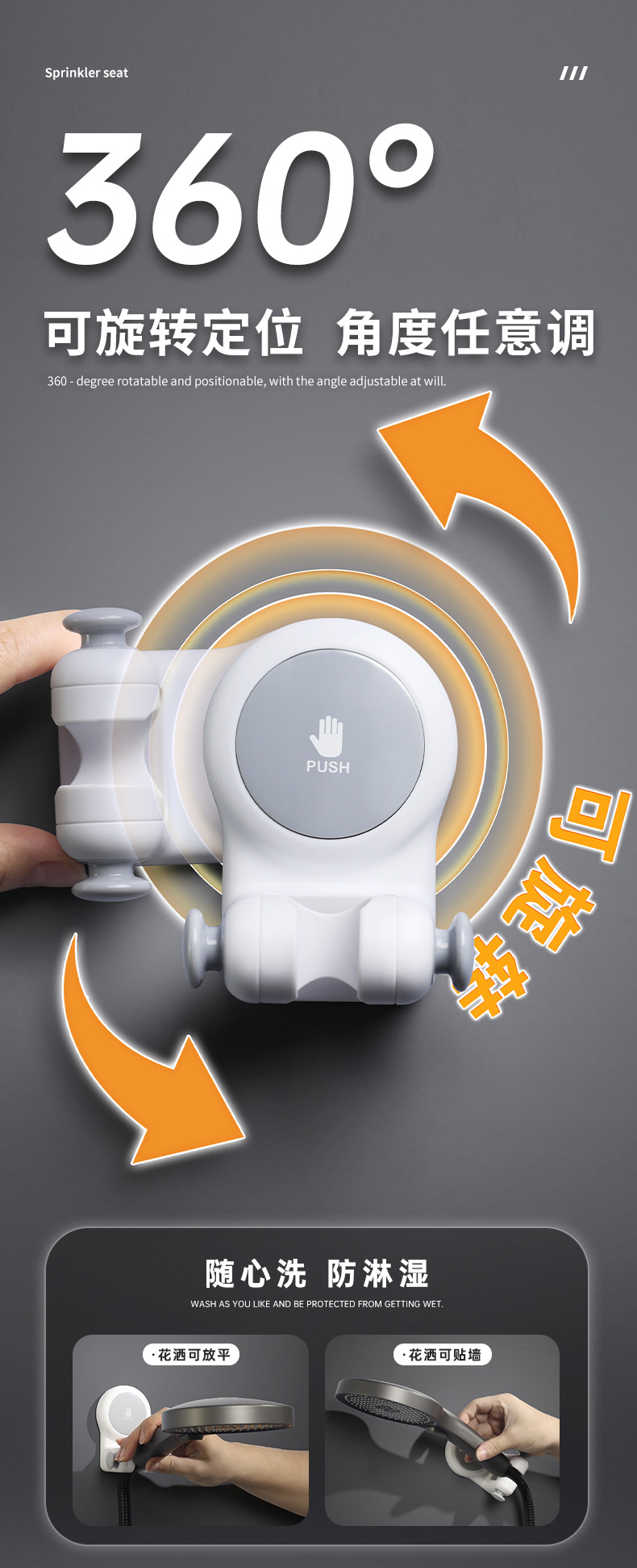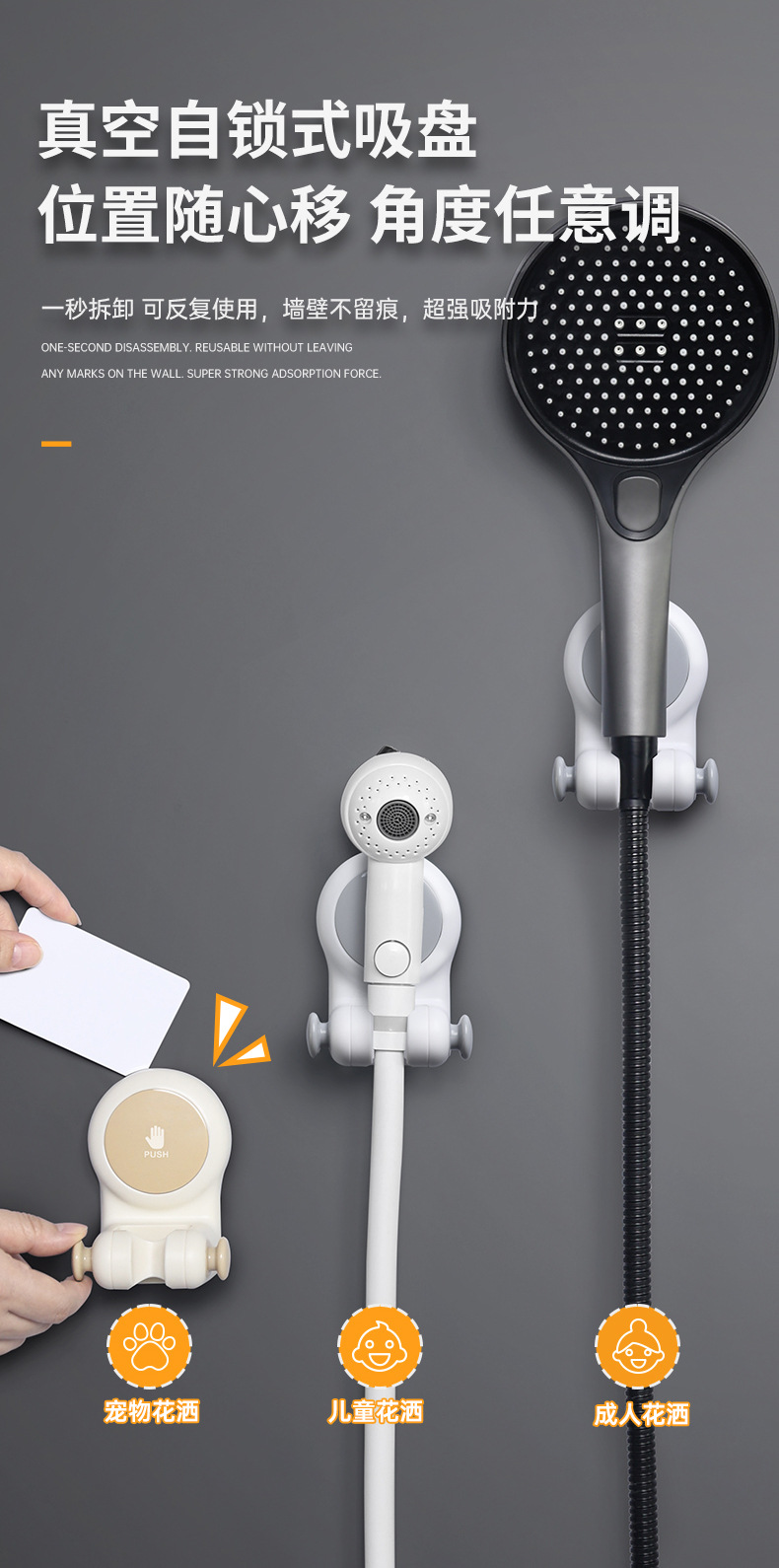 Soporte universal para rociadores de flores, soporte de ventosa para baño, sin perforación, cabezal de ducha móvil para niños, base de artefacto fijo