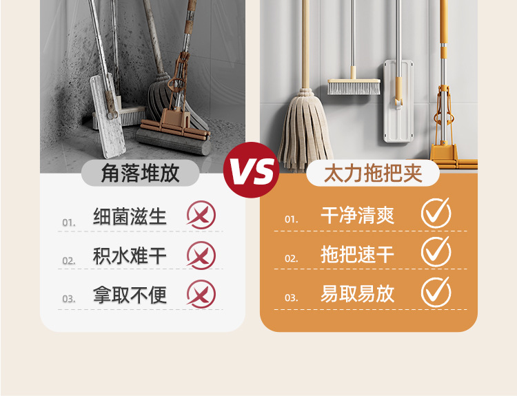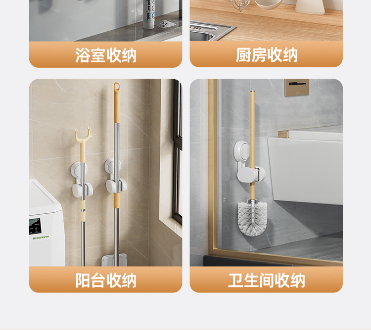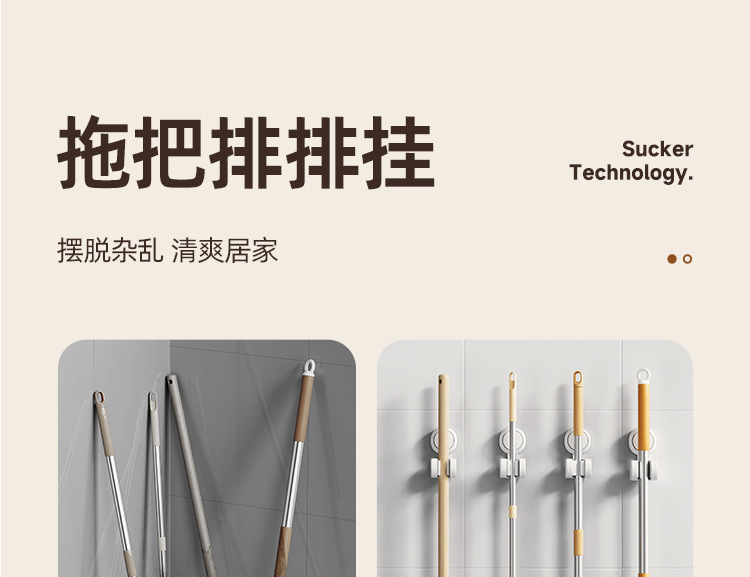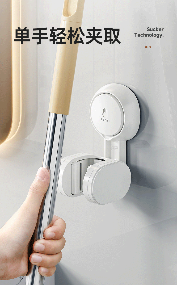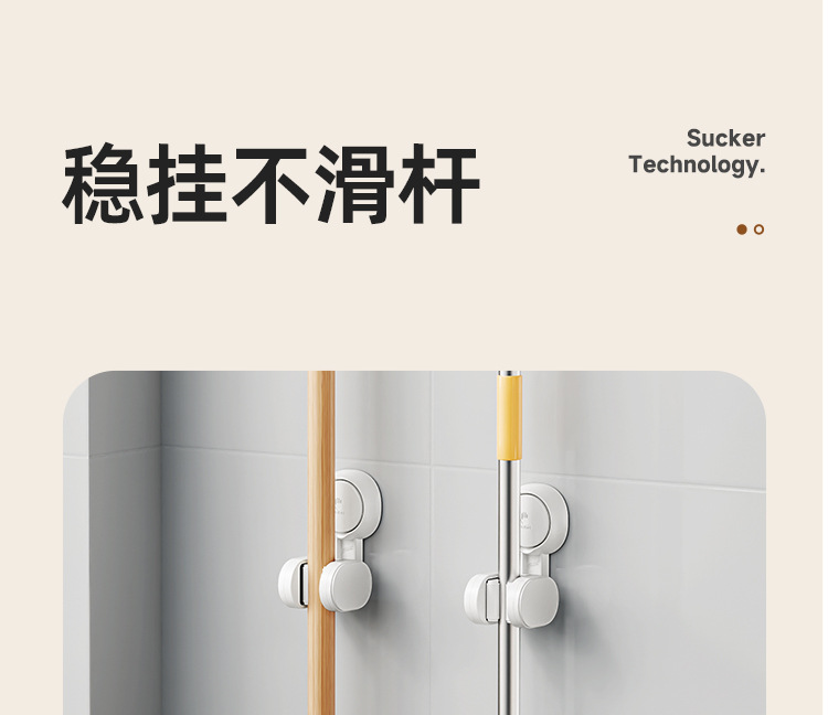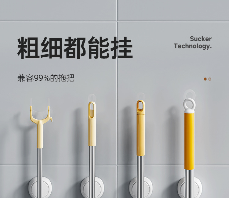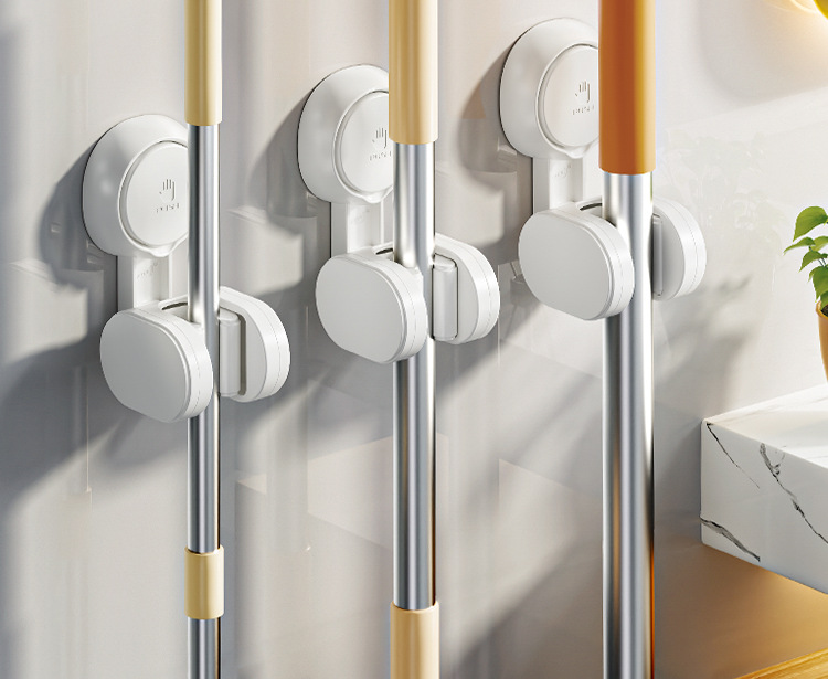 Clip de pared de trapeador de ventosas de fuerza, colgante de trapeador de baño, colgante de trapeador de pared sin agujeros, gancho de fijación de pared