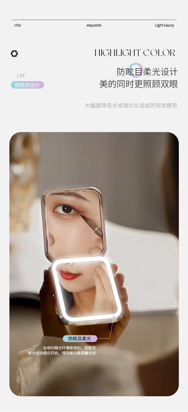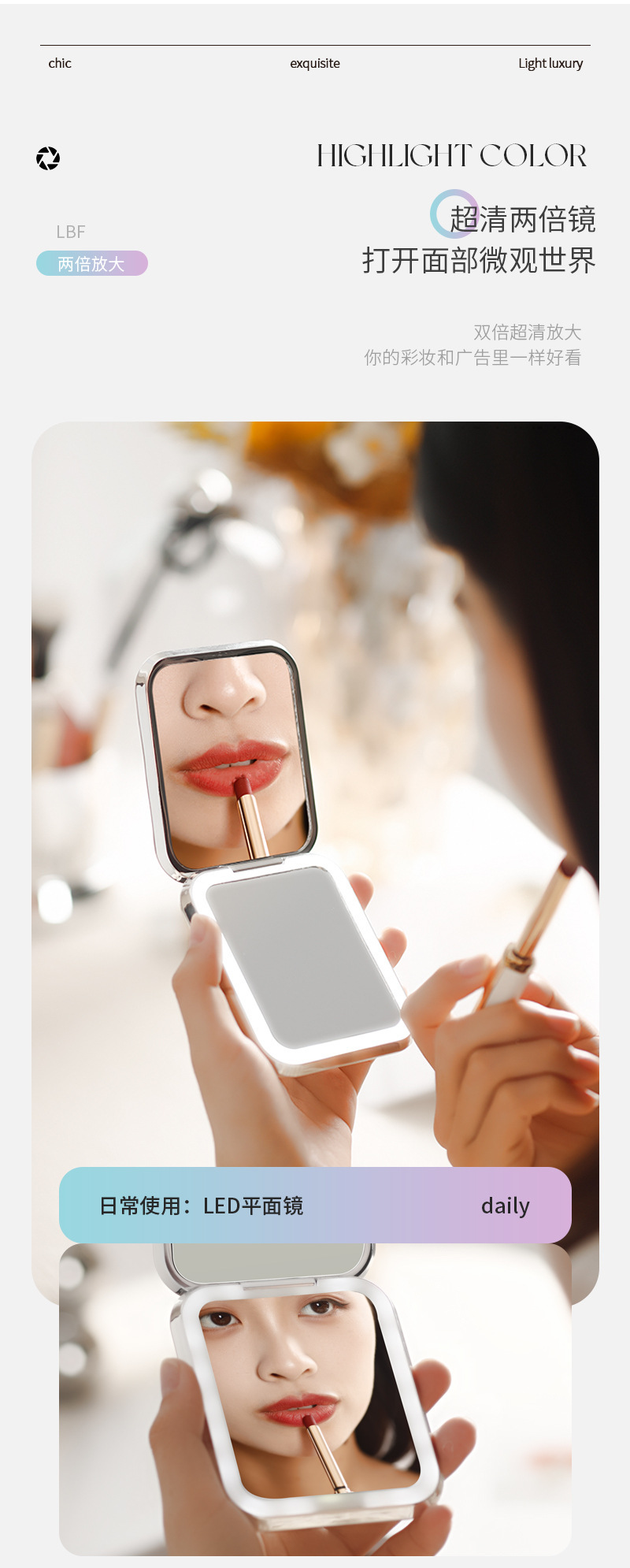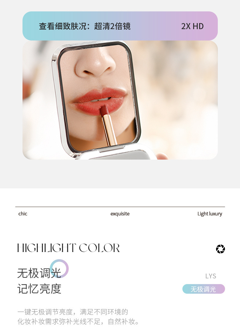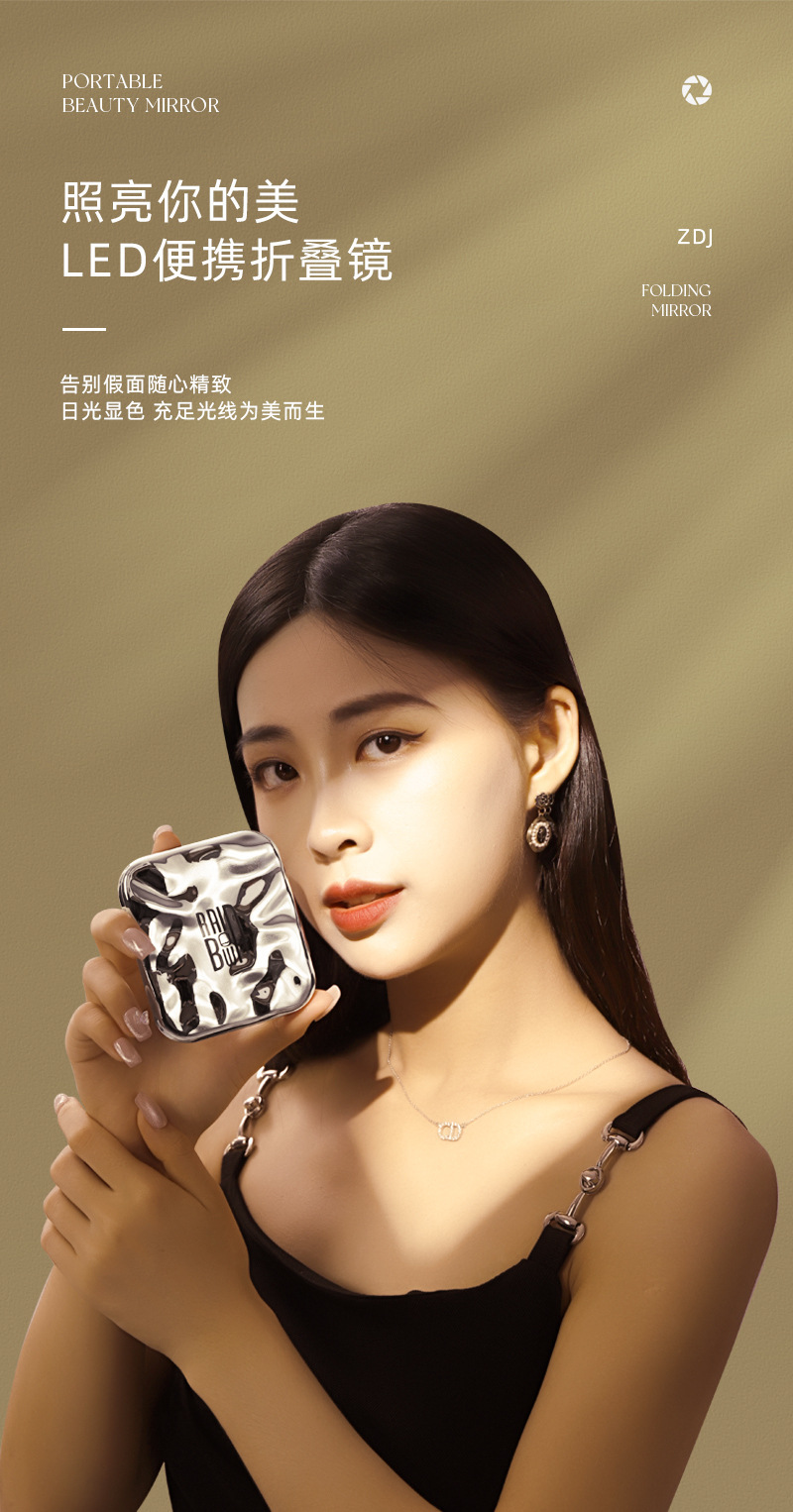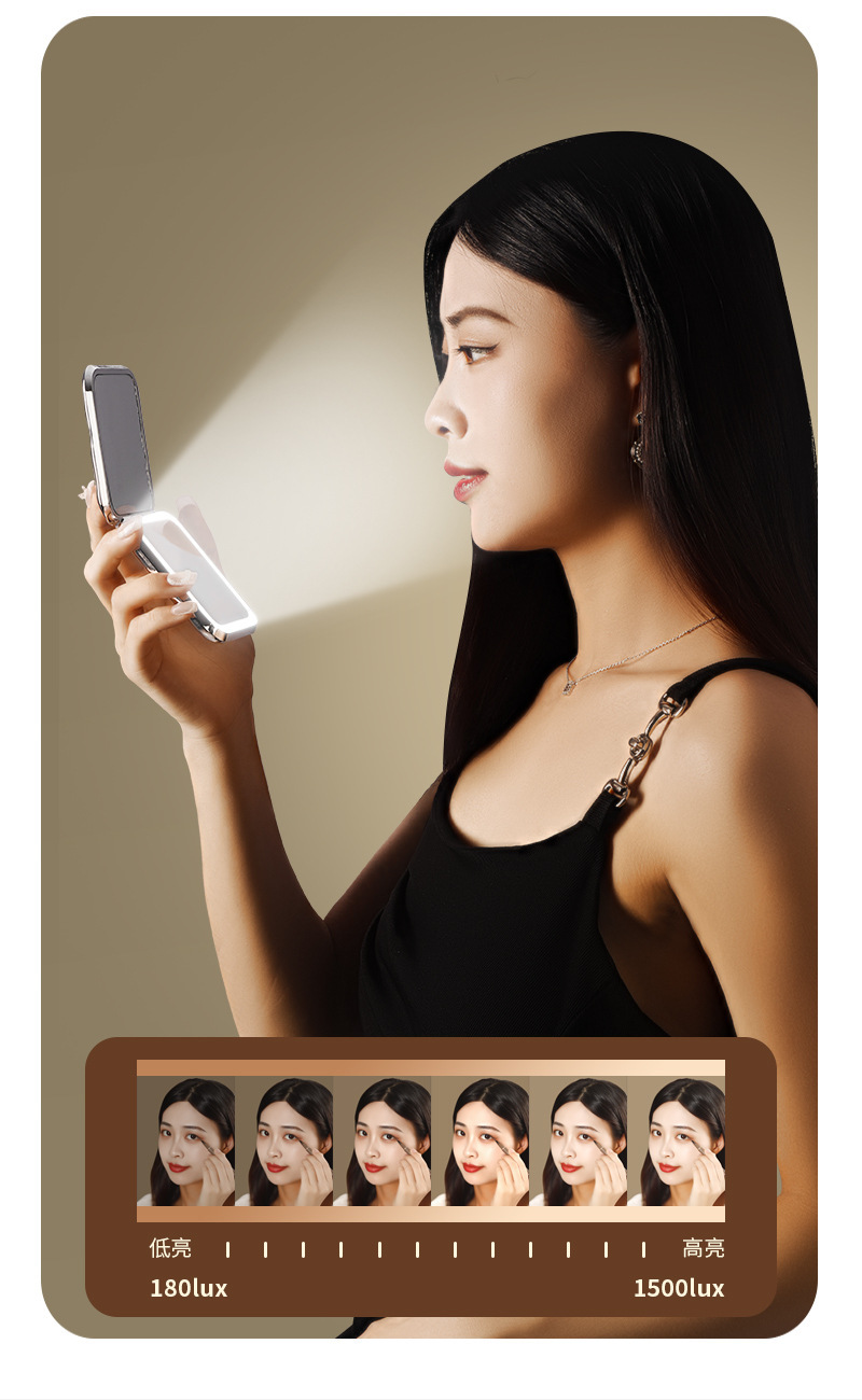 Plegable LED espejo de maquillaje hogar Luz de lujo luz lupa mini espejo de maquillaje para mujeres portátil