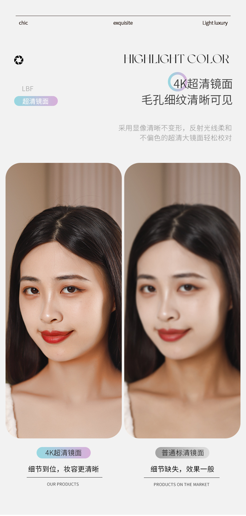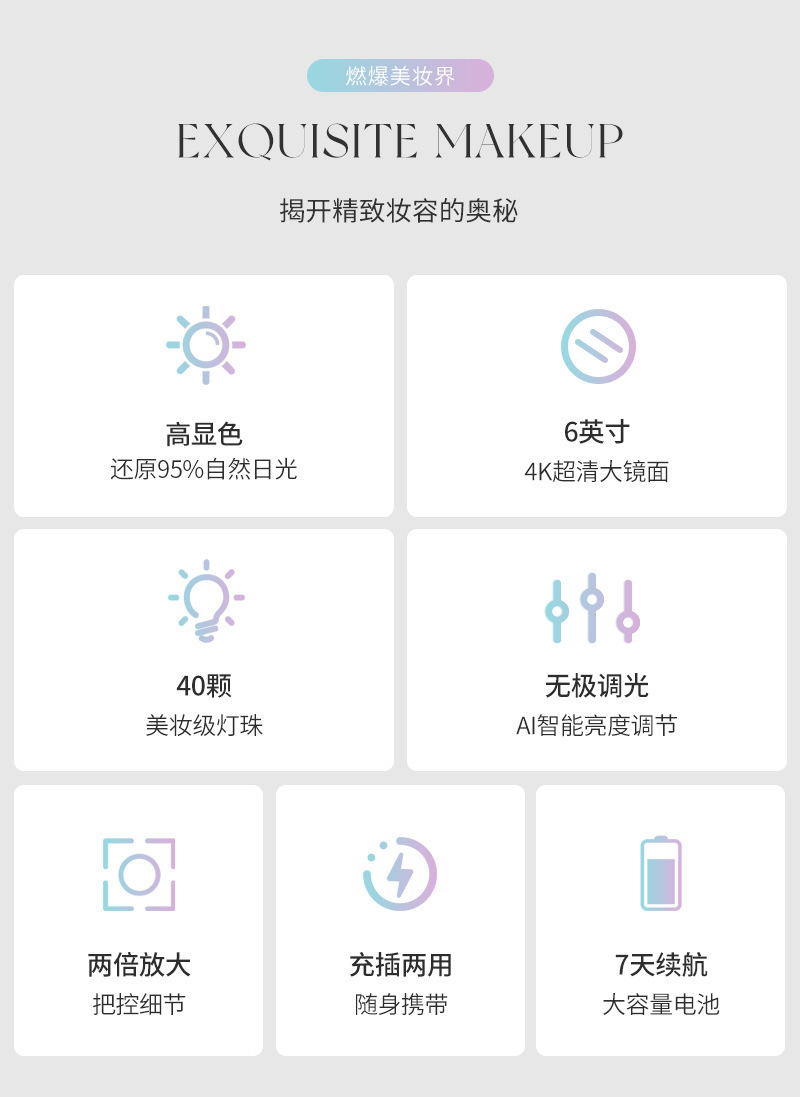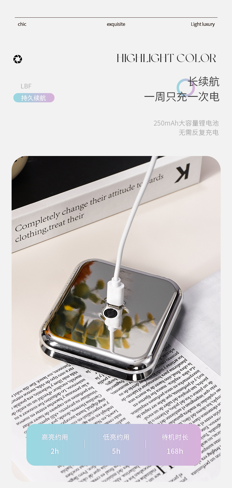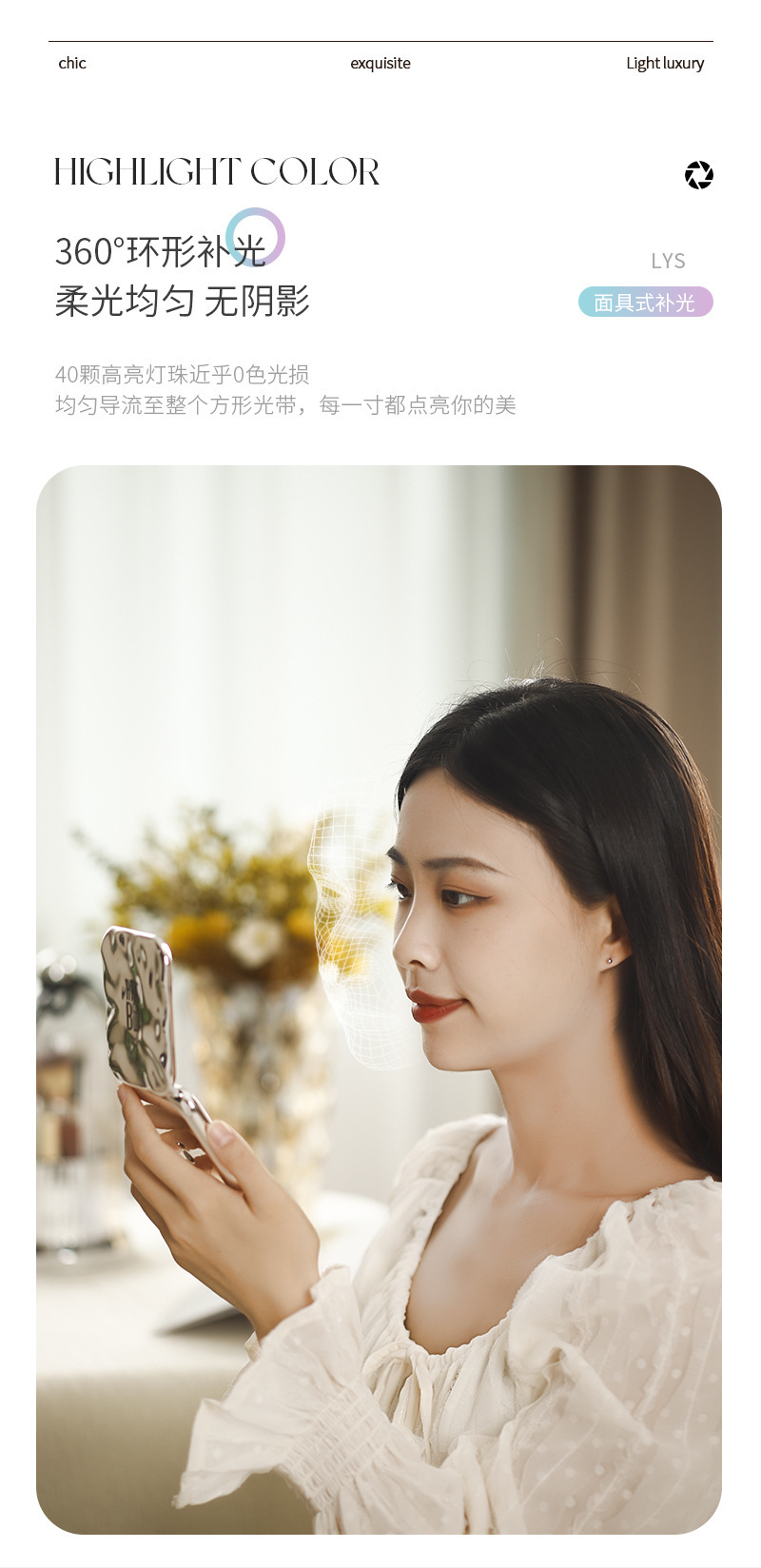 Plegable LED espejo de maquillaje hogar Luz de lujo luz lupa mini espejo de maquillaje para mujeres portátil