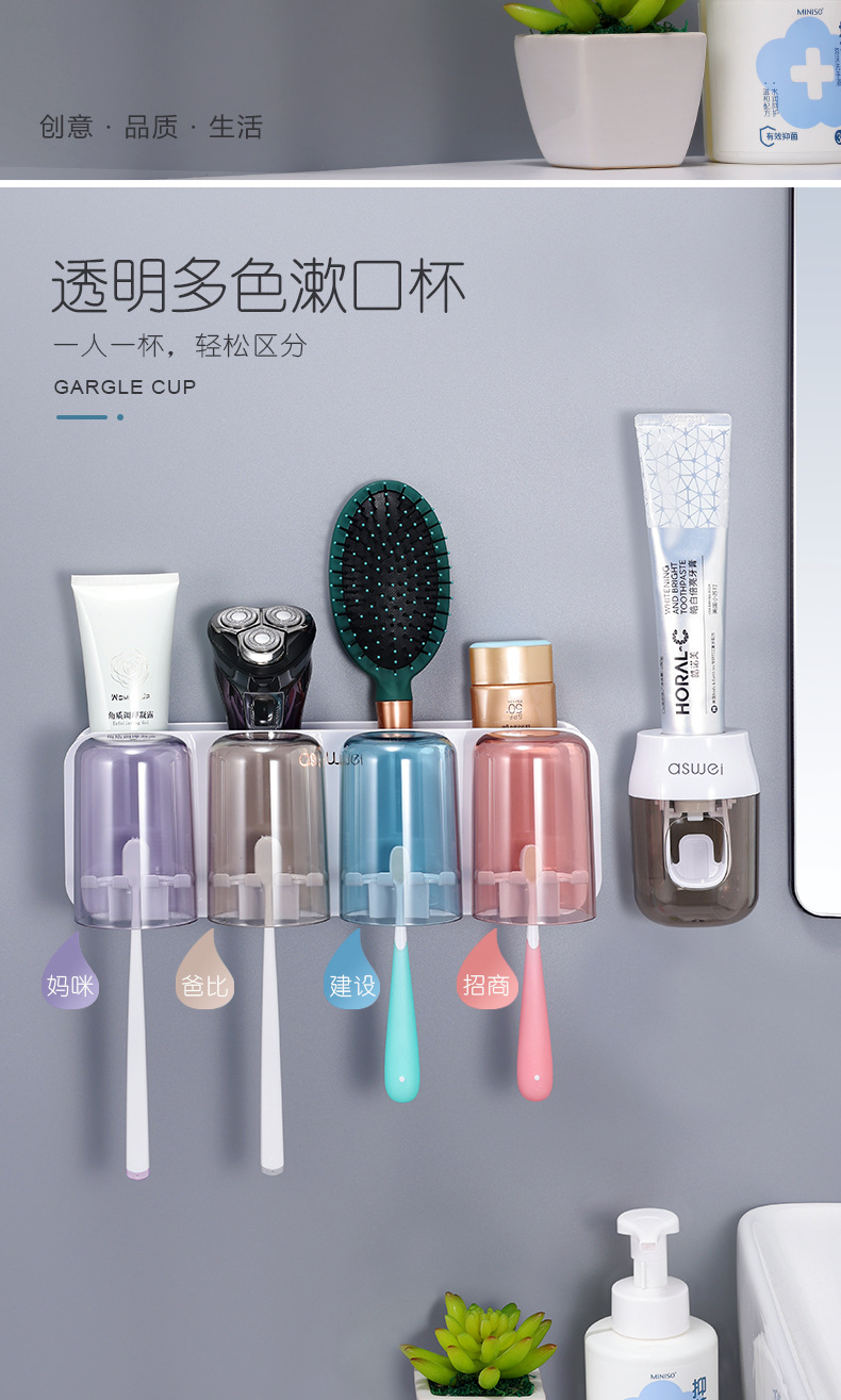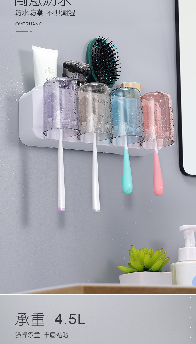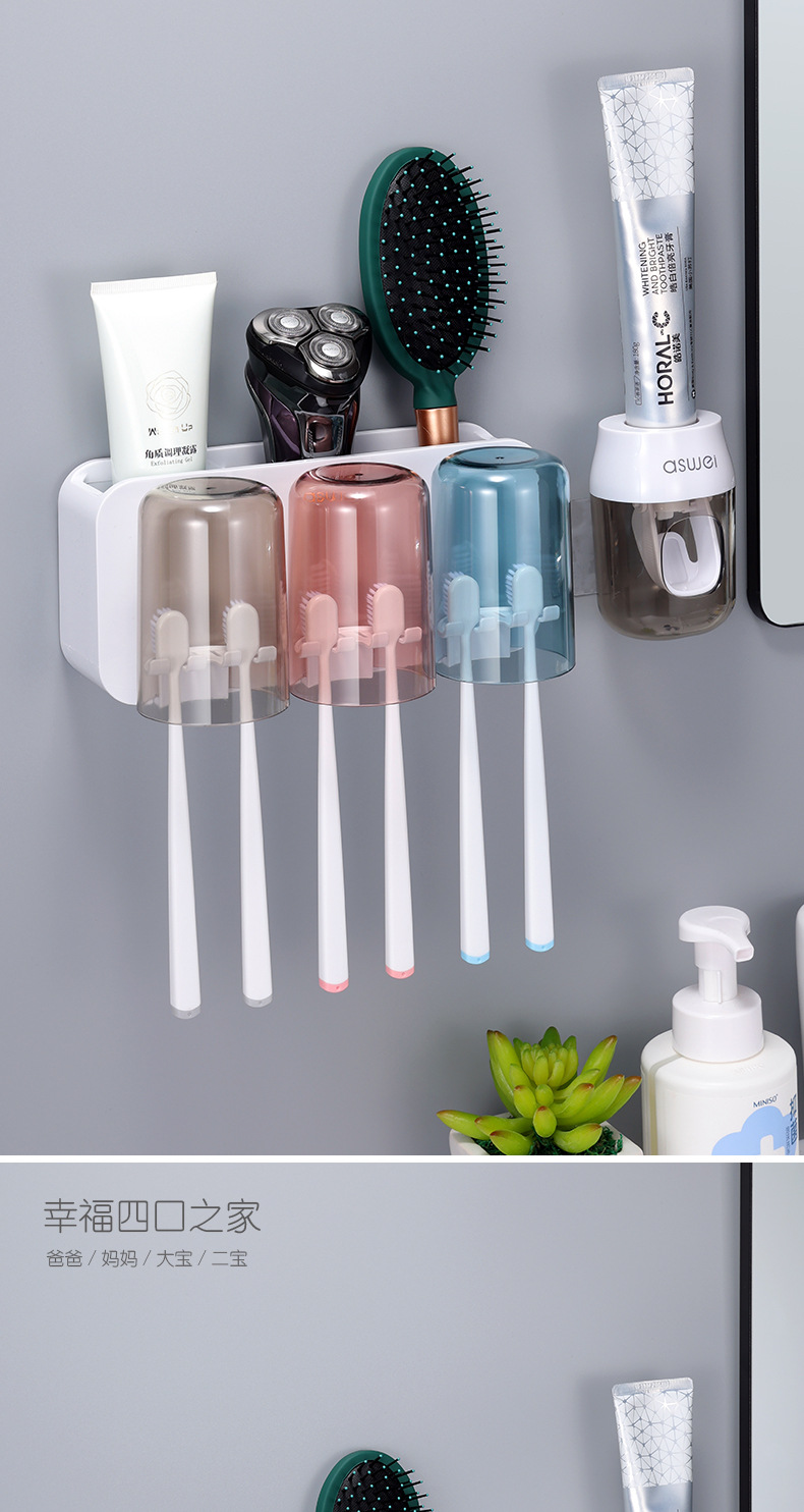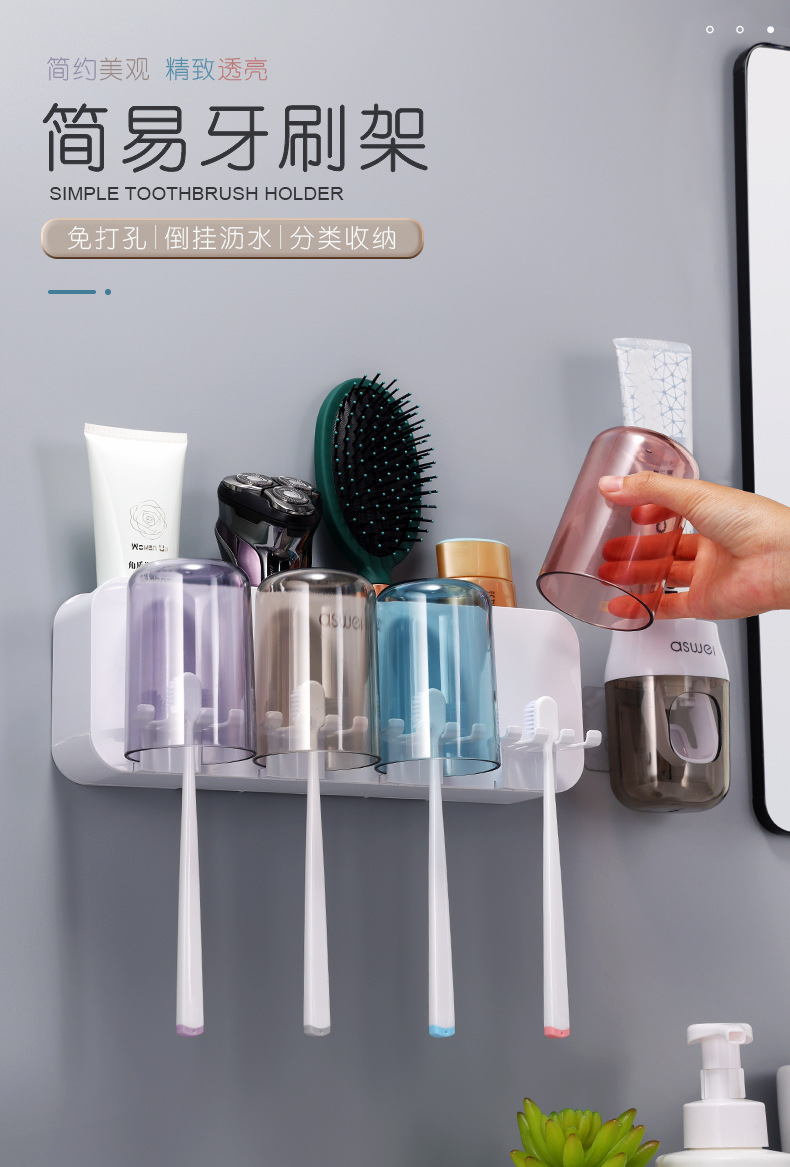 Estante de cepillo de dientes sin ponche taza de cepillo de dientes enjuague bucal Copa estante montado en la pared baño montado en la pared traje familiar eléctrico