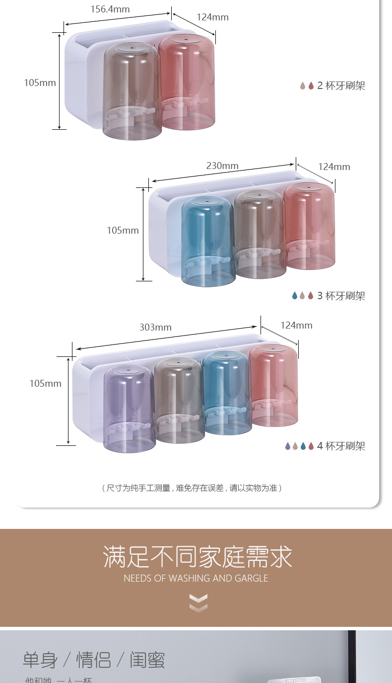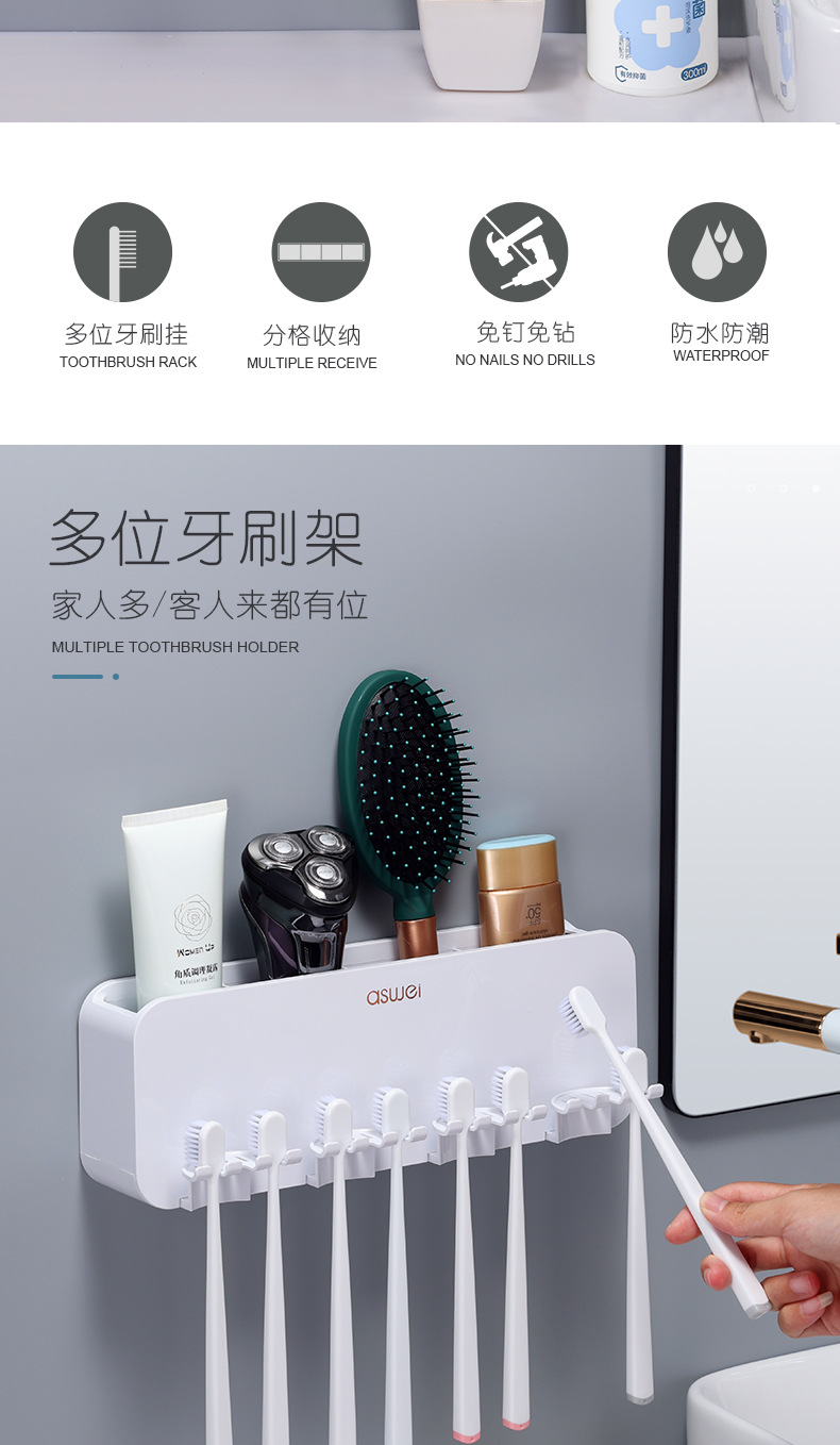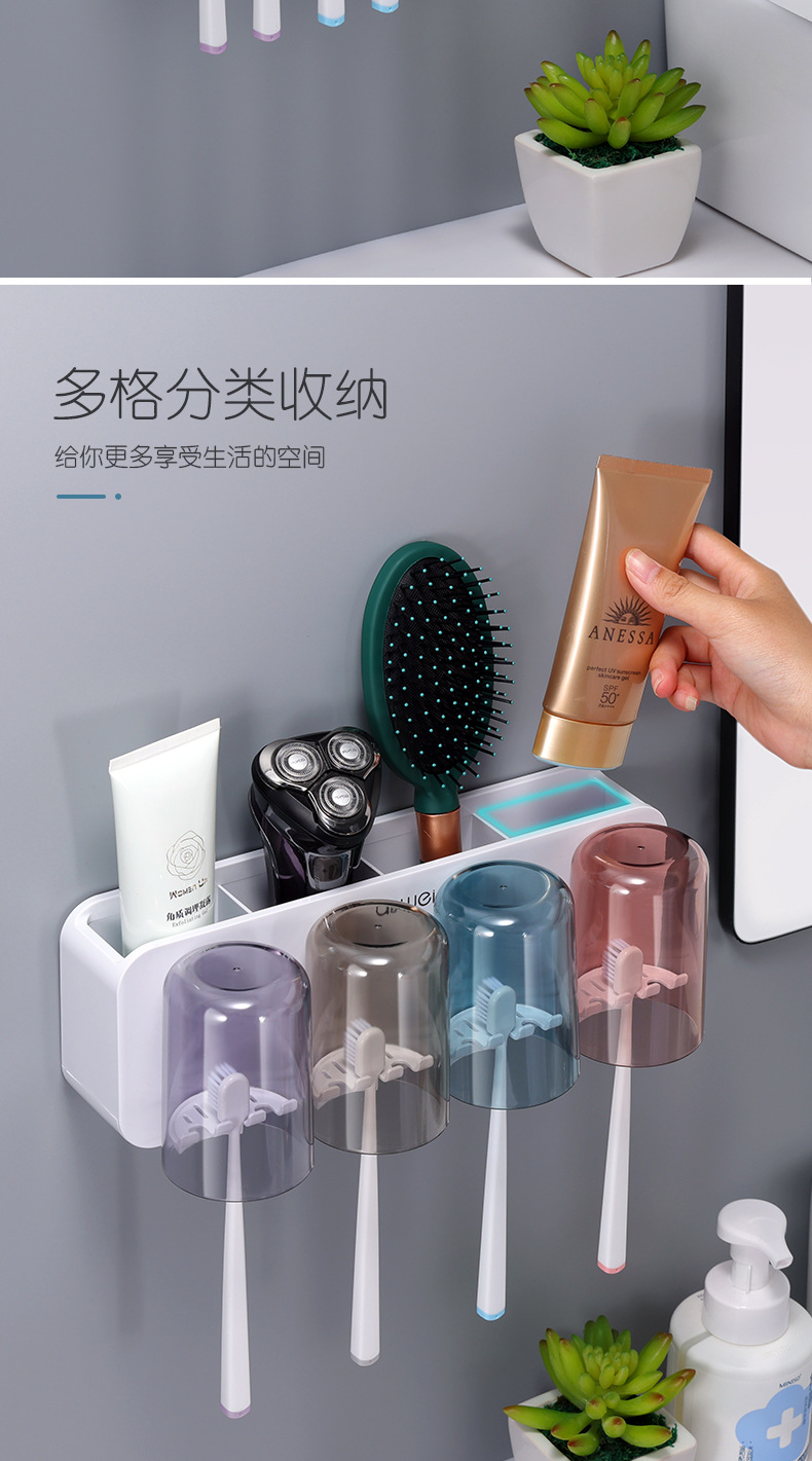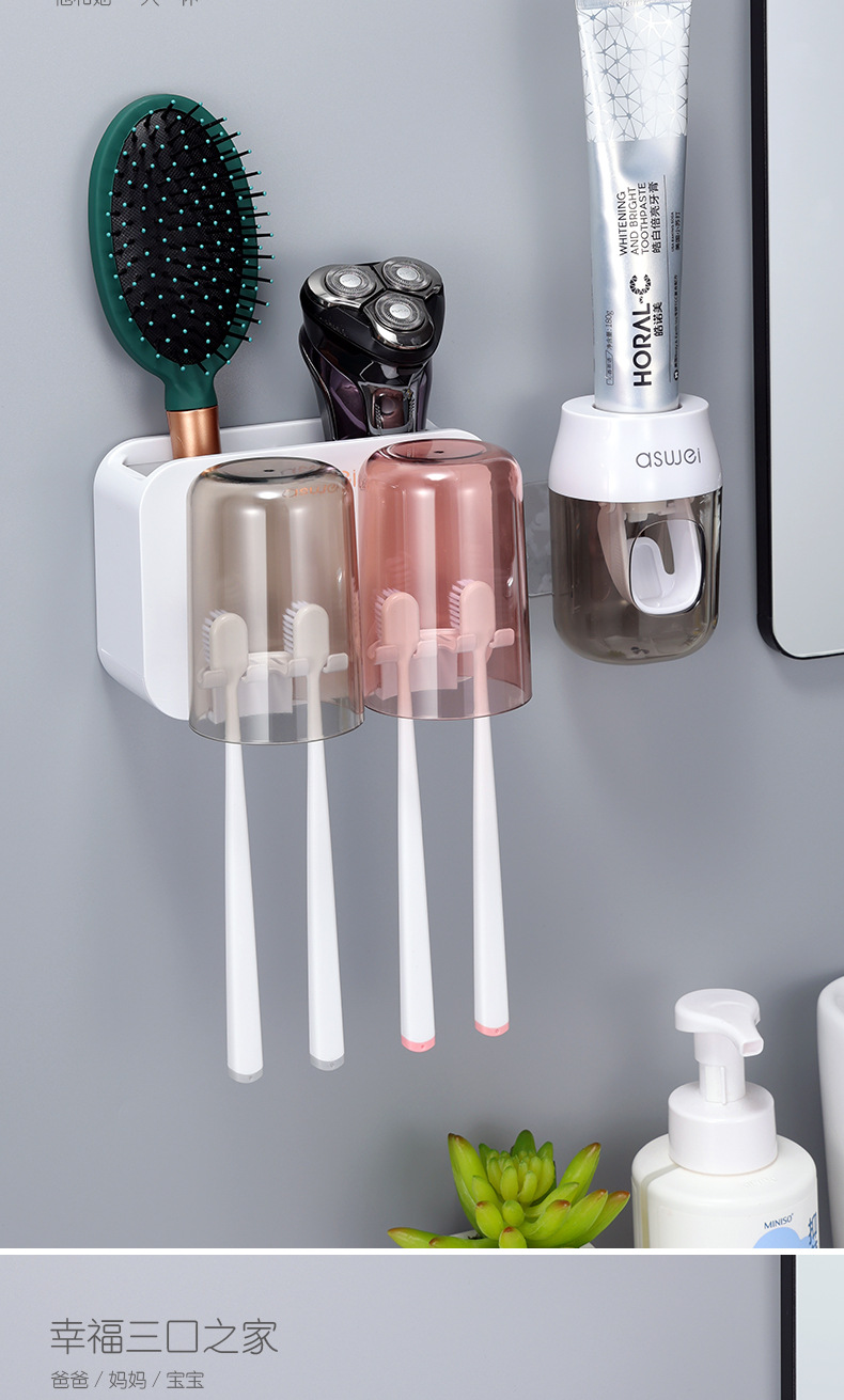 Estante de cepillo de dientes sin ponche taza de cepillo de dientes enjuague bucal Copa estante montado en la pared baño montado en la pared traje familiar eléctrico