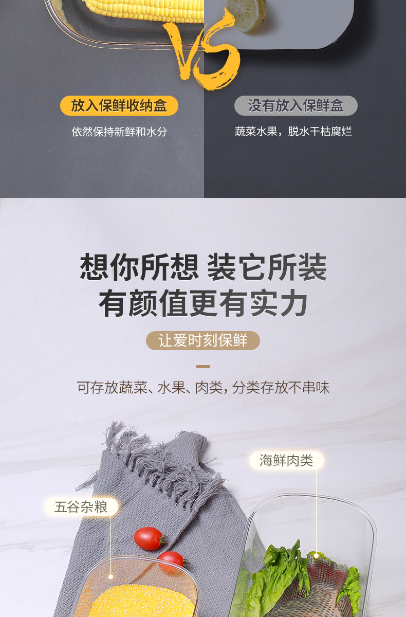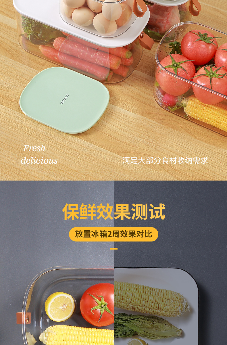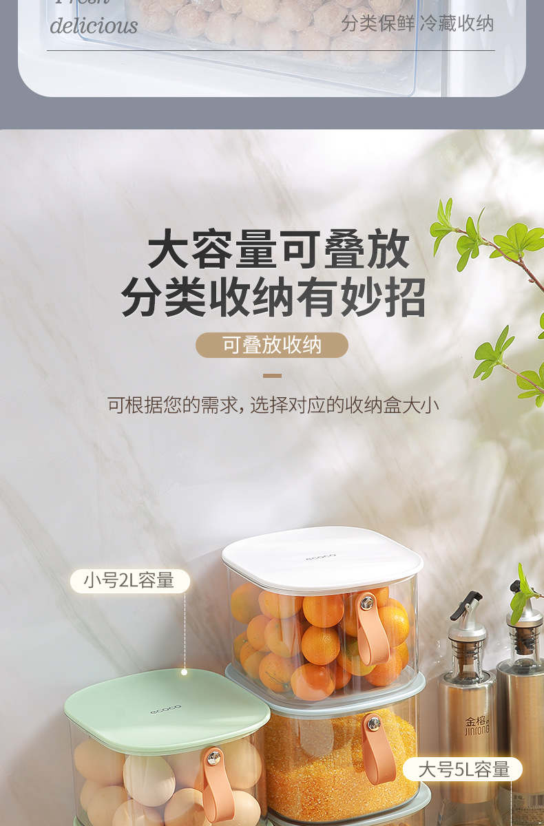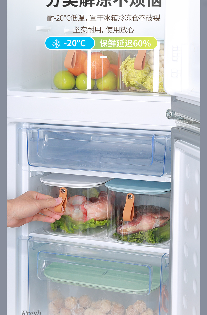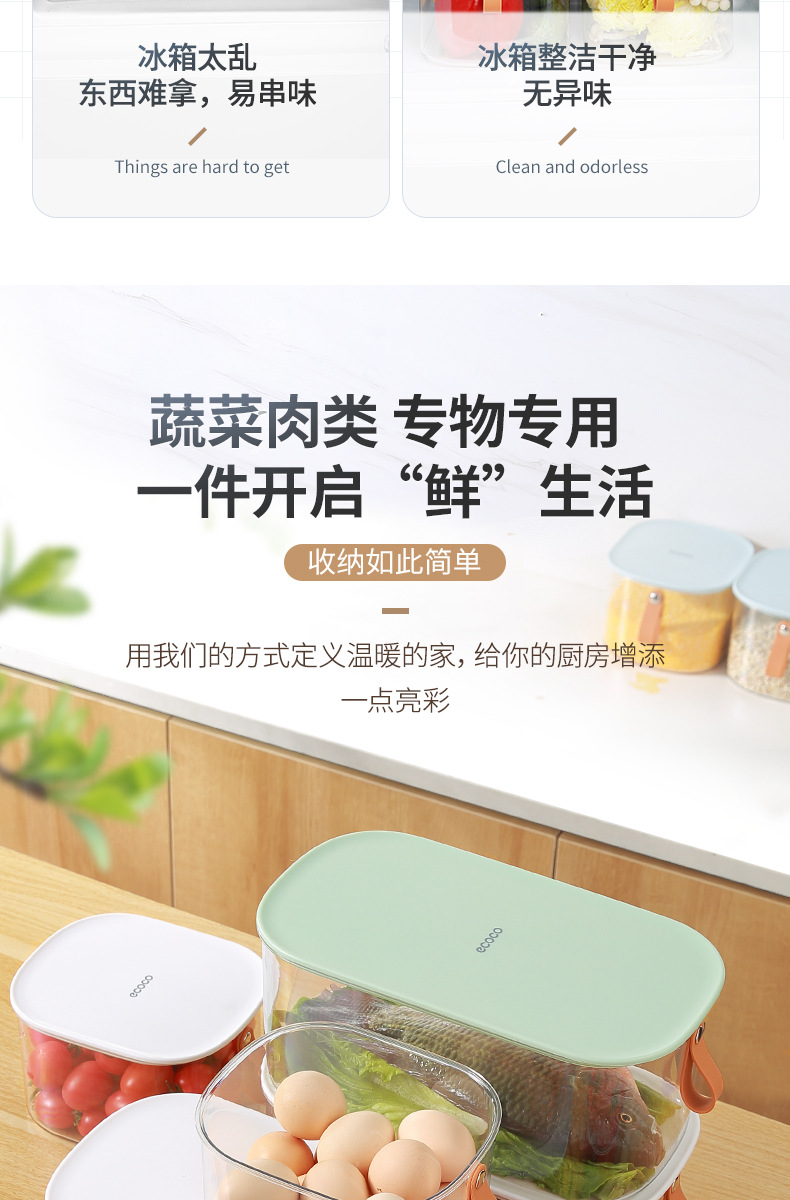 Caja de almacenamiento de refrigerador sellada Preservación de huevo Almacenamiento de organización especial carne vegetal cocina de grado alimenticio artefacto de congelación