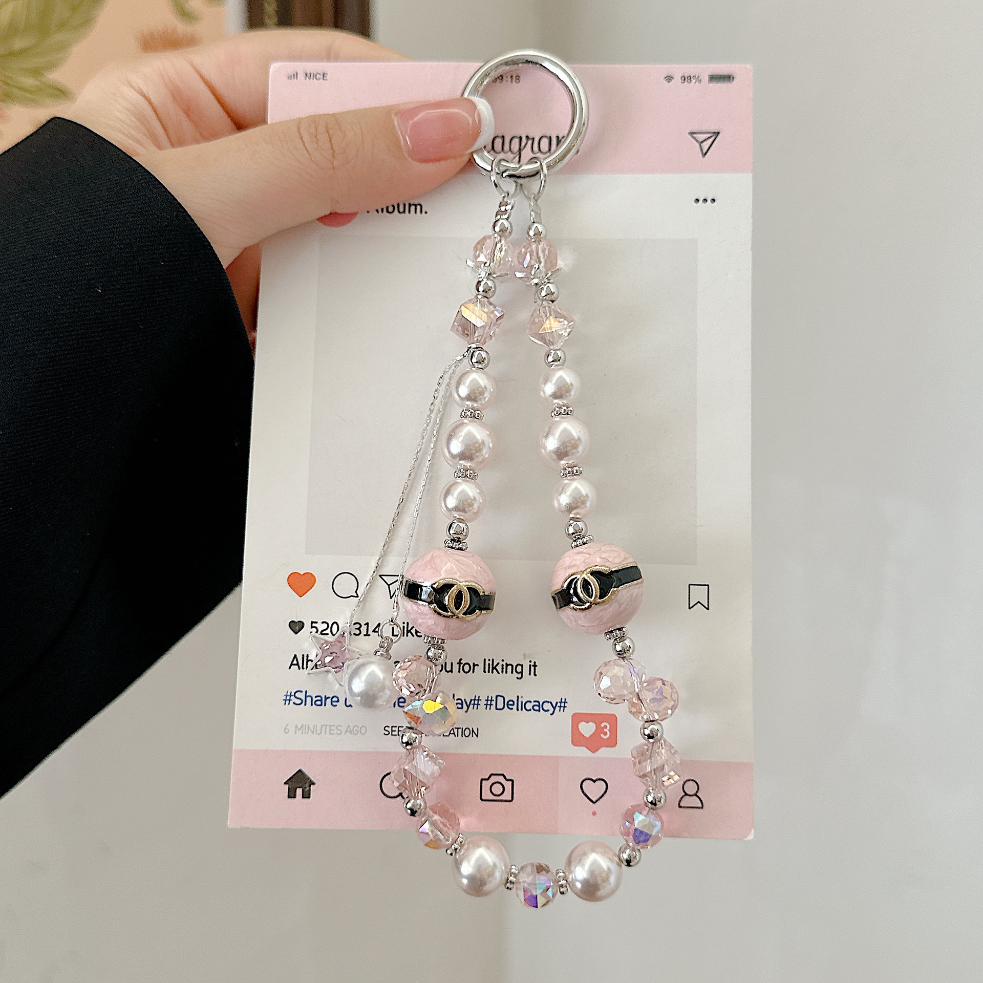 Cadena de teléfono móvil de alta gama hecha a mano de boutique, cadena de pulsera de fragancia pequeña de lujo ligero, cordón de teléfono móvil de moda, teléfono móvil corto/colgante
