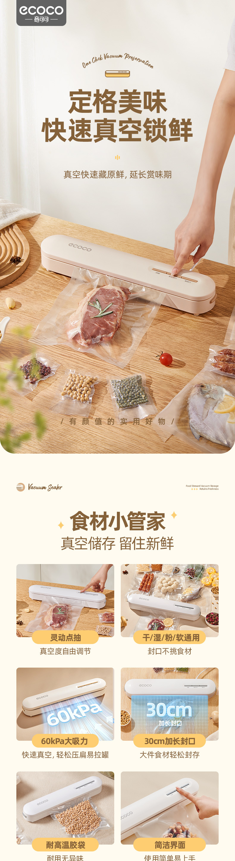 máquina de sellado de vacío ecoco pequeña máquina de bombeo de vacío de envasado de alimentos automático para el hogar máquina de sellado de plástico de preservación