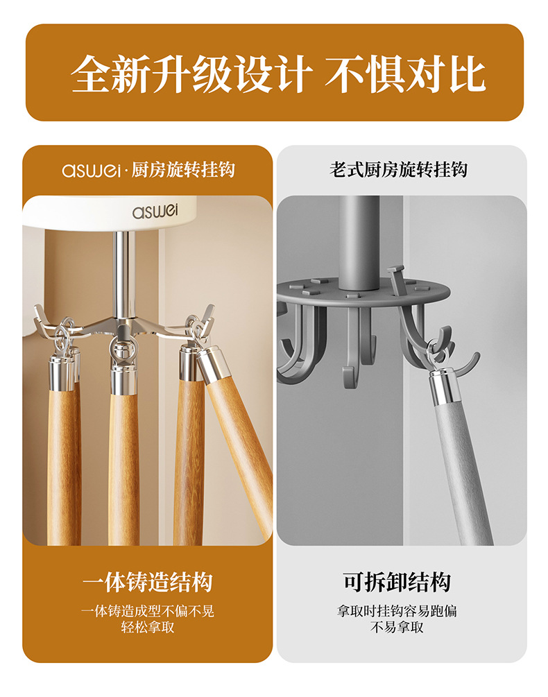Cocina giratoria de seis garras gancho almacenar utensilios de cocina de