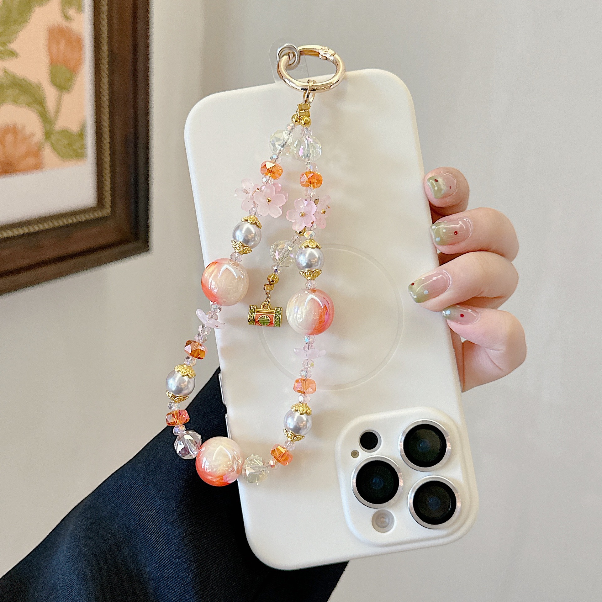 Boutique hecho a mano de alta gama para teléfono móvil cadena ins caqui Ruyi cadena colgante cordón de teléfono móvil de moda cadena/colgante corto