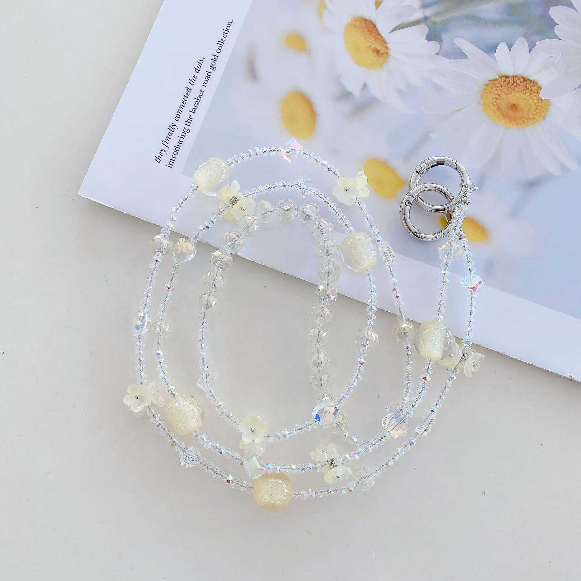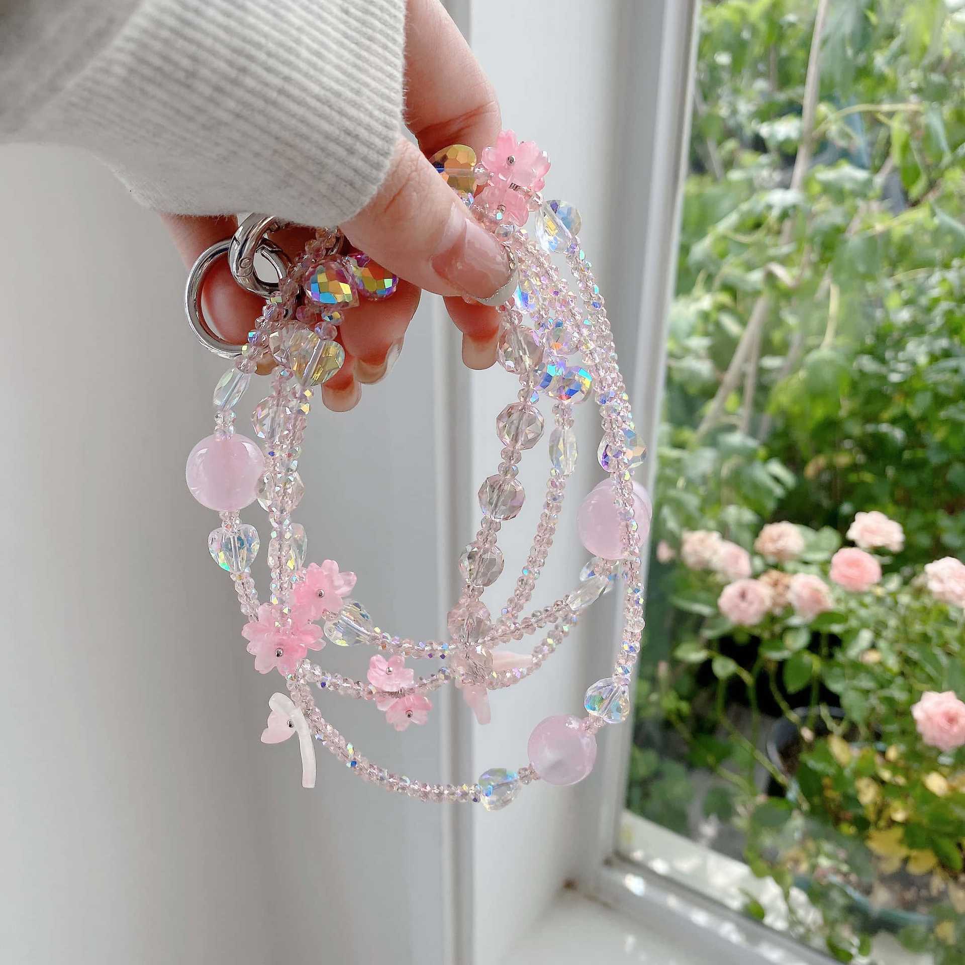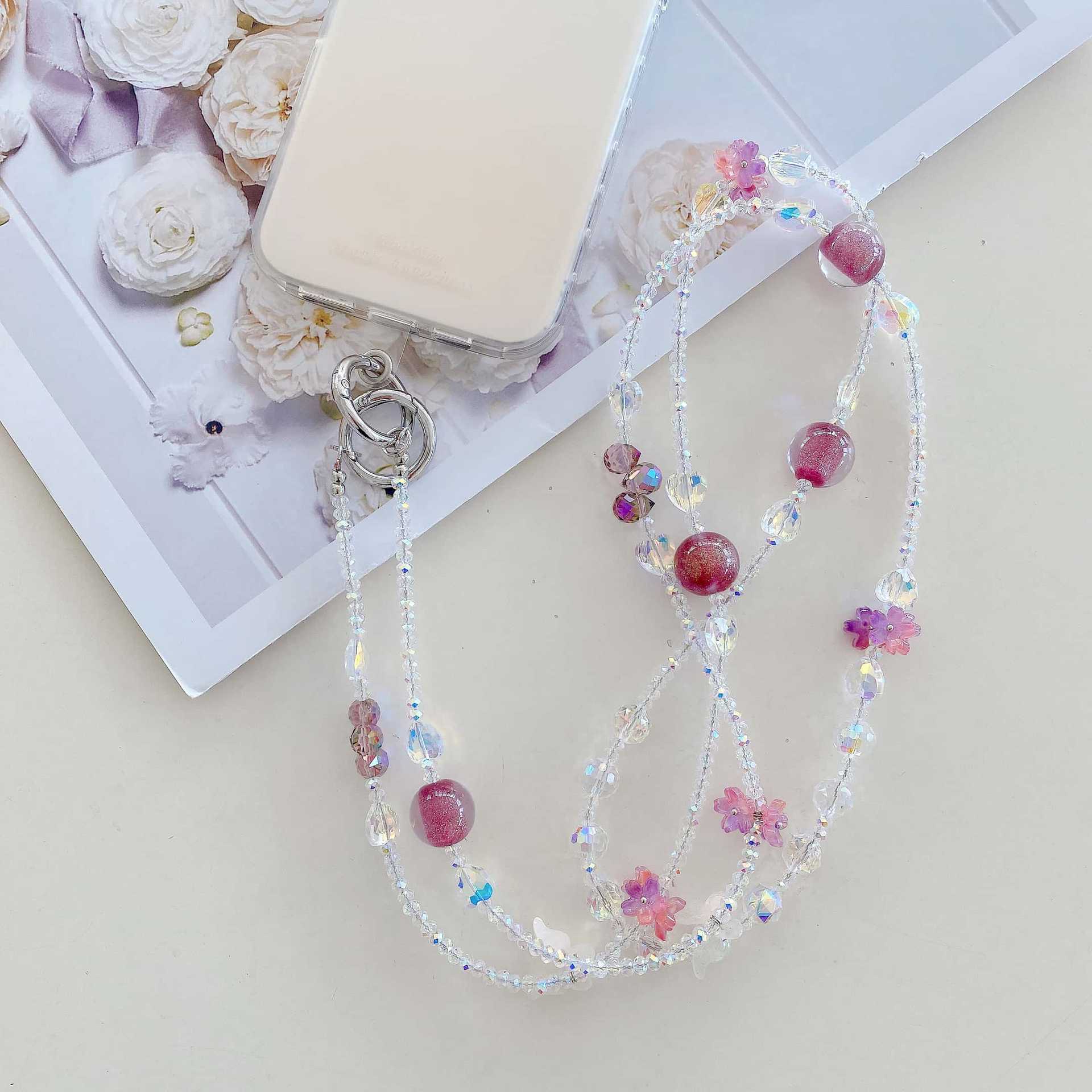 Boutique hecho a mano de alta gama teléfono móvil cadena colgante ins flor cuentas cadena larga cordón de teléfono móvil de moda mensajero largo/colgante