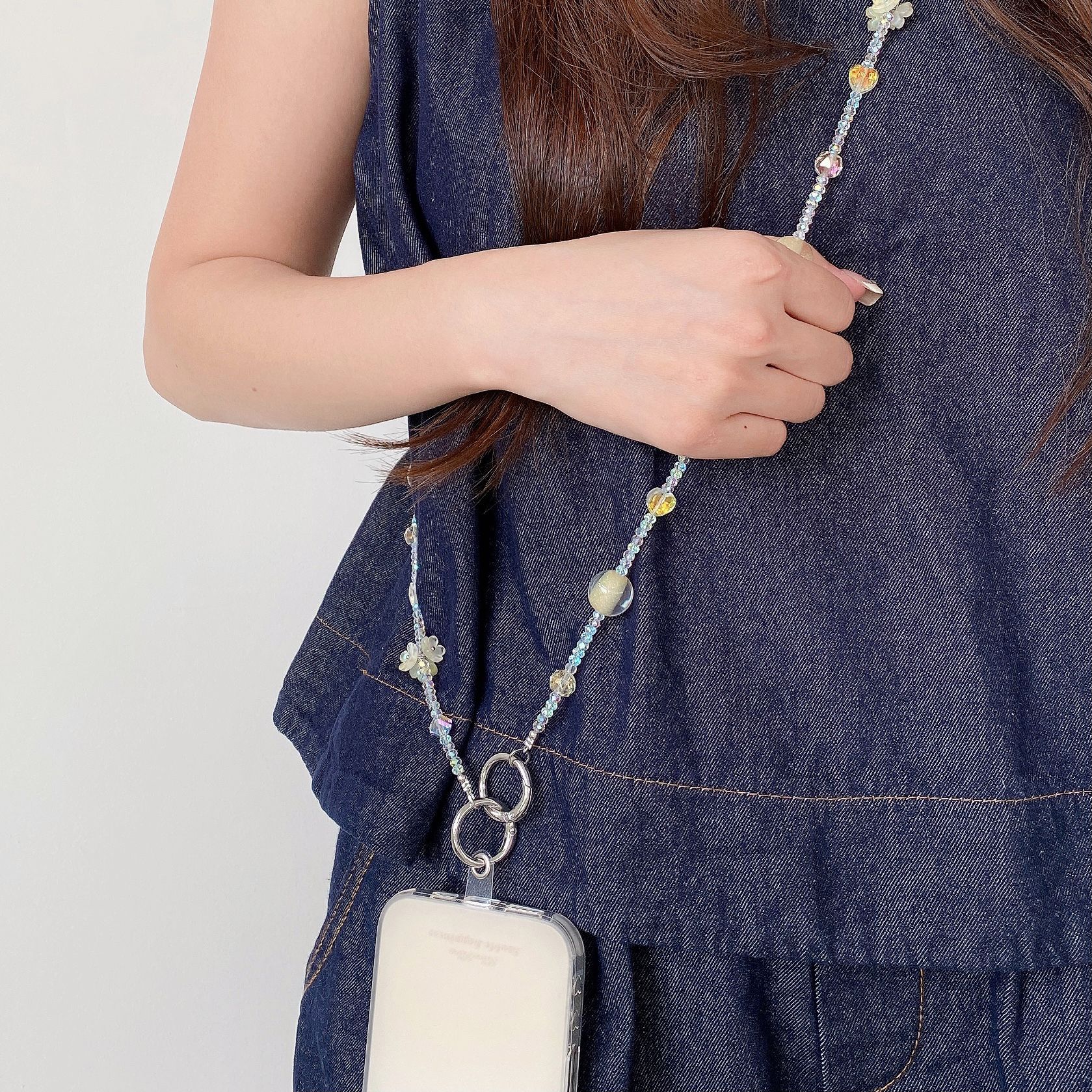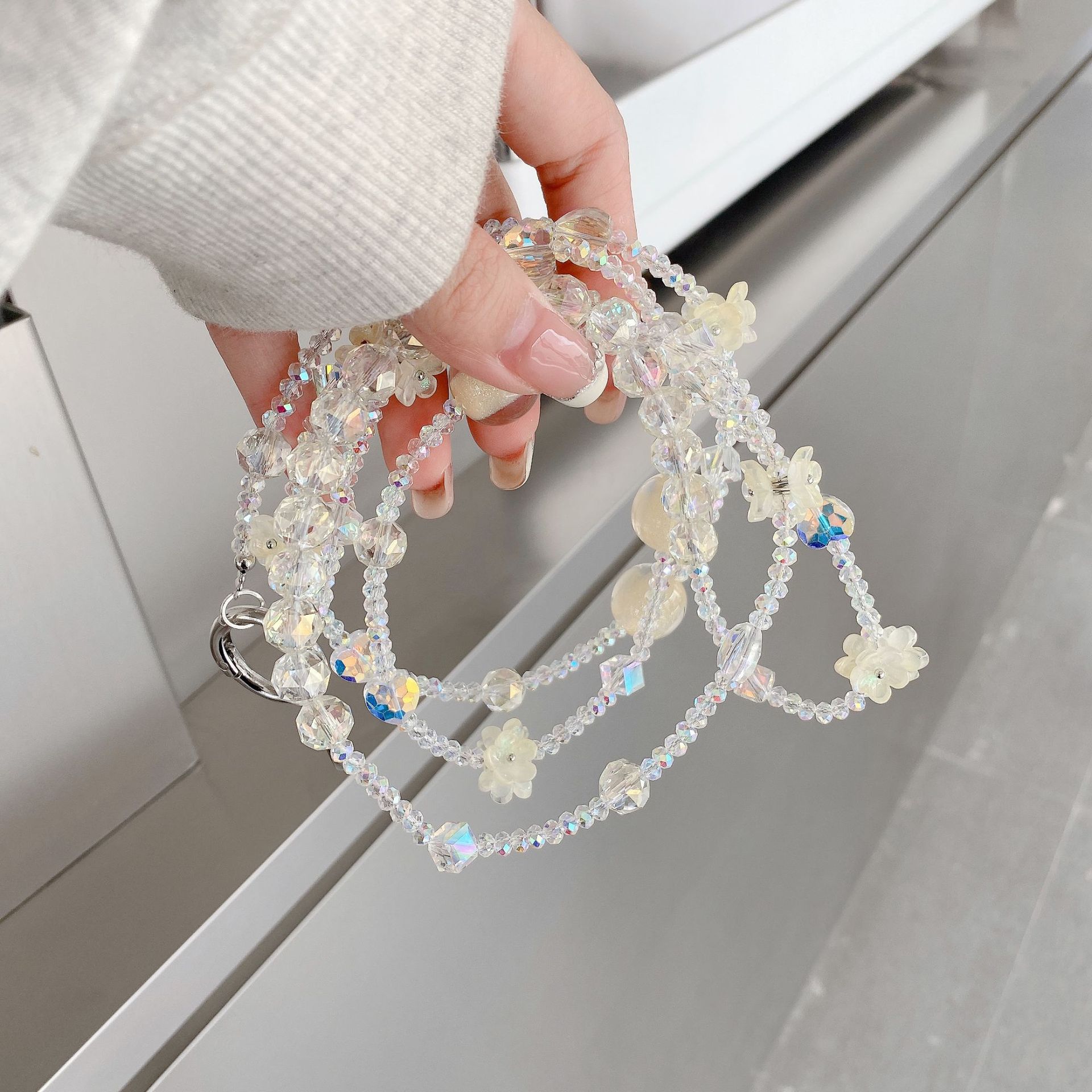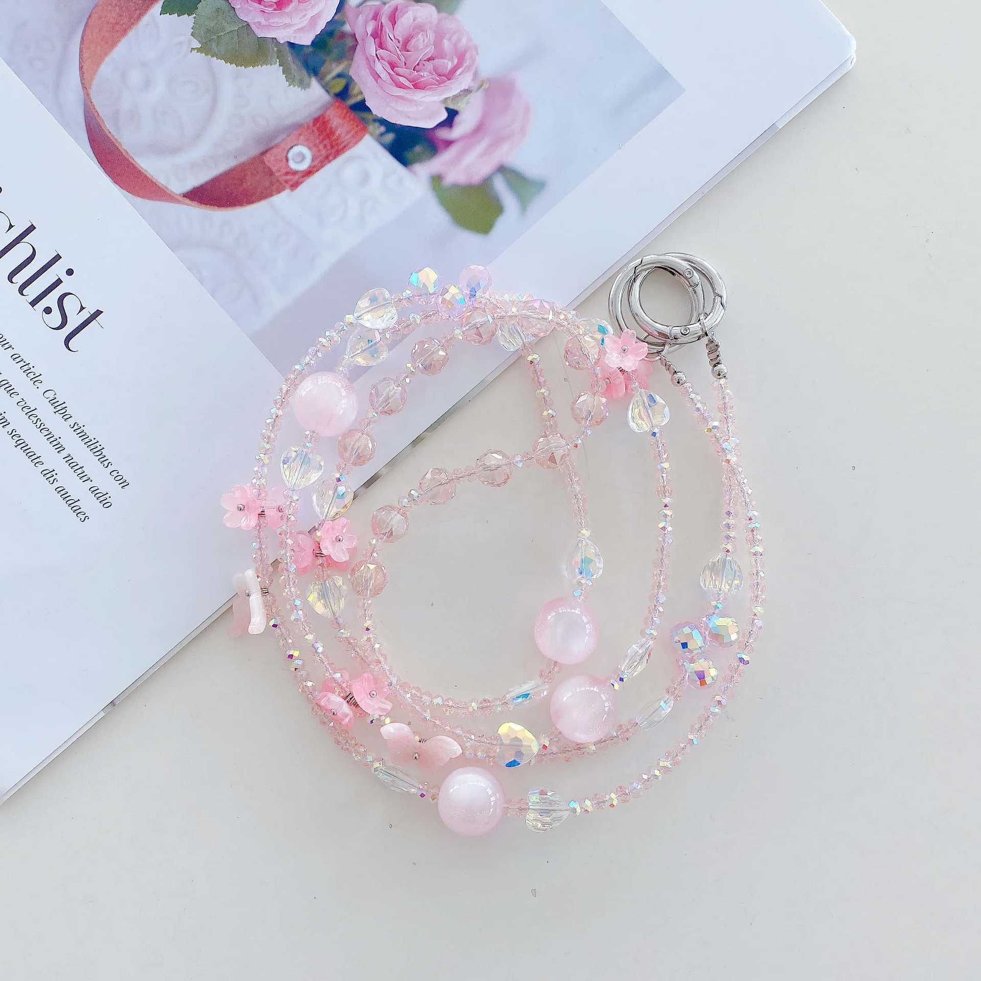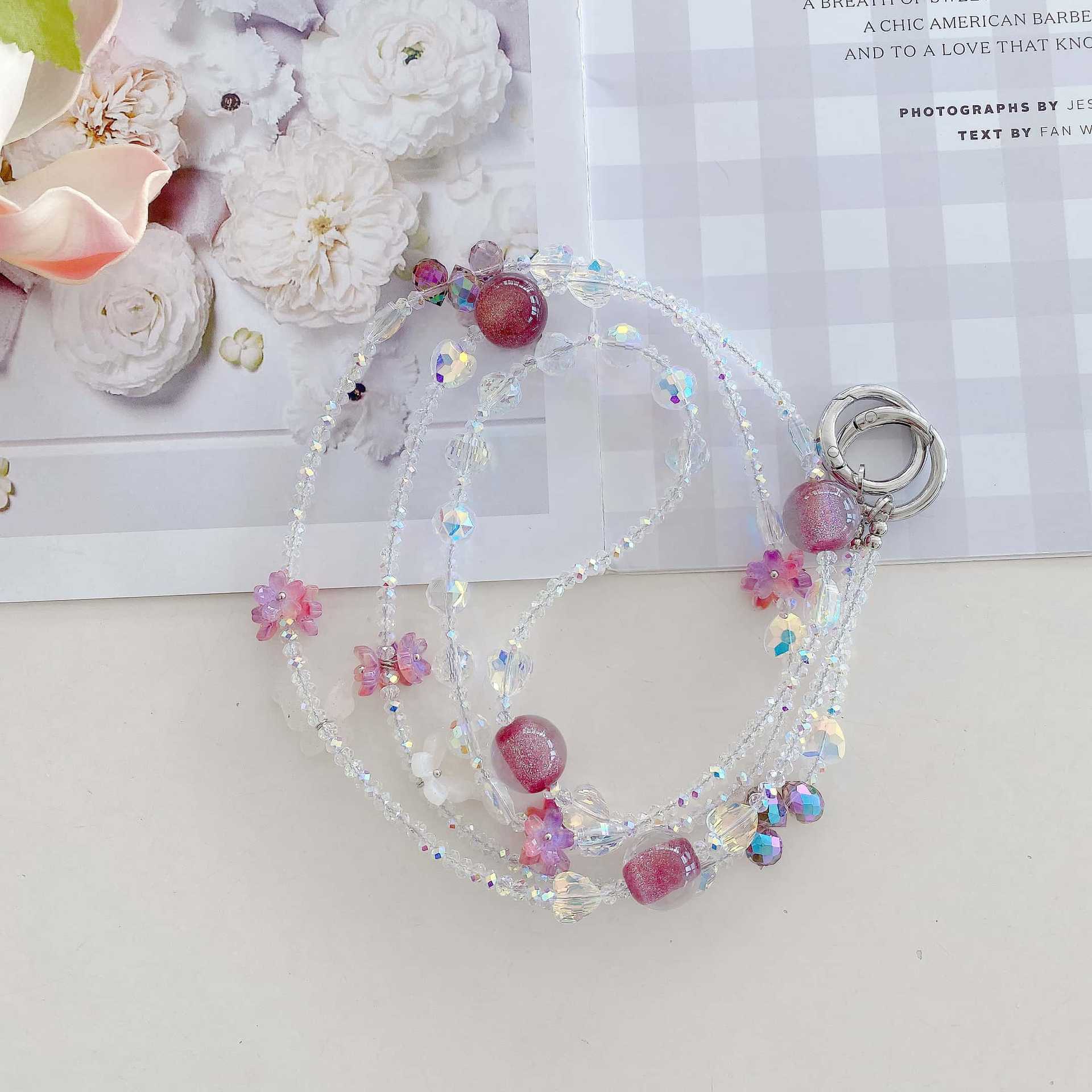 Boutique hecho a mano de alta gama teléfono móvil cadena colgante ins flor cuentas cadena larga cordón de teléfono móvil de moda mensajero largo/colgante