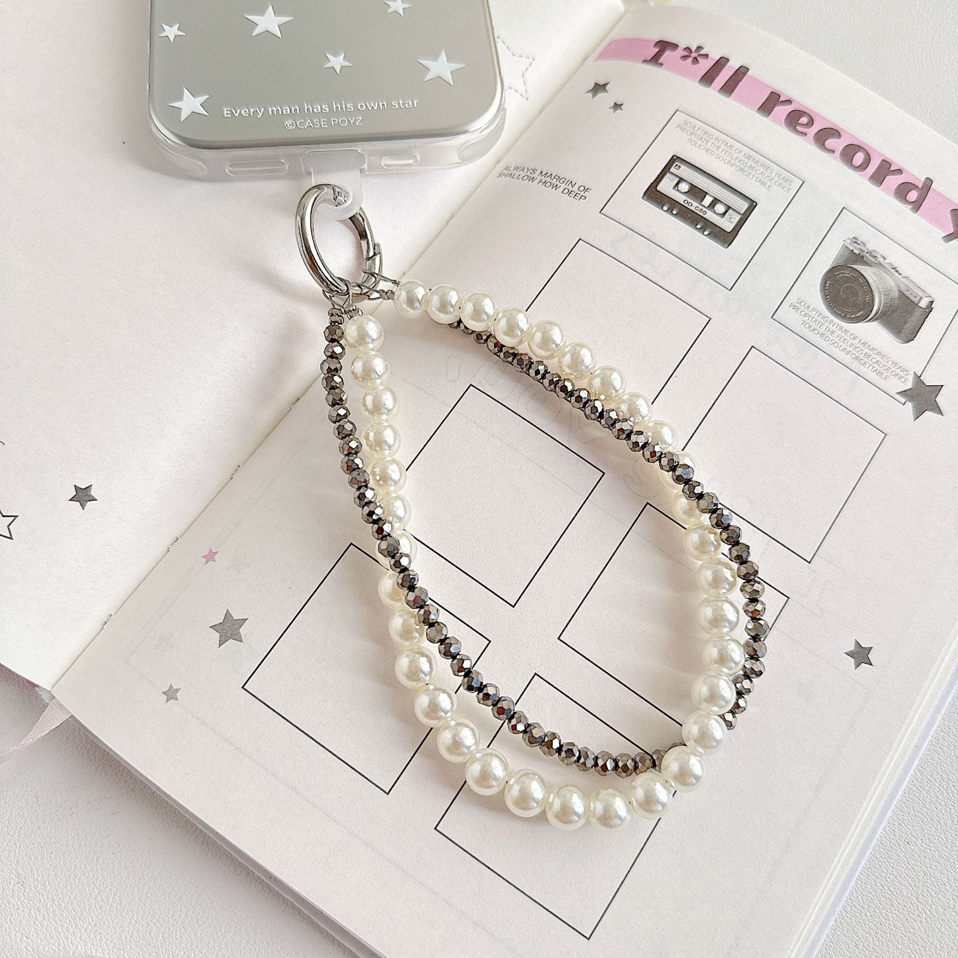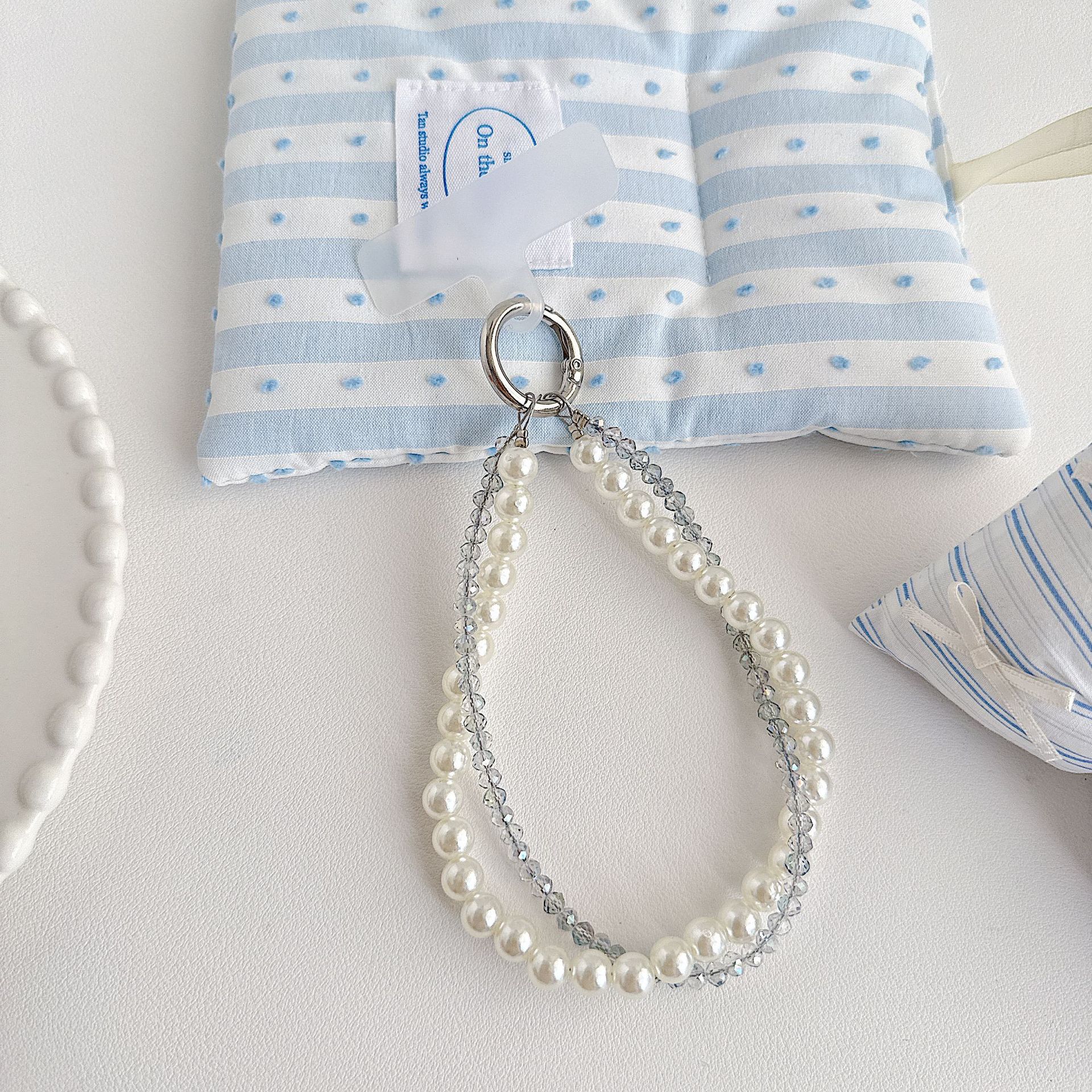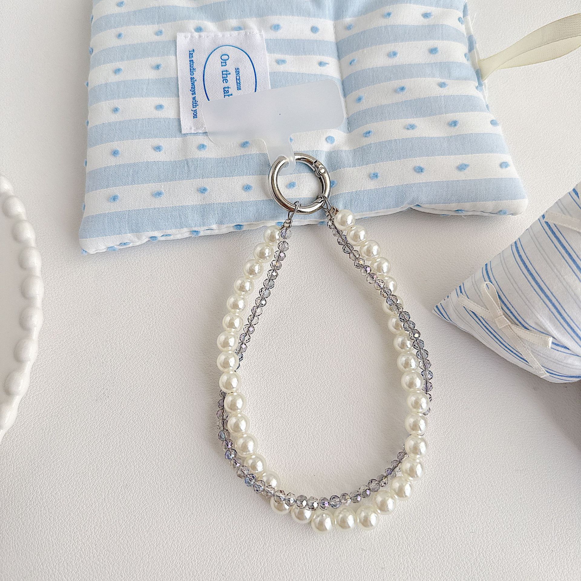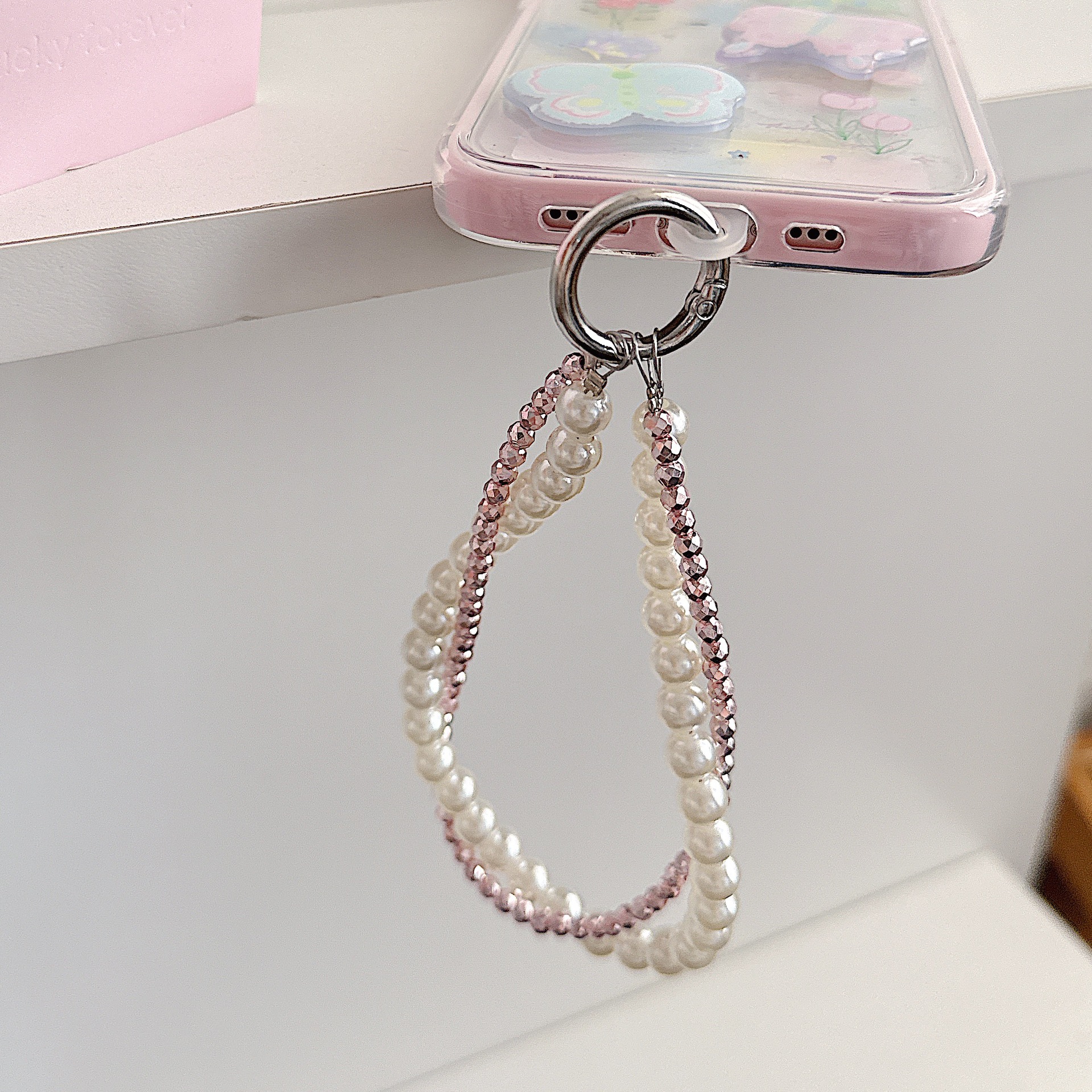 Boutique hecho a mano de alta gama teléfono móvil cadena colgante mujer estilo ins cristal coreano perla enrollamiento cadena de muñeca moda corta