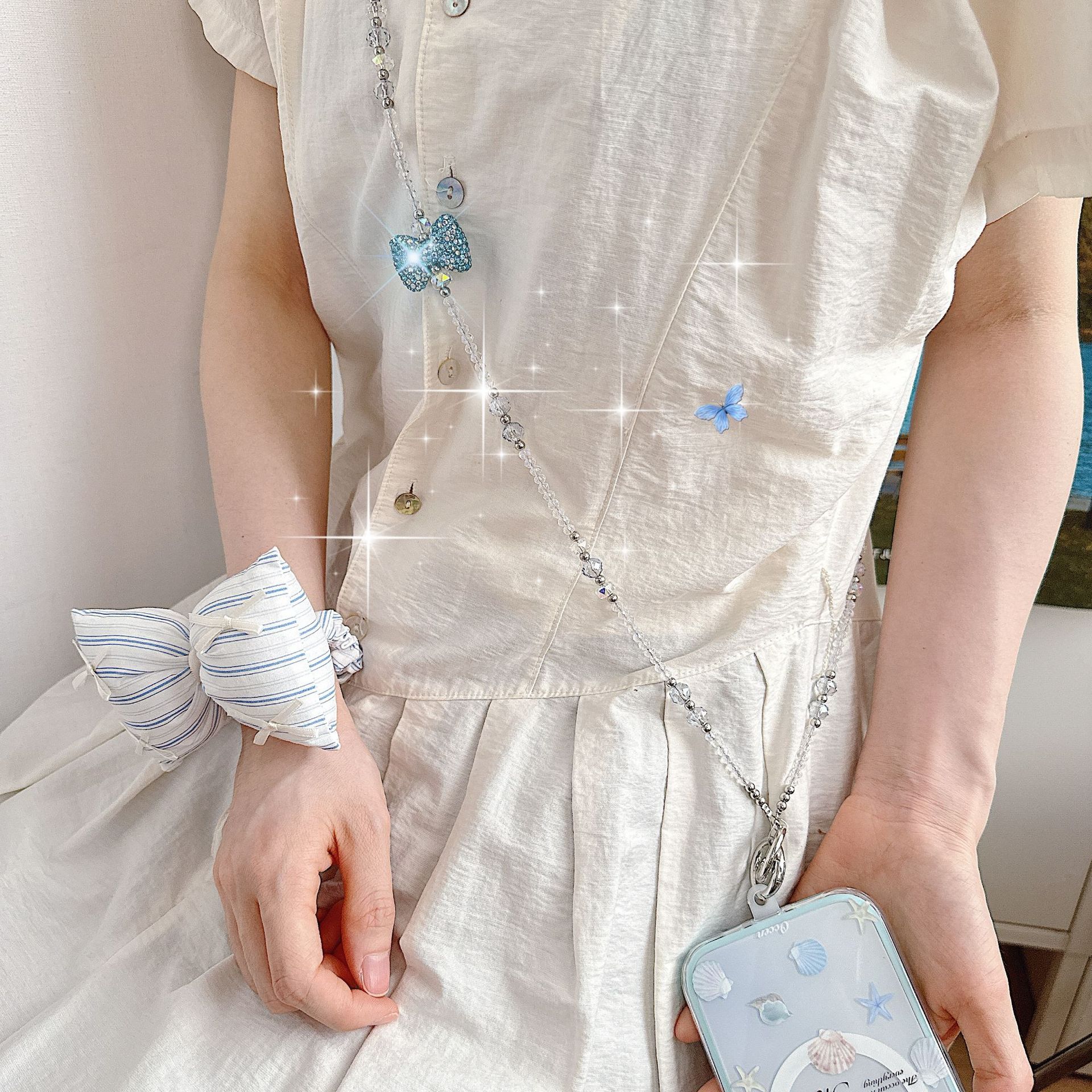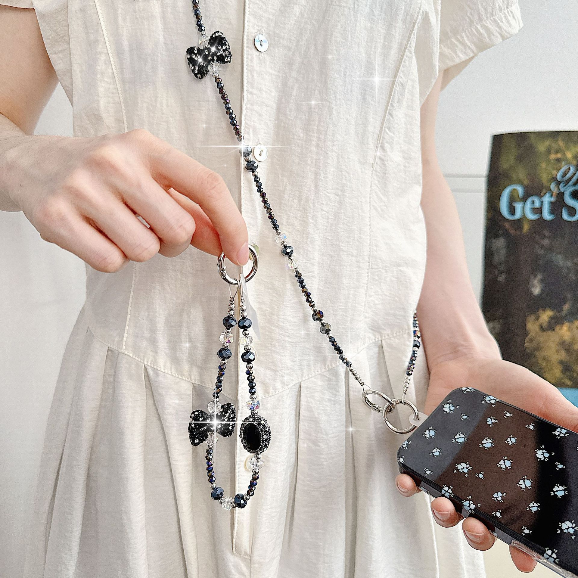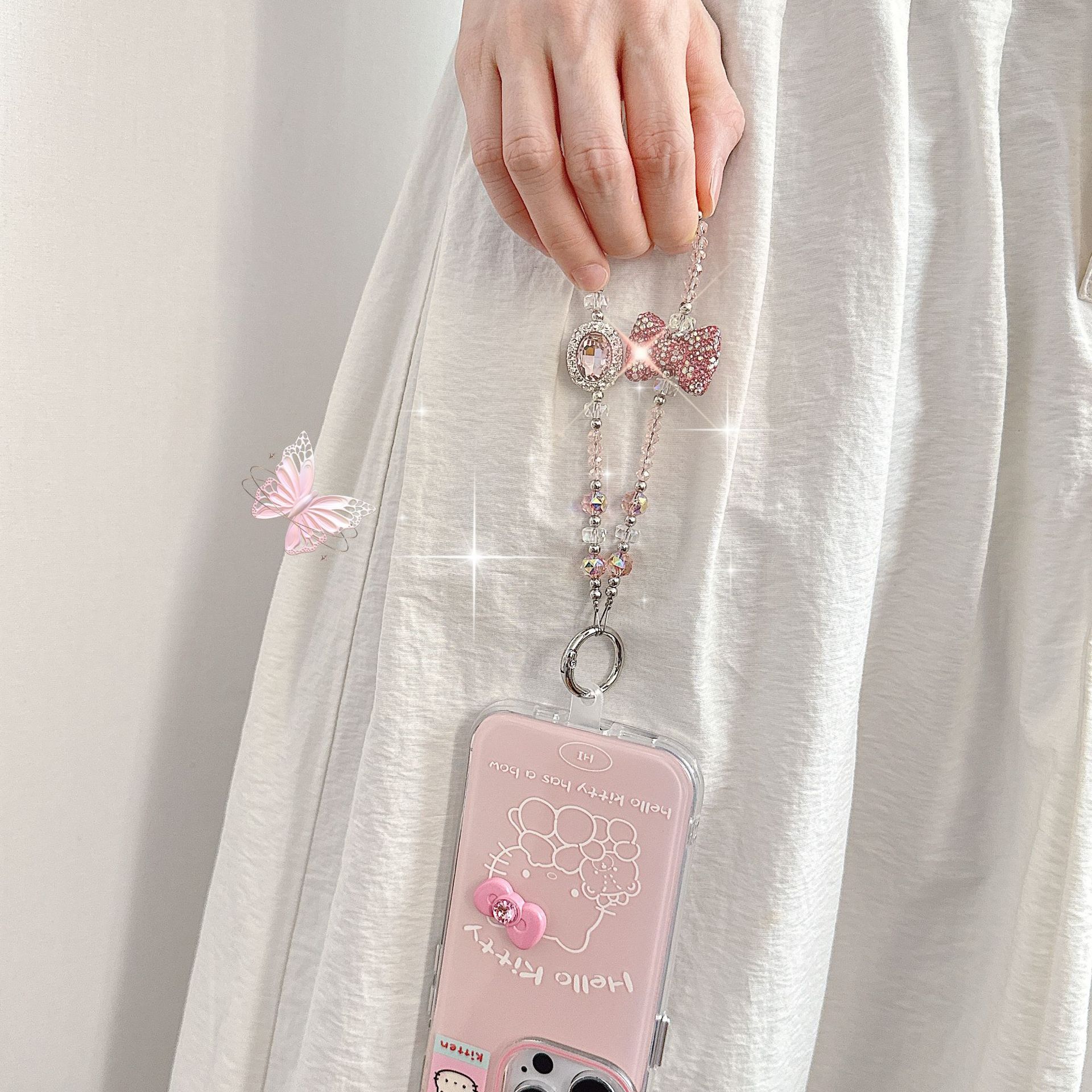 Boutique hecho a mano de alta gama teléfono móvil cadena colgante ins mujer ligero lujo dulce fresco estilo princesa moda teléfono móvil cadena colgante mensajero largo