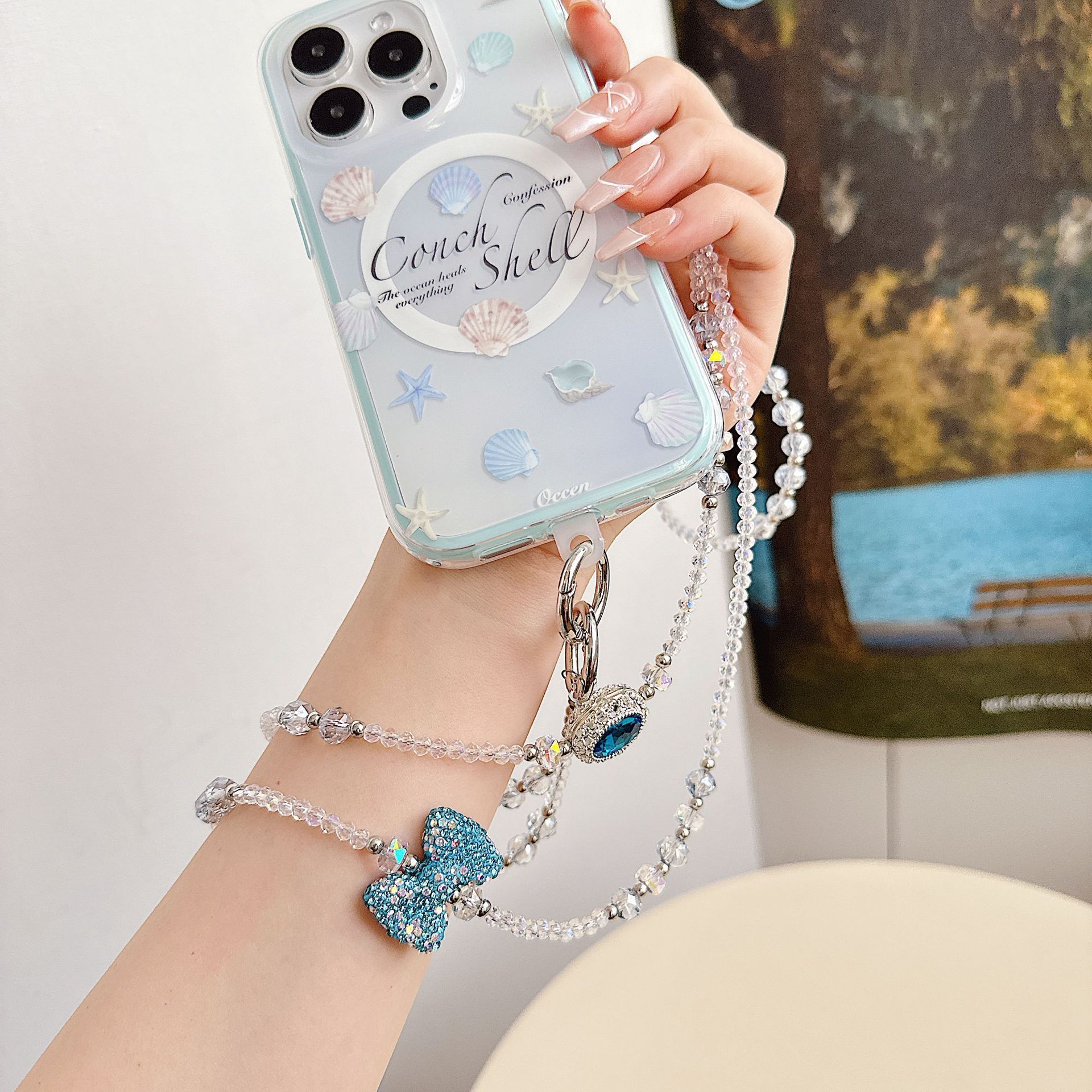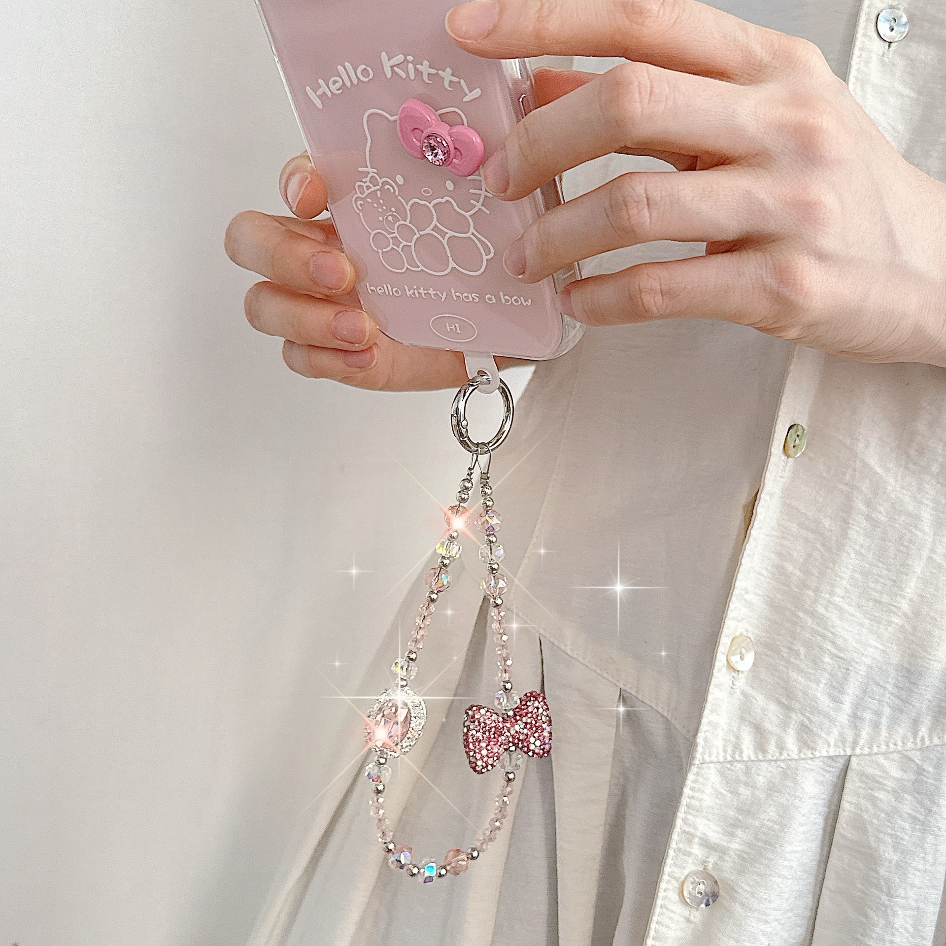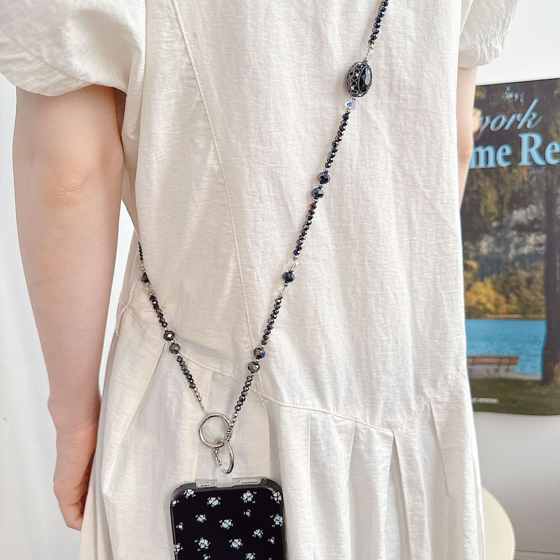 Boutique hecho a mano de alta gama teléfono móvil cadena colgante ins mujer ligero lujo dulce fresco estilo princesa moda teléfono móvil cadena colgante mensajero largo