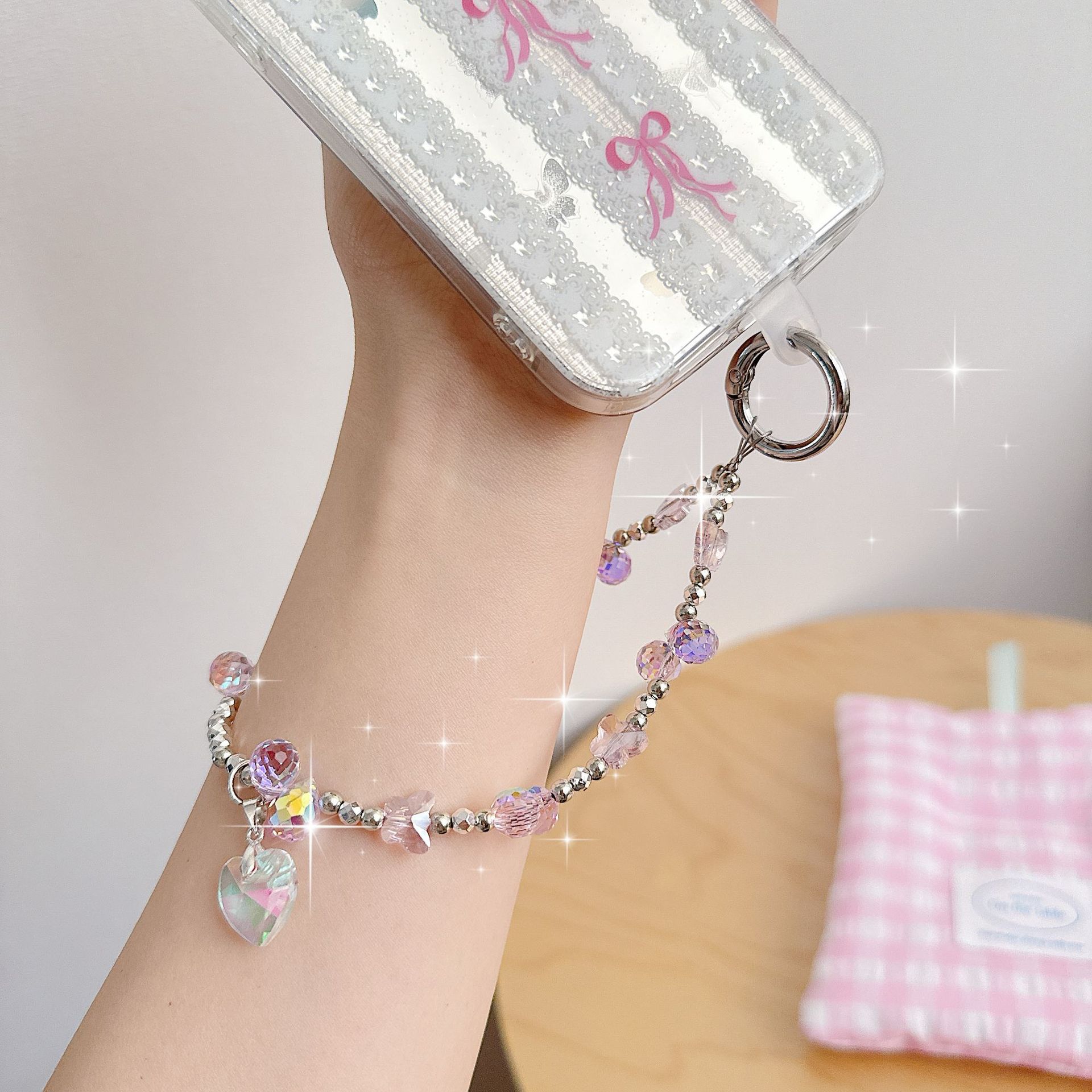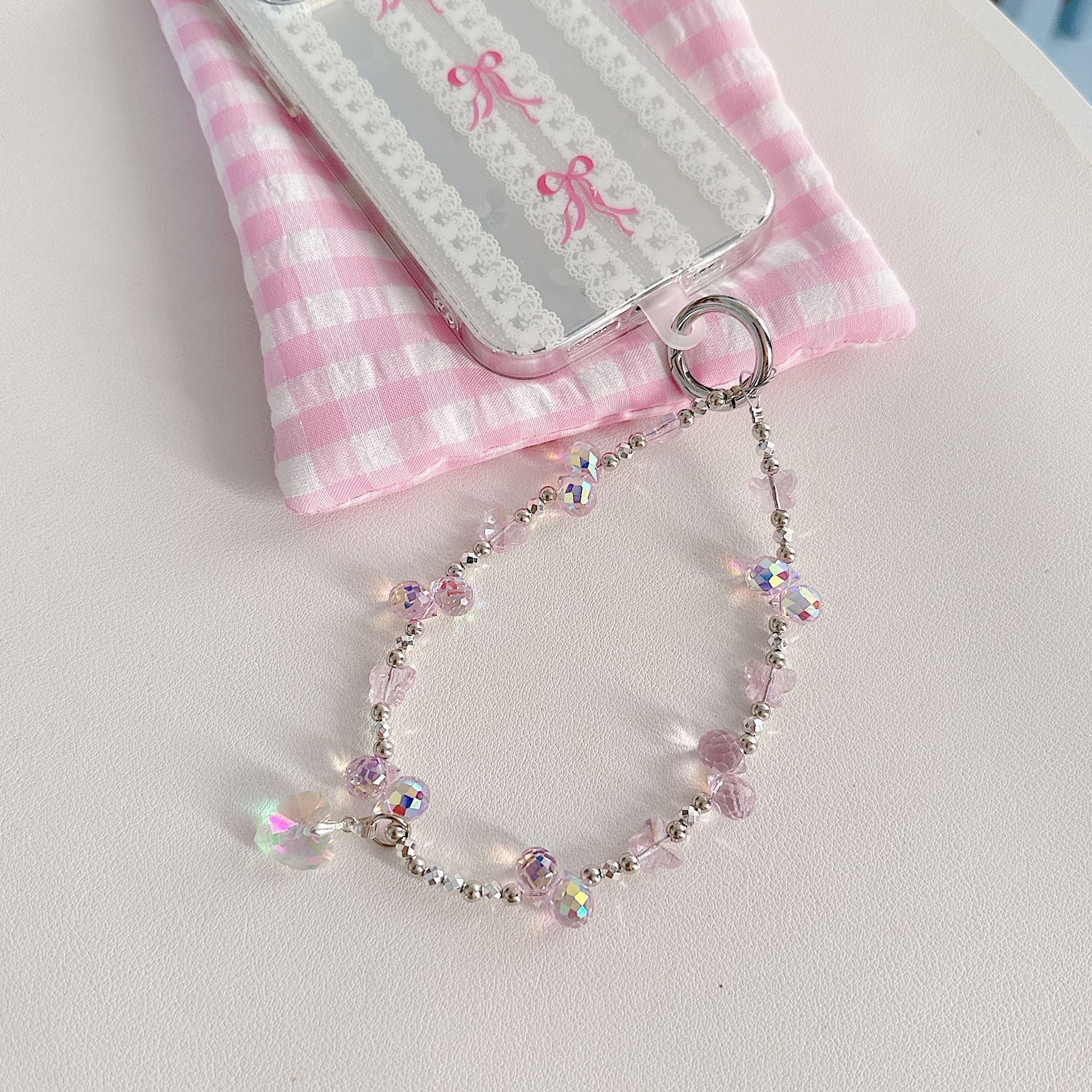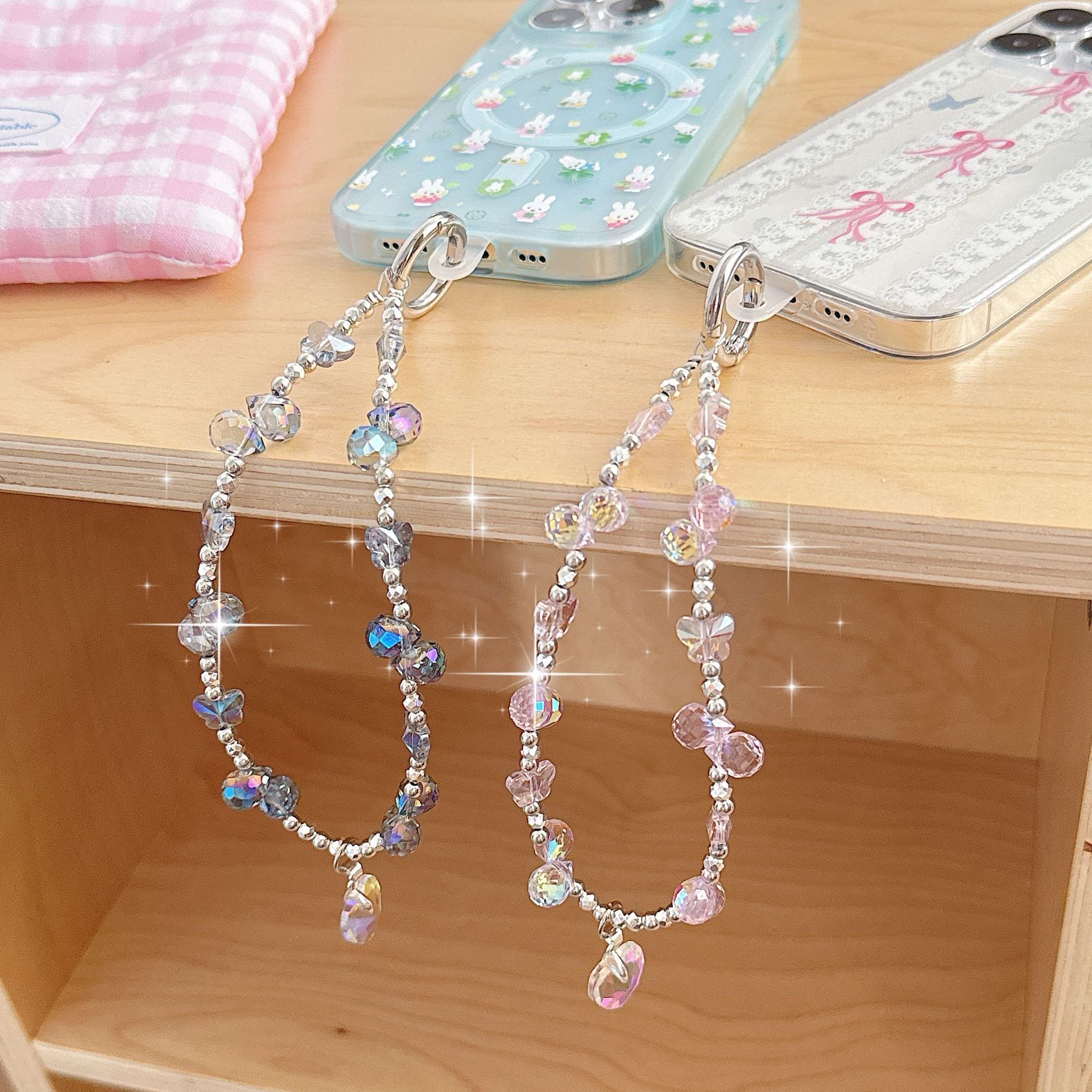 Boutique hecho a mano de alta gama teléfono móvil cadena colgante mujer ins fresa mariposa amor colgante moda teléfono móvil cadena colgante corto