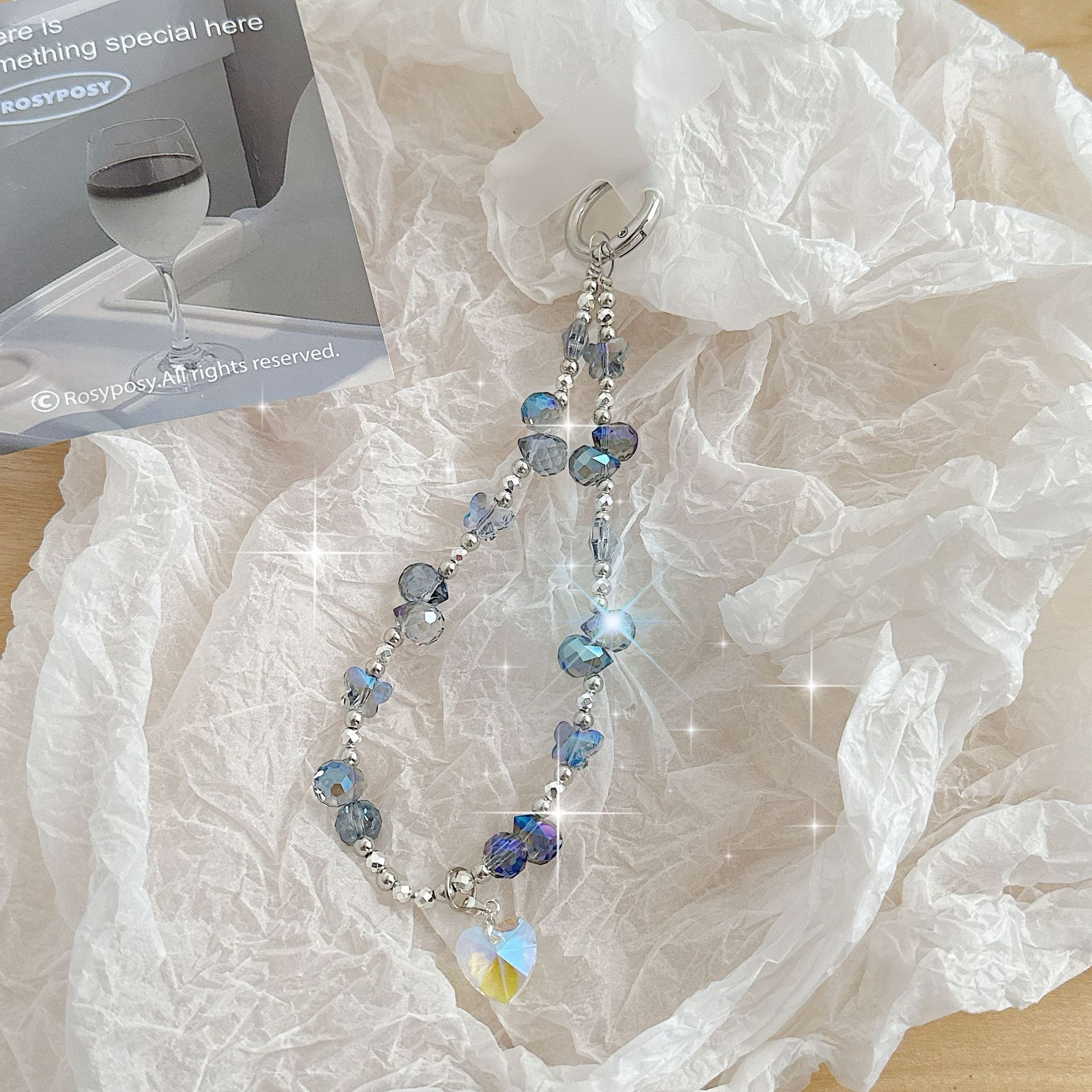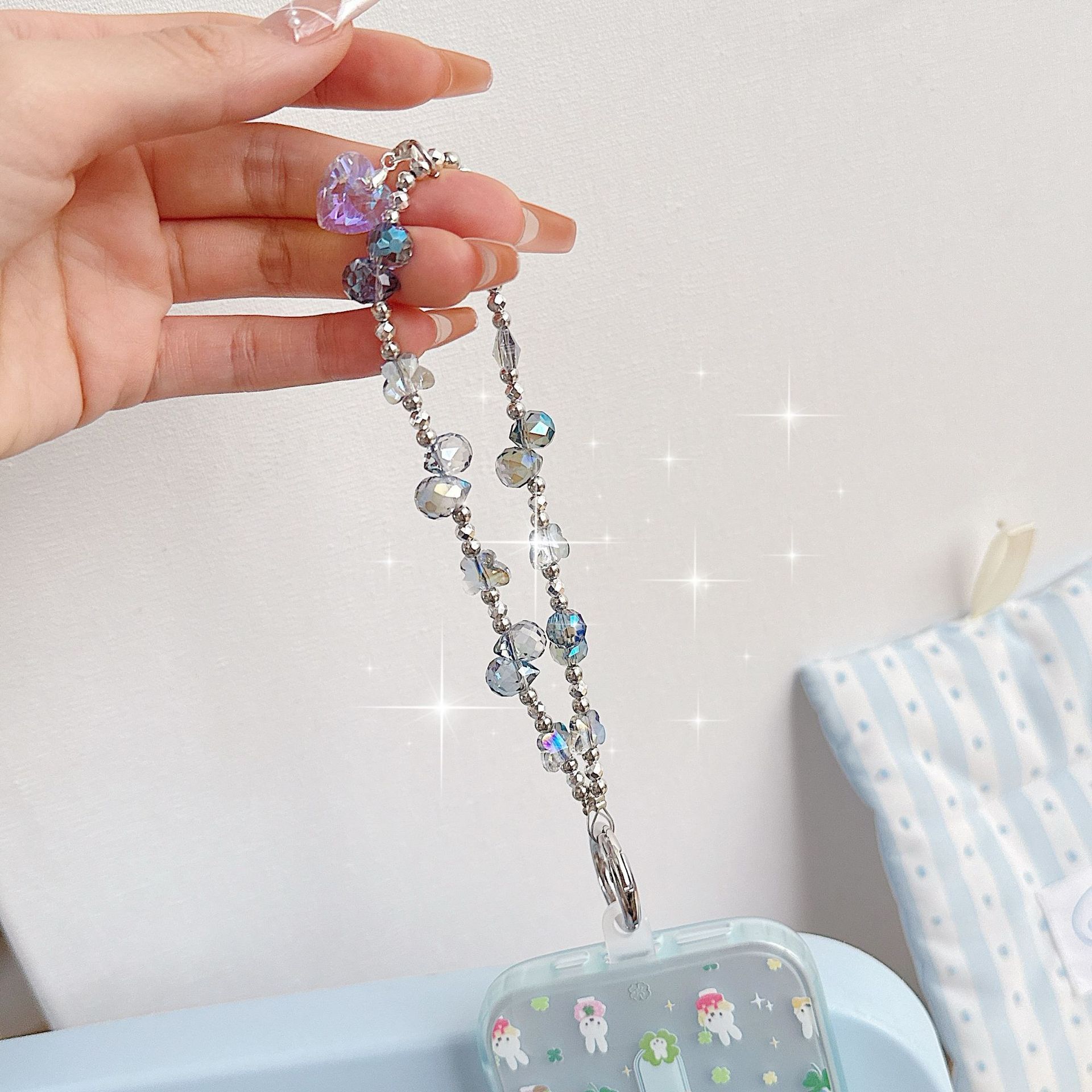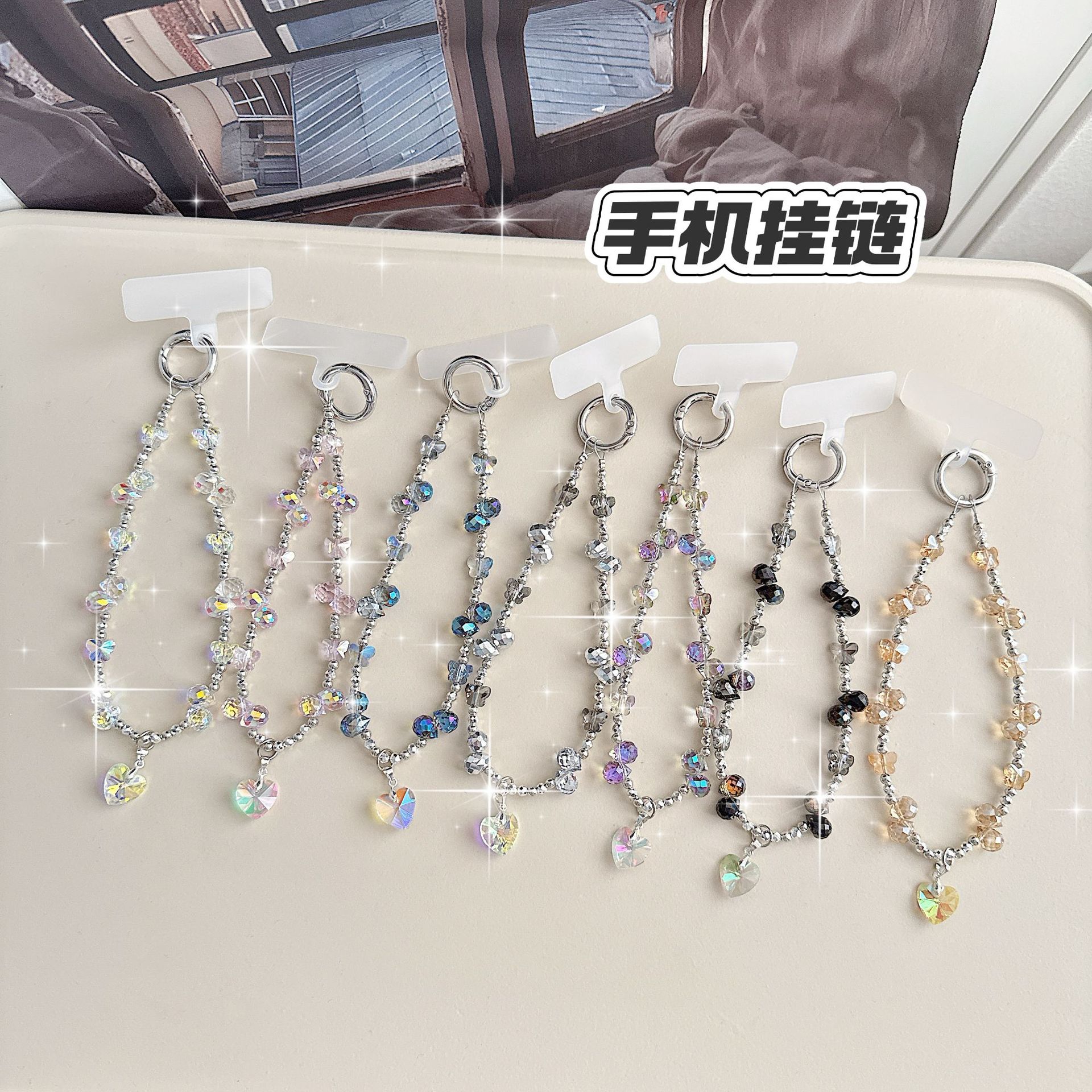 Boutique hecho a mano de alta gama teléfono móvil cadena colgante mujer ins fresa mariposa amor colgante moda teléfono móvil cadena colgante corto