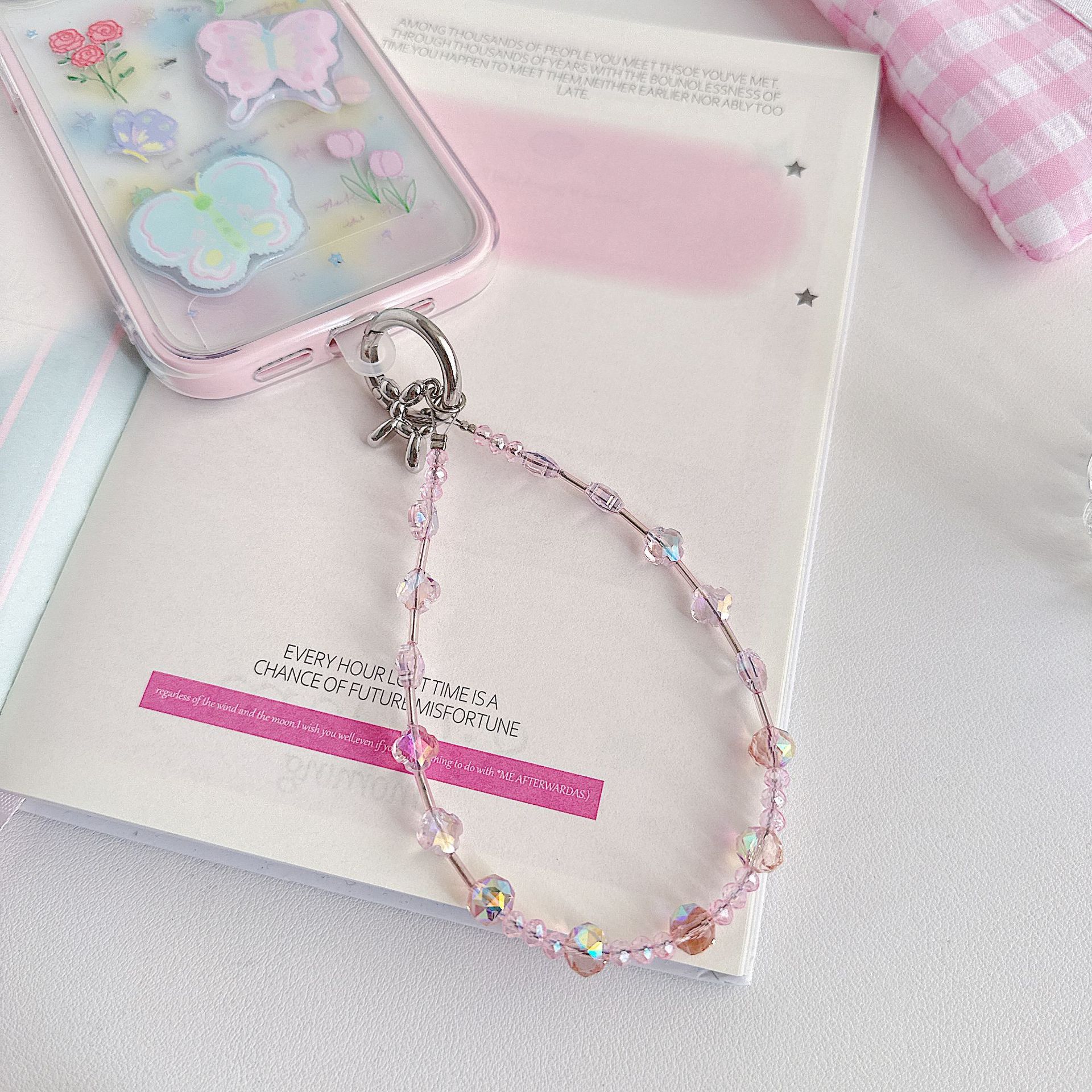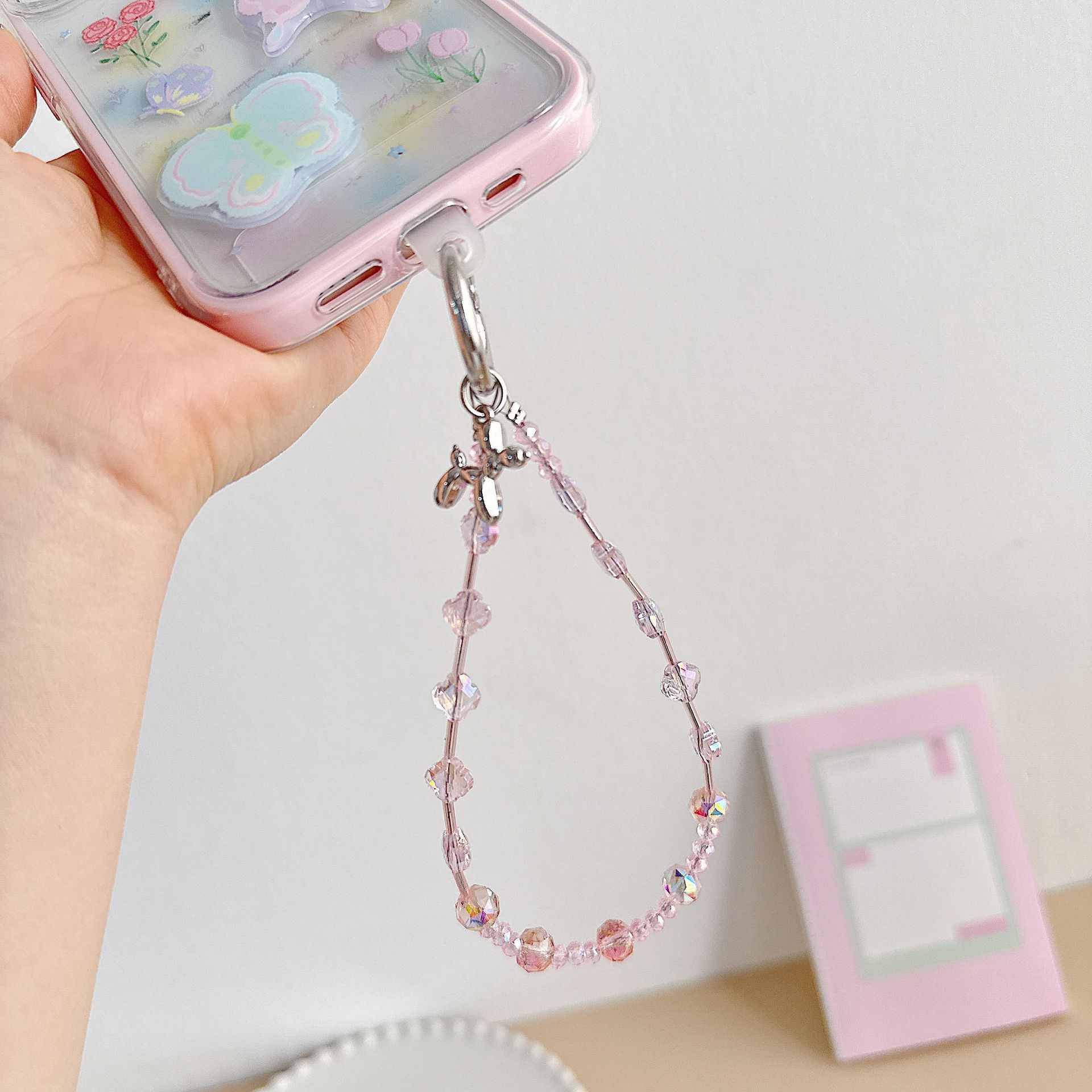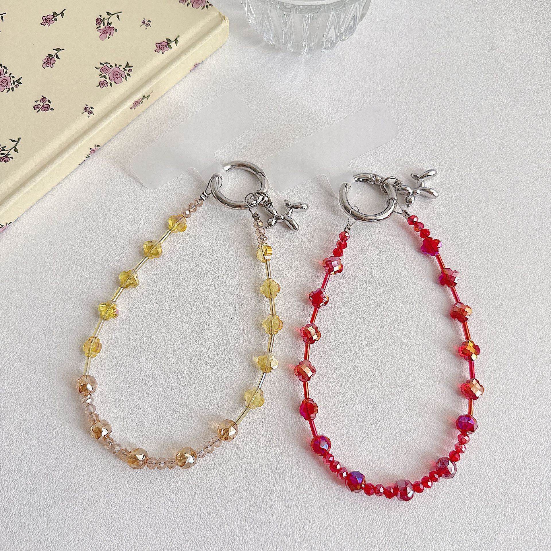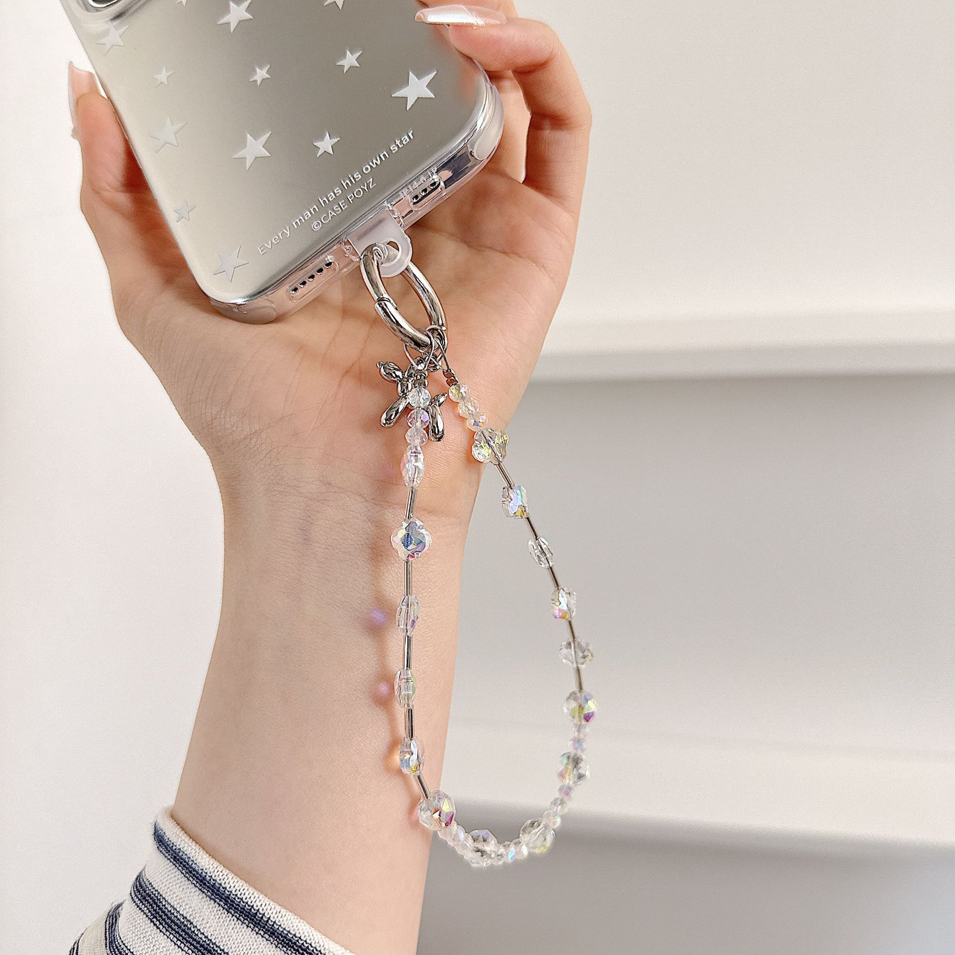 Boutique hecho a mano de alta gama para teléfono móvil cadena de muñeca de trébol de cuatro hojas de cristal original cadena de teléfono móvil de moda cuerda corta