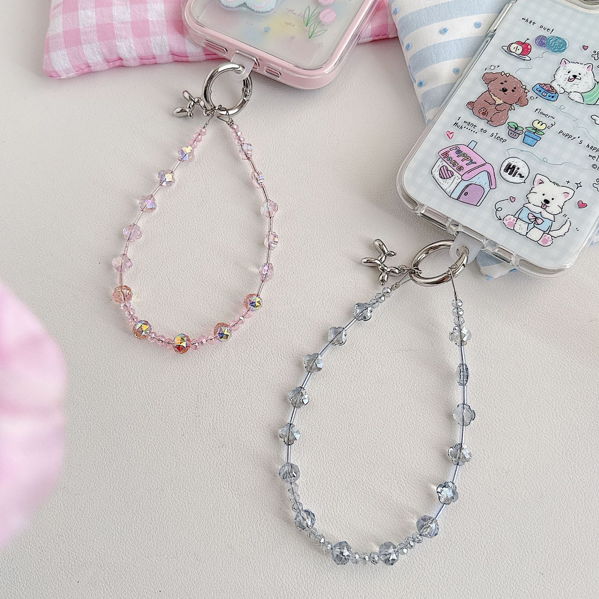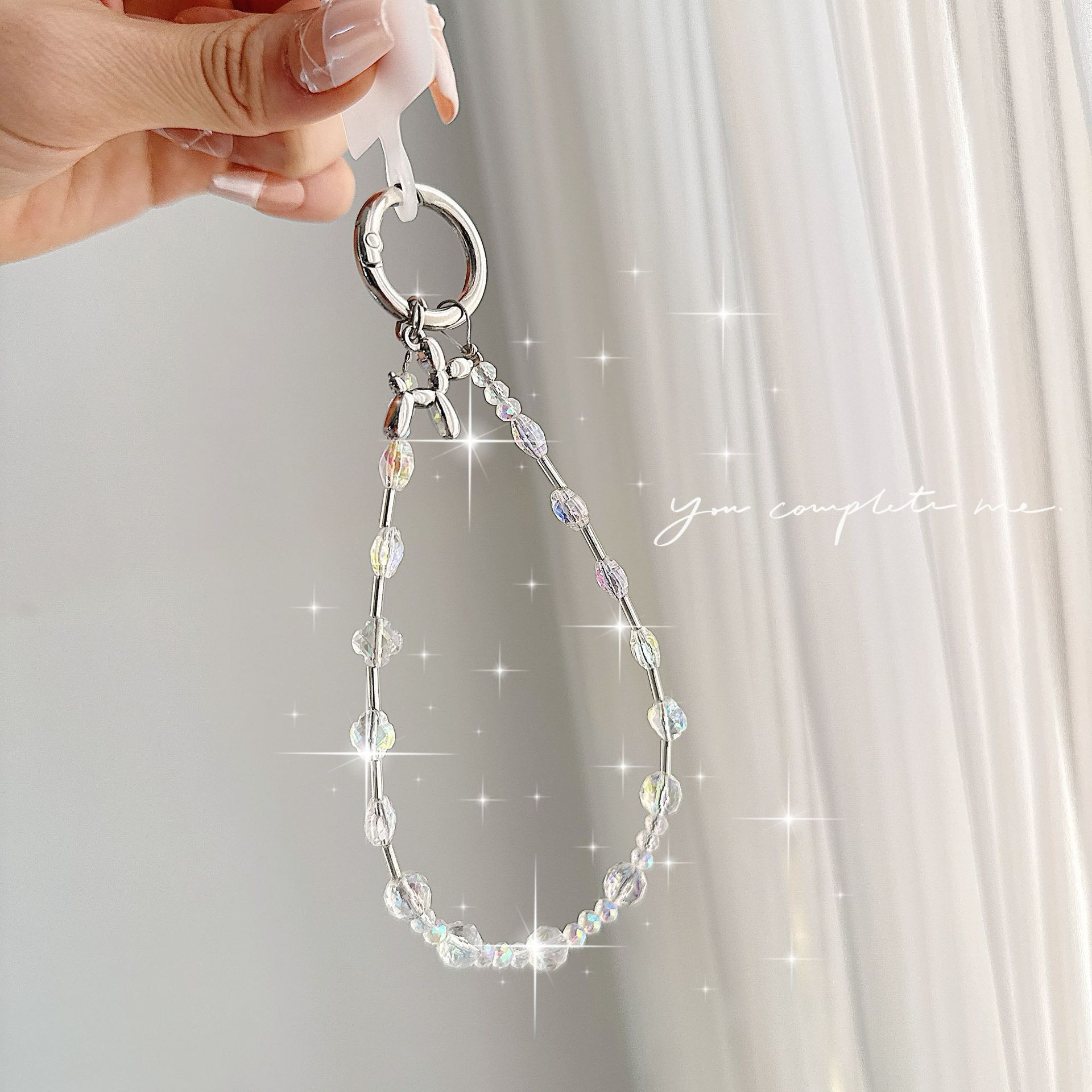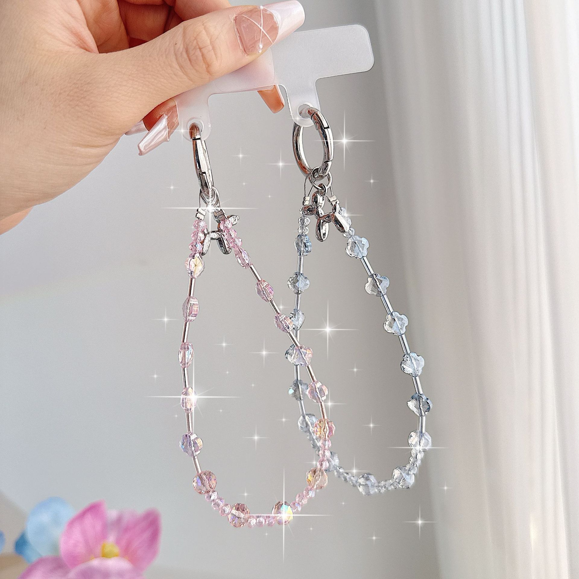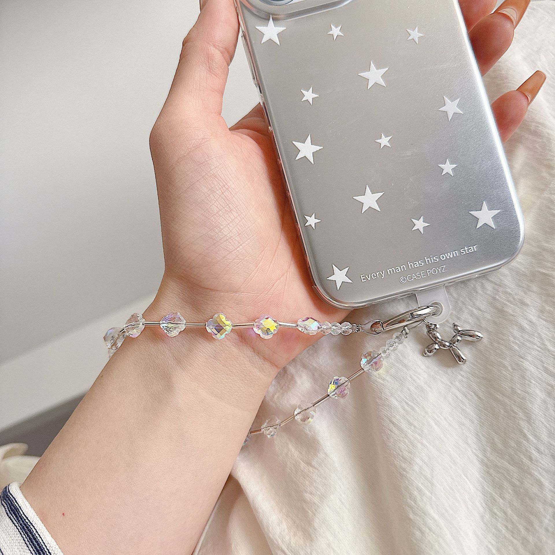 Boutique hecho a mano de alta gama para teléfono móvil cadena de muñeca de trébol de cuatro hojas de cristal original cadena de teléfono móvil de moda cuerda corta