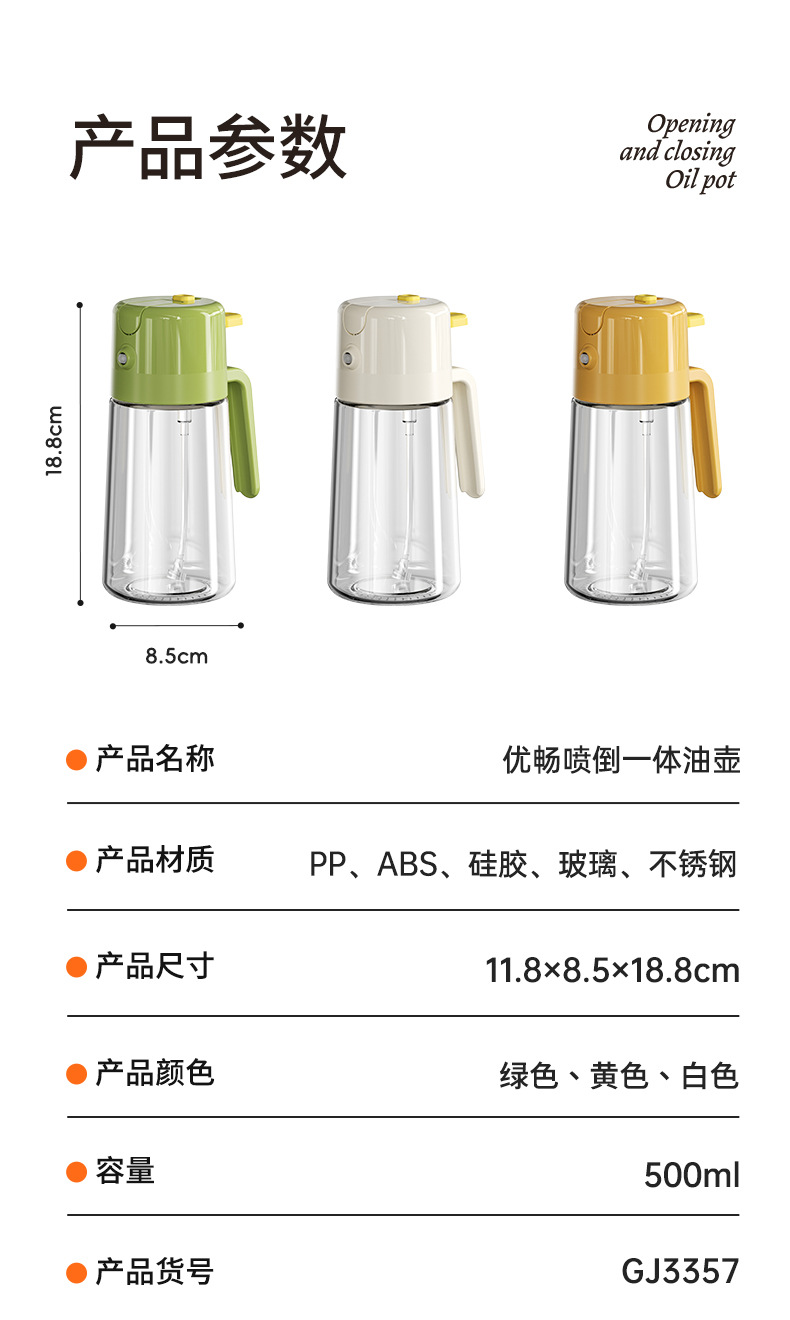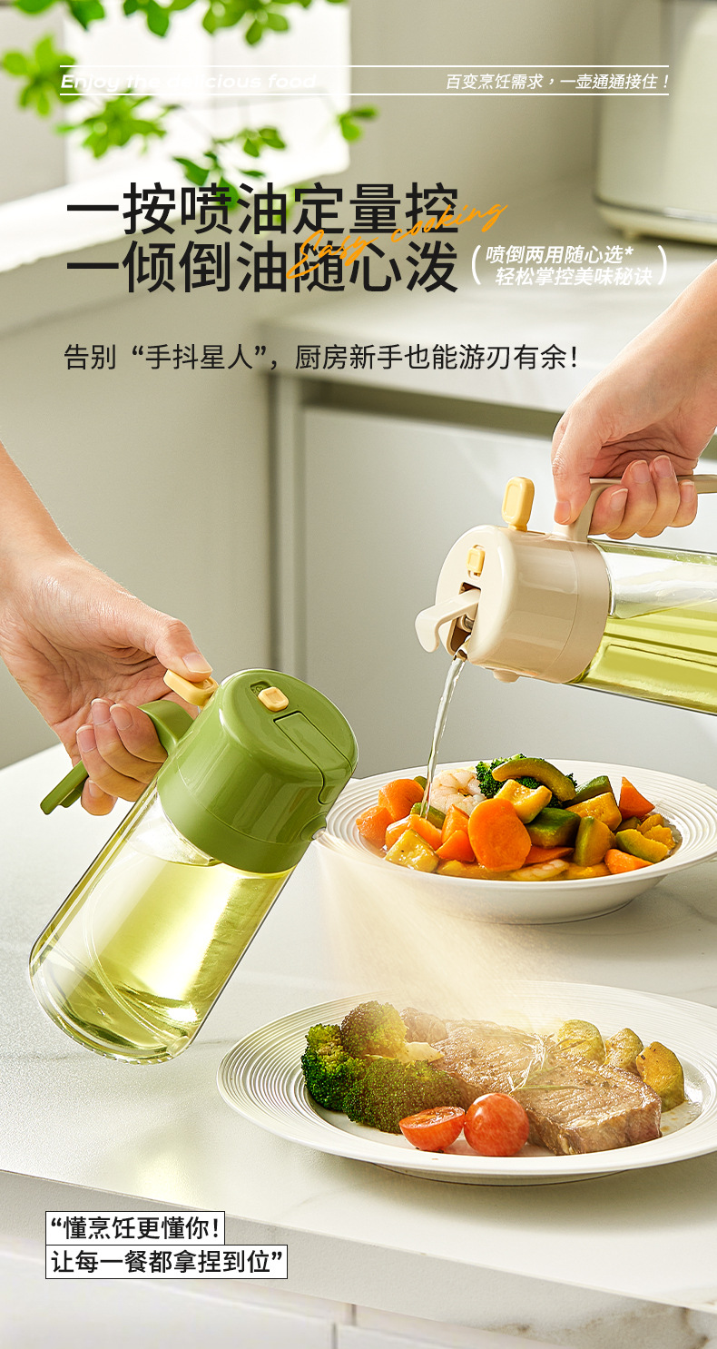 Botella de pulverización de aceite de dos propósitos, botella de pulverización de vidrio de cocina, botella de condimentos doméstica, botella a prueba de fugas de aceite de gran capacidad