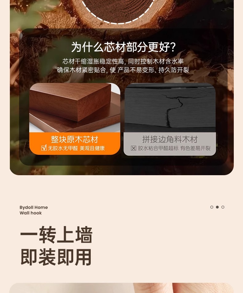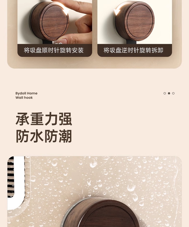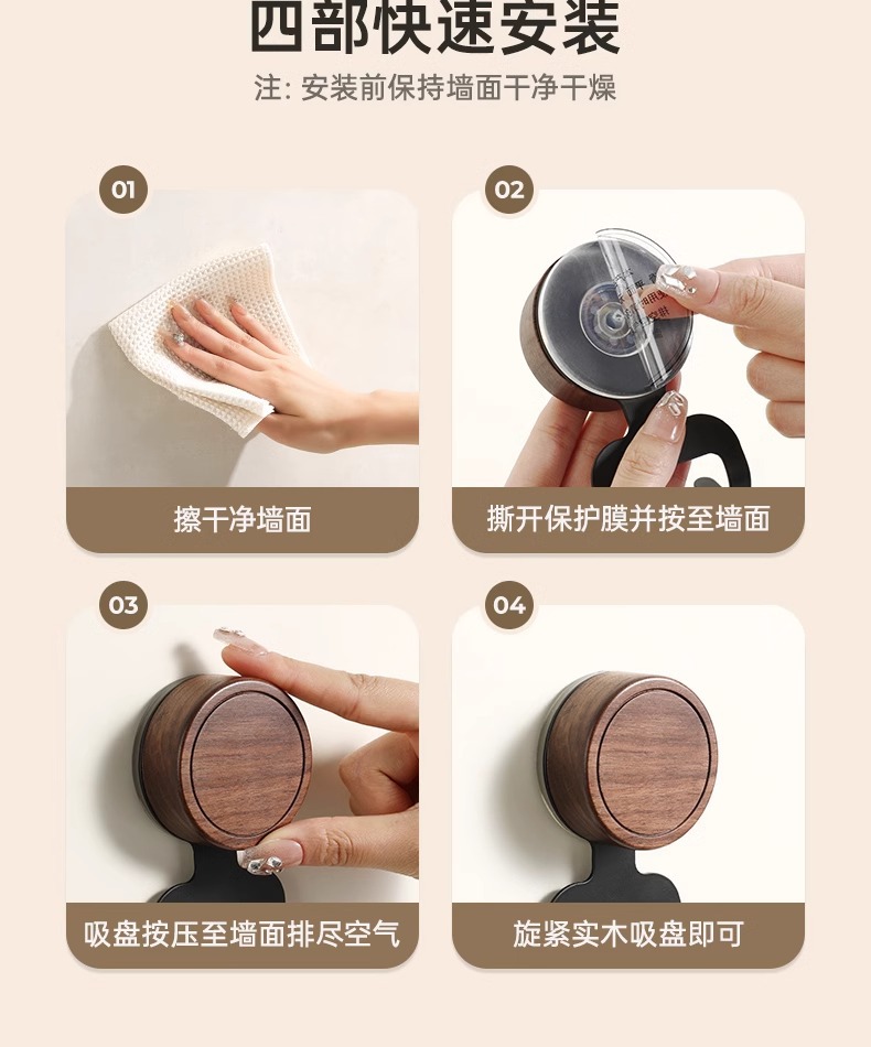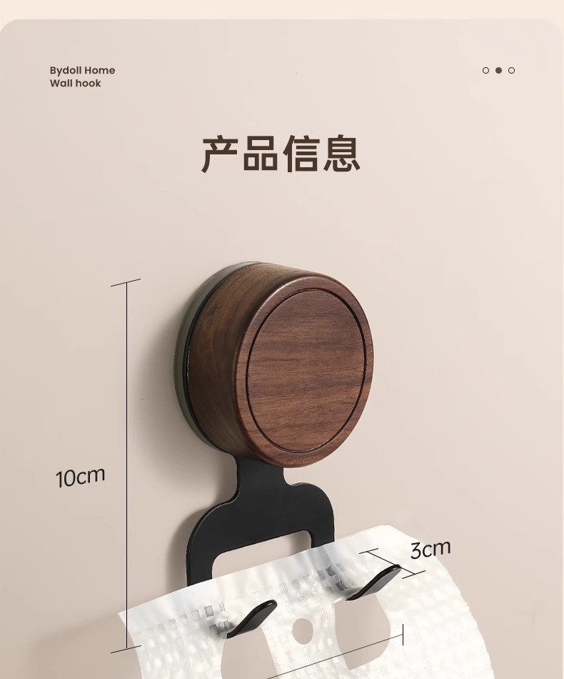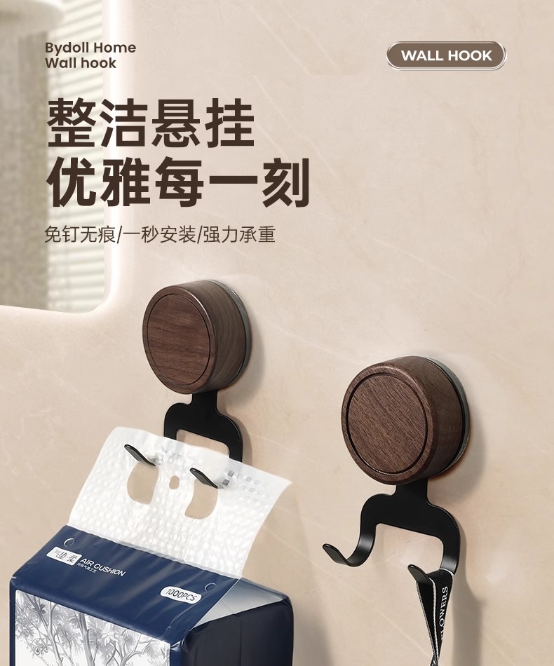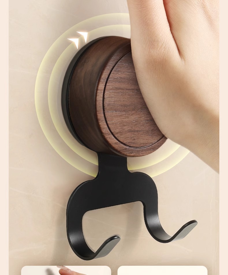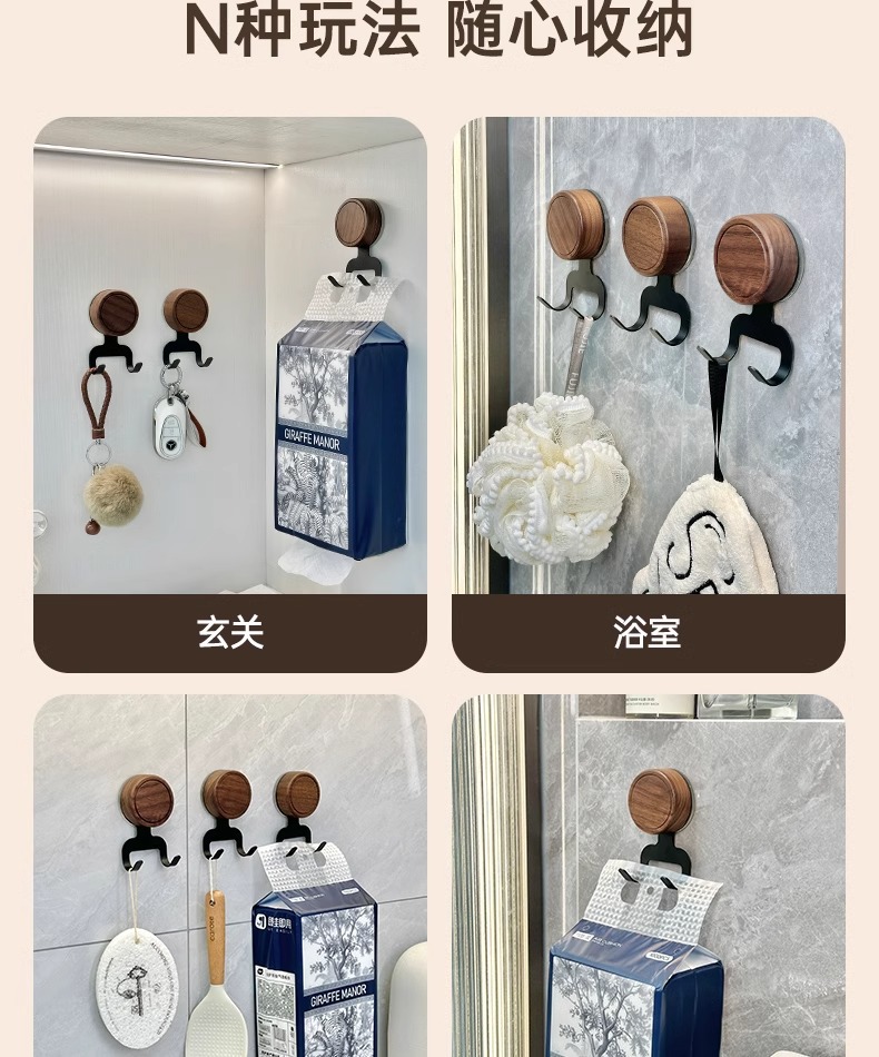 Gancho de ventosa de nogal, papel colgante sin perforaciones, baño especial con capacidad de carga fuerte, gancho de madera maciza de estilo antiguo