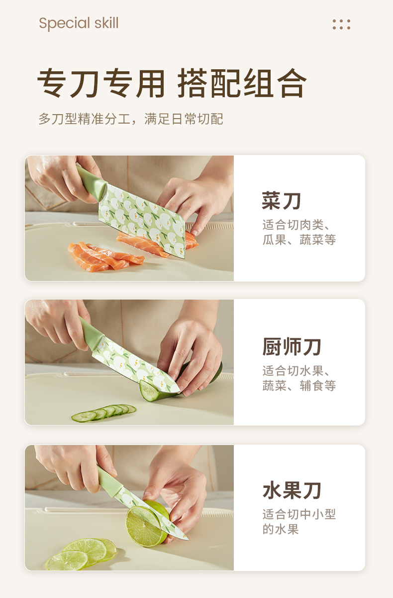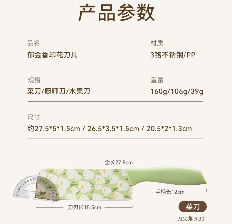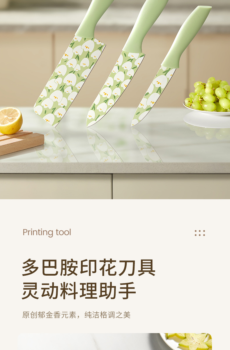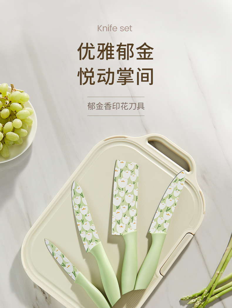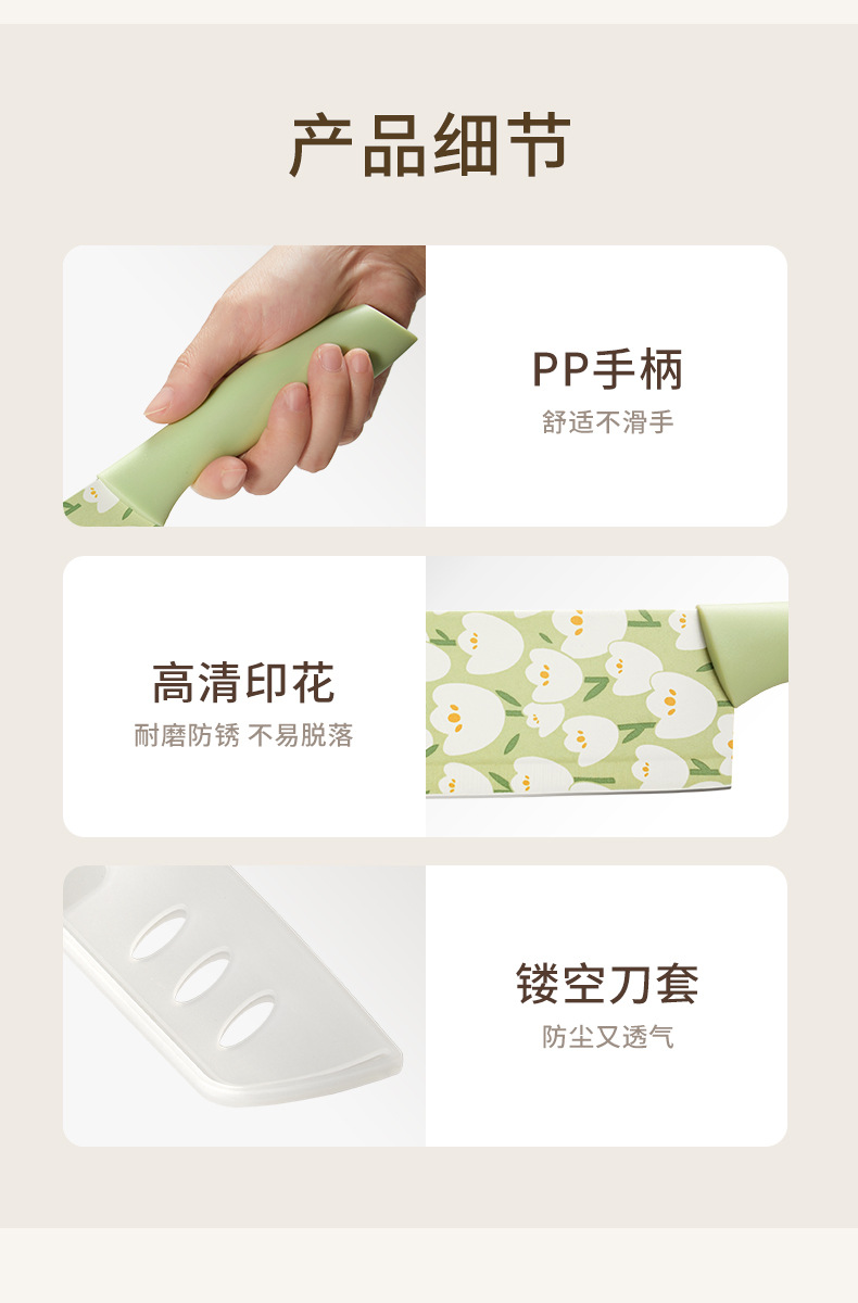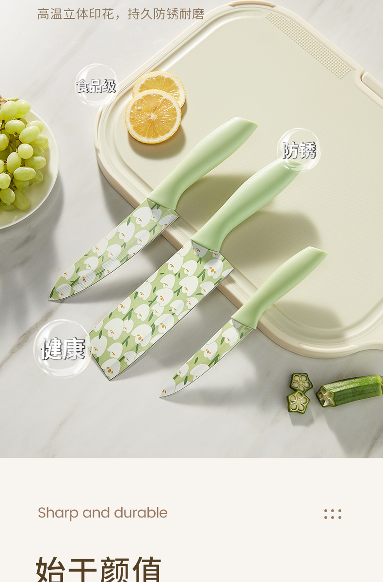 Cuchillo de cocina de tulipán original Cocina doméstica de alta gama Cuchillo de acero inoxidable Cortar verduras en rodajas Cuchillo de carne Cuchillo de fruta impreso