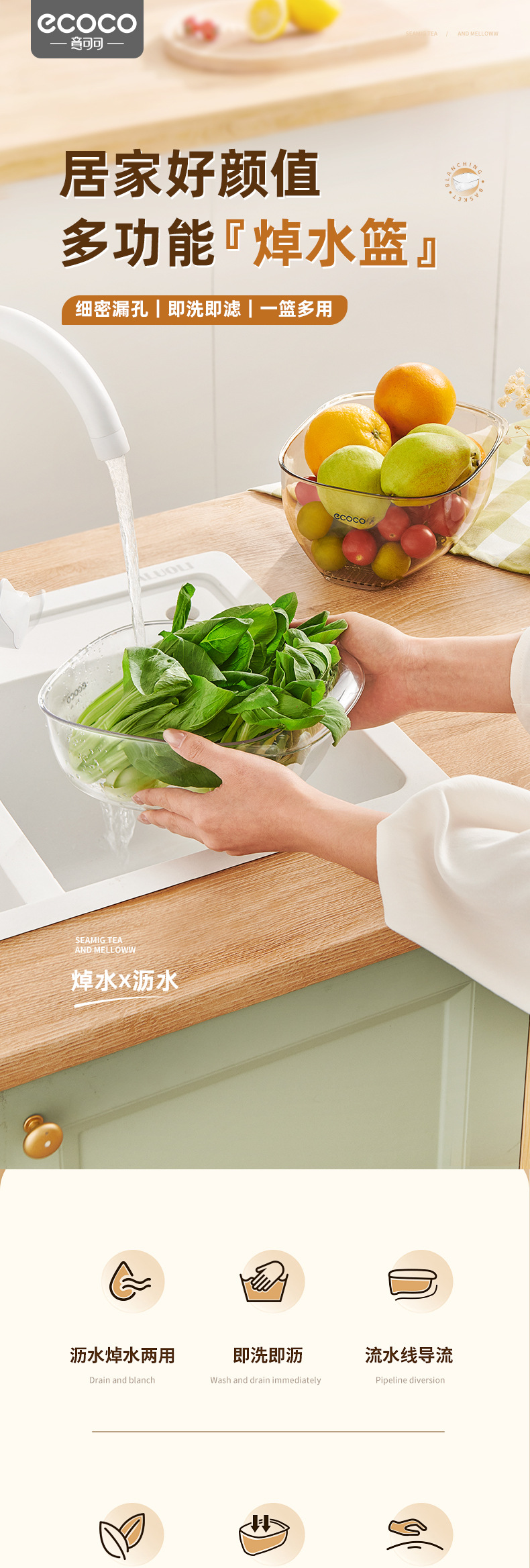 Cesta de drenaje multifuncional 2024 cocina lava frutas y verduras lava lavabo separación seca y húmeda de frutas y verduras agua de lavado resistente a altas temperaturas y alto valor facial