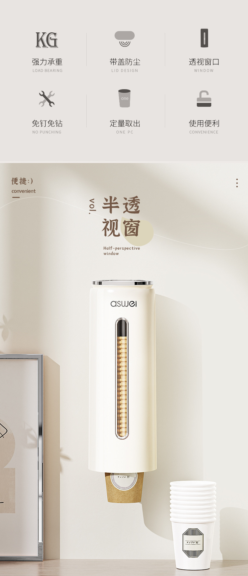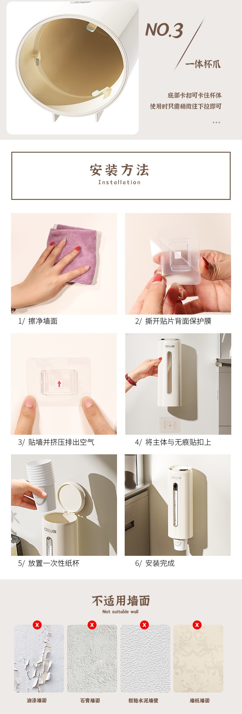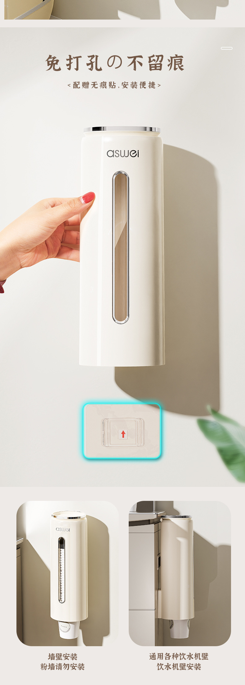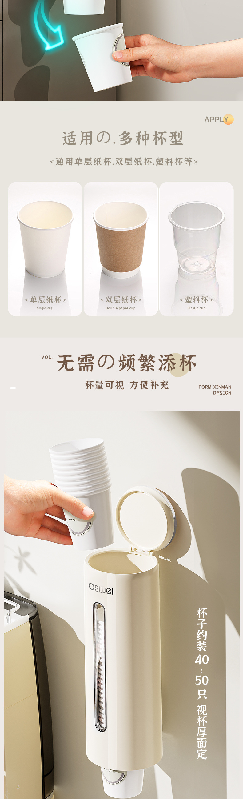 Taza desechable para tomar tazas de papel casero sin perforación taza de agua colgada en la pared taza de agua dispensadora de tazas de almacenamiento de tazas