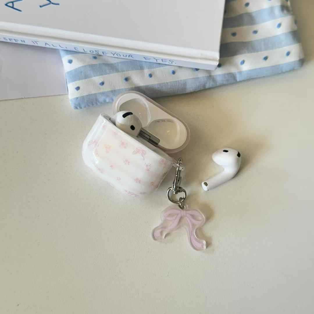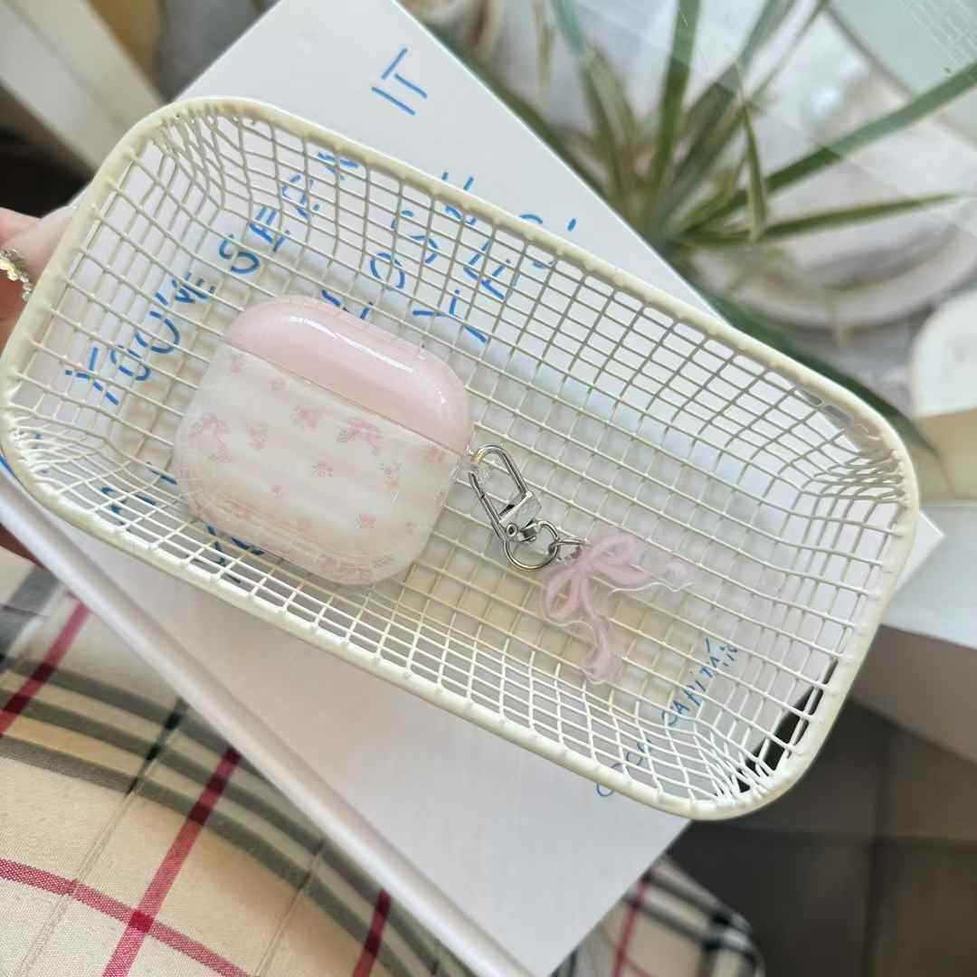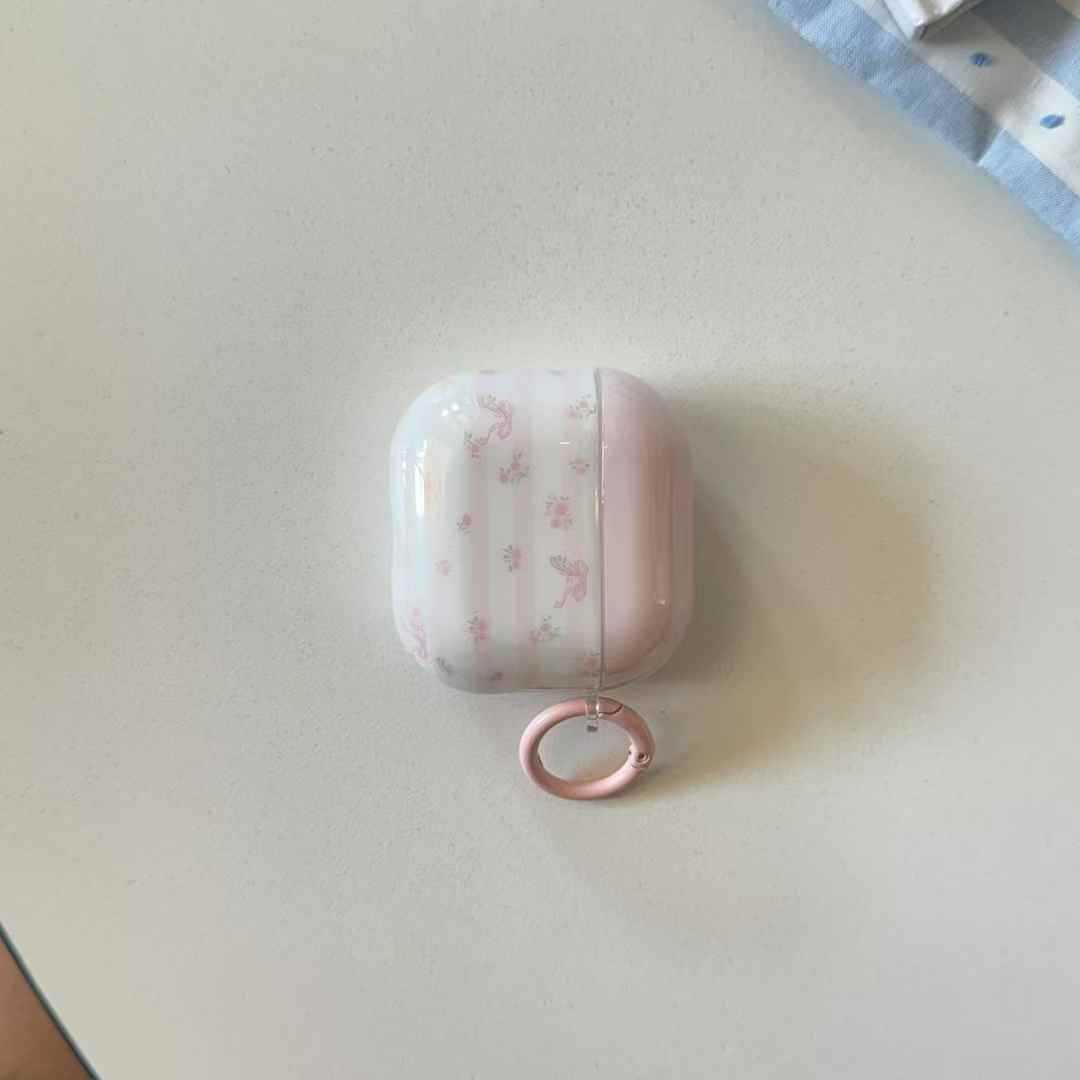 Pequeño polvo fresco a rayas de flores trituradas arco para AirPods pro auriculares cubierta inalámbrica Bluetooth Apple 1 / 2 generación