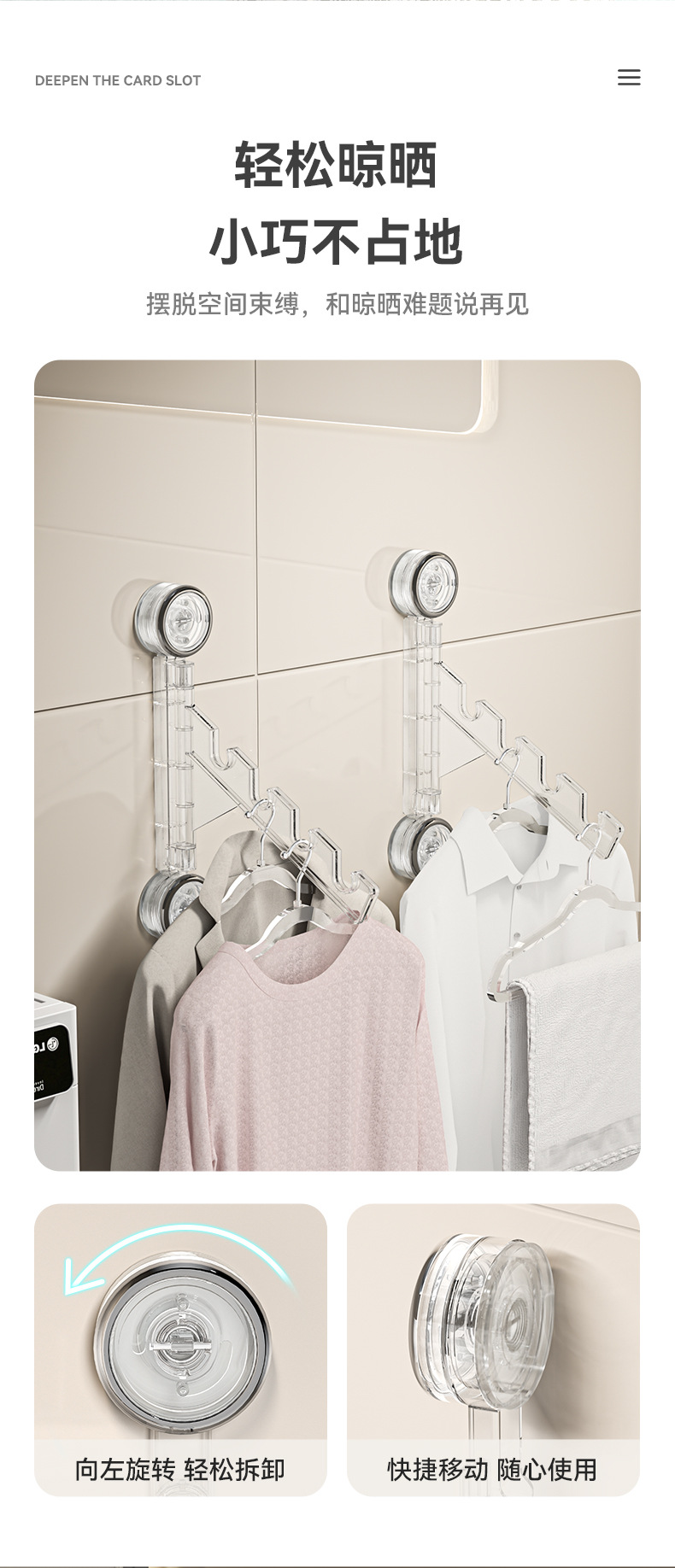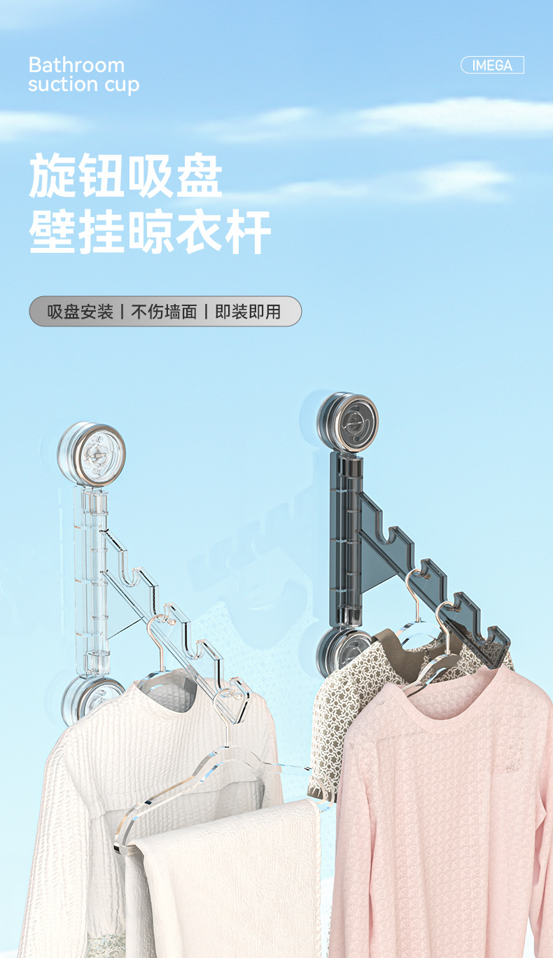 Balcón sin perforación, tendedero giratorio, baño montado en la pared, secado, ropa, postes, ventanas, artefactos invisibles en la pared