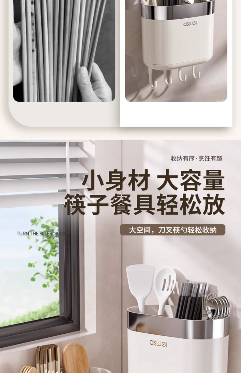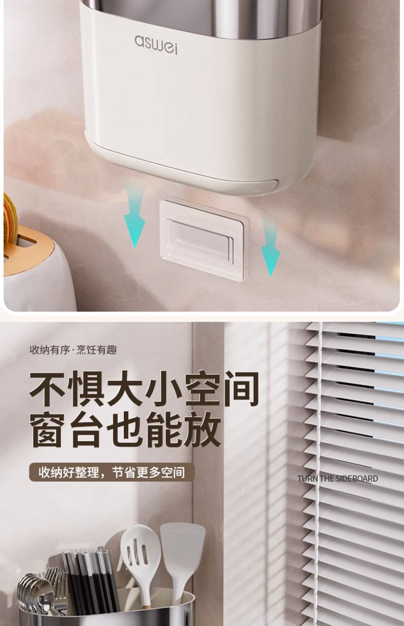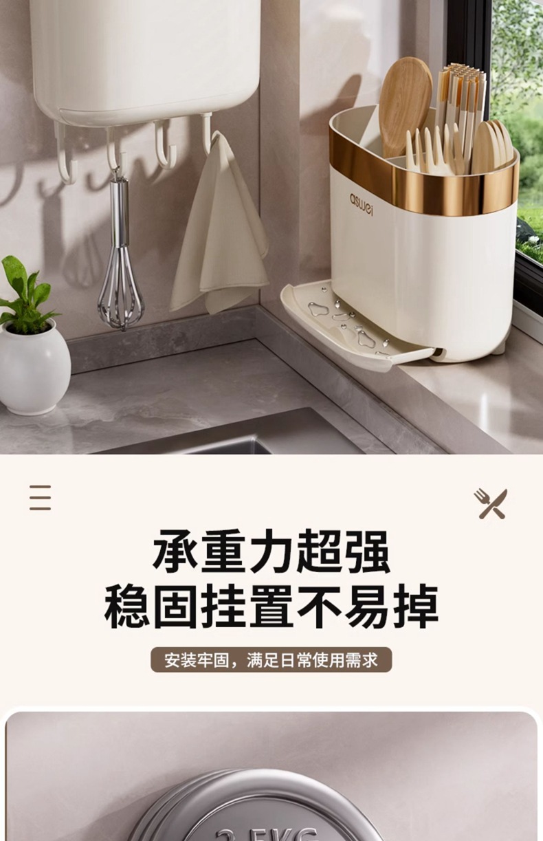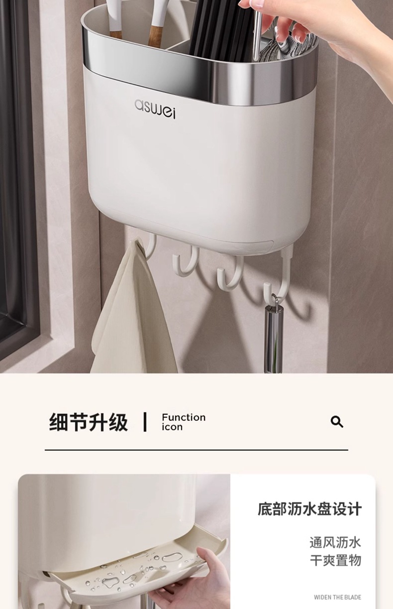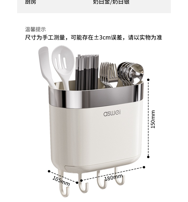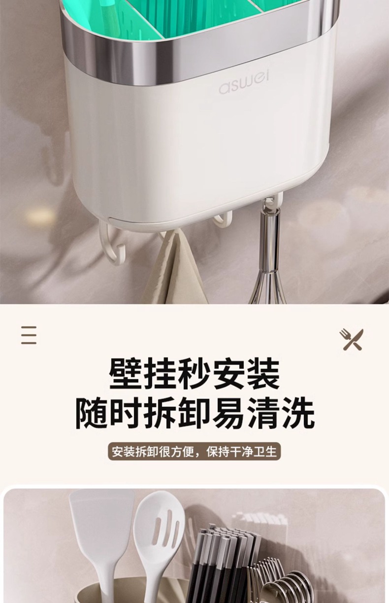 Caja de almacenamiento de palillos Tubo montado en la pared Soporte de almacenamiento de cuchara de cocina Jaula rápida de drenaje de alta gama nuevo hogar sin perforación