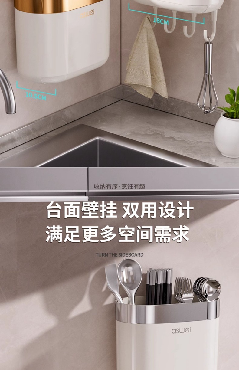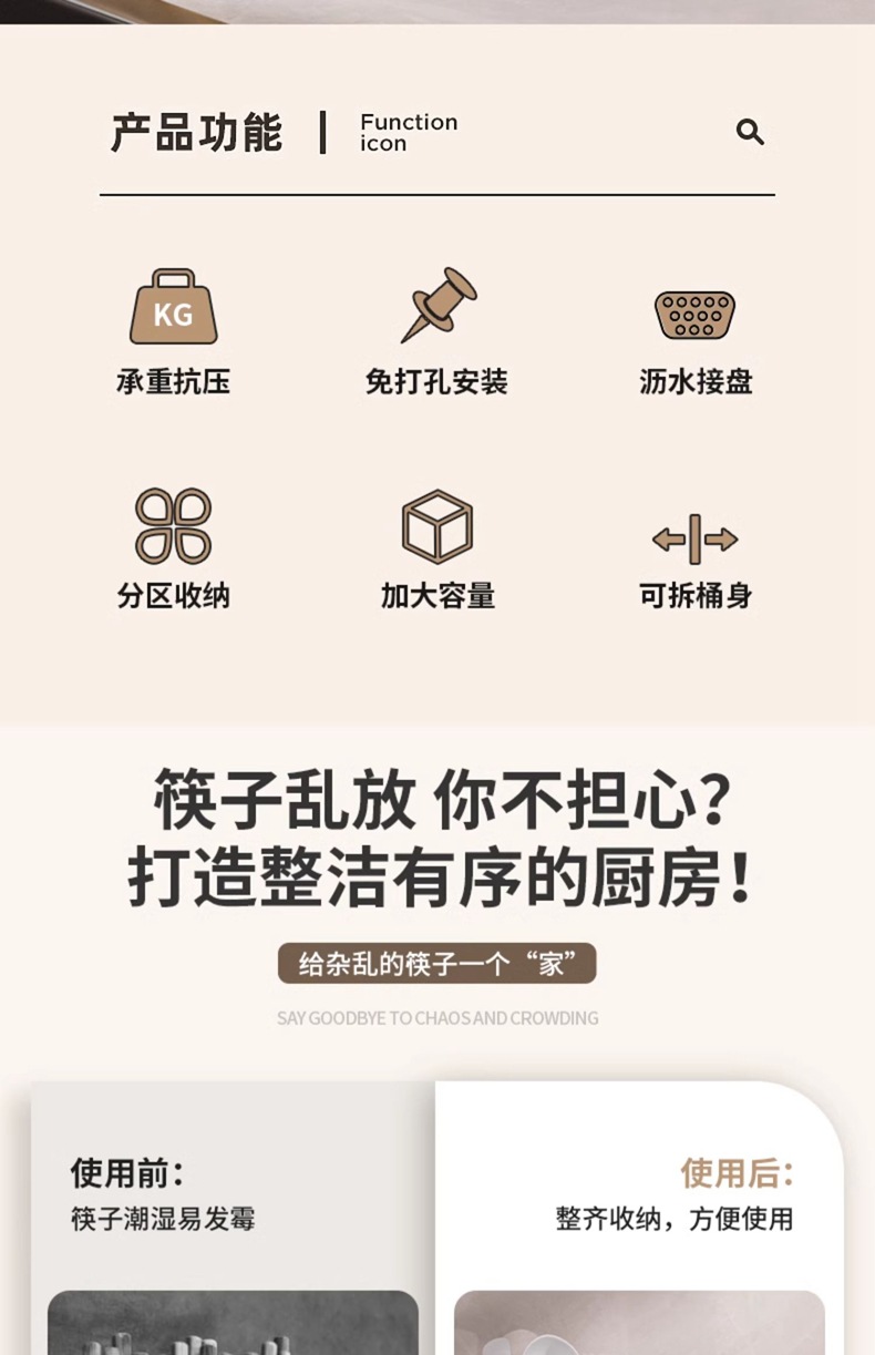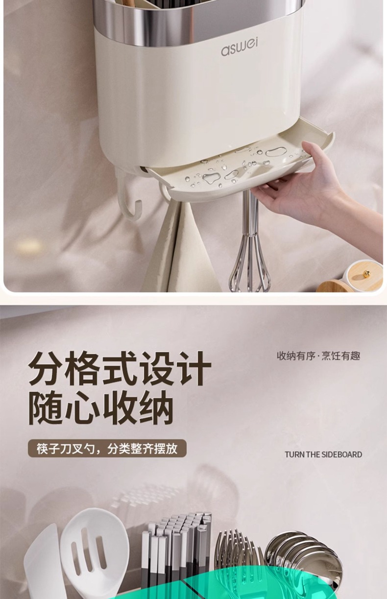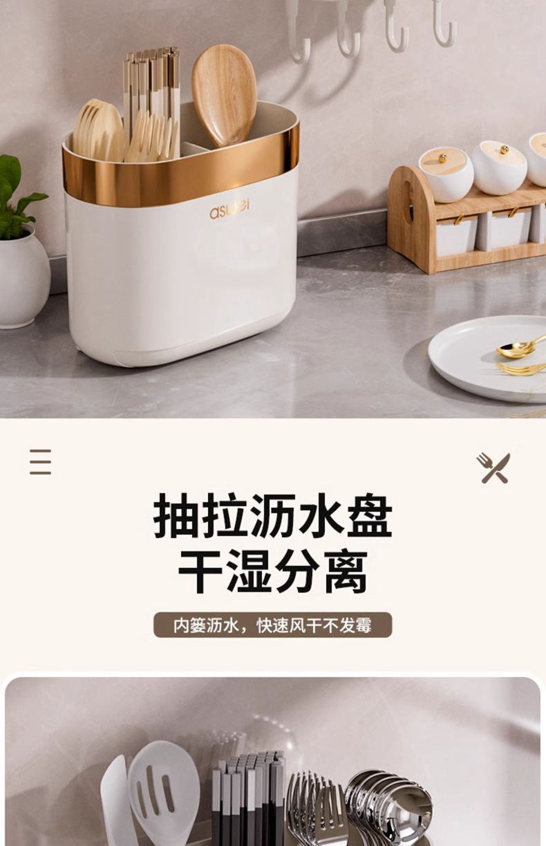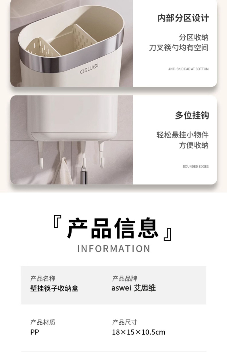 Caja de almacenamiento de palillos Tubo montado en la pared Soporte de almacenamiento de cuchara de cocina Jaula rápida de drenaje de alta gama nuevo hogar sin perforación