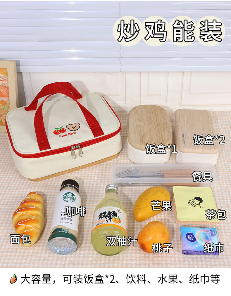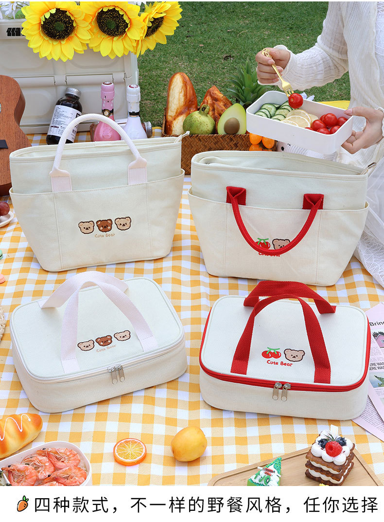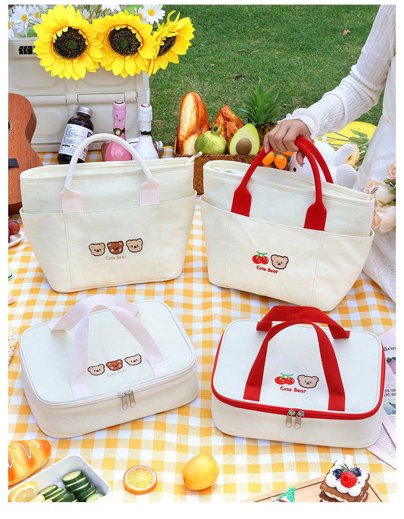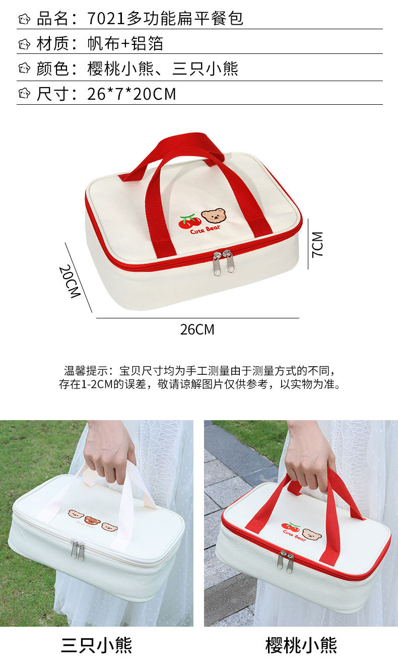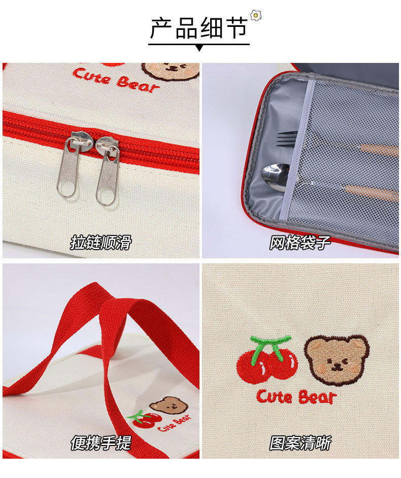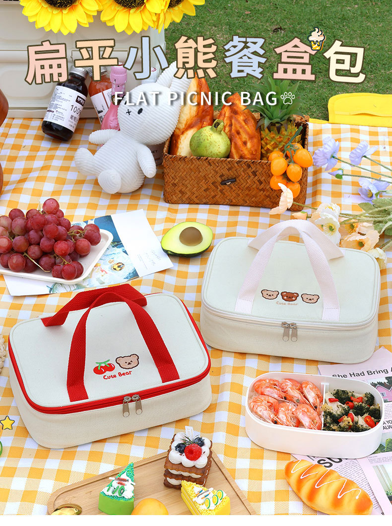Cherry Bear mano llevar caja de almuerzo plana bolso de alta apariencia Bento bolsa de picnic caja de almuerzo bolsa de aislamiento arroz envasado