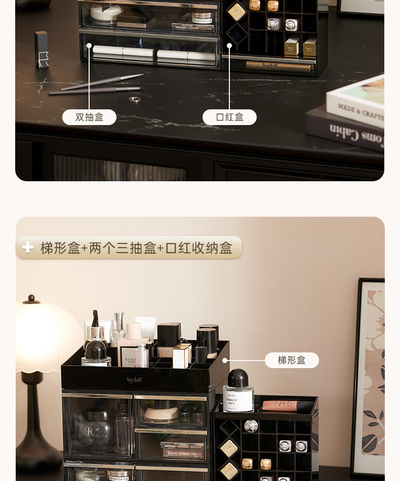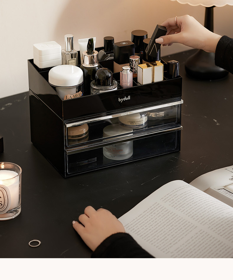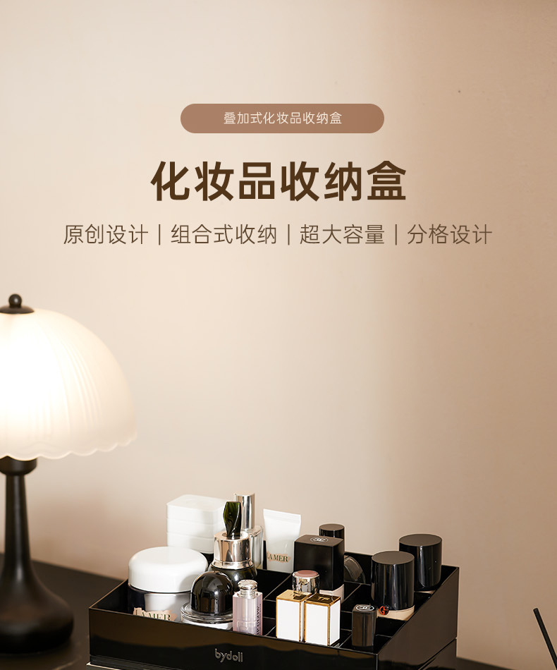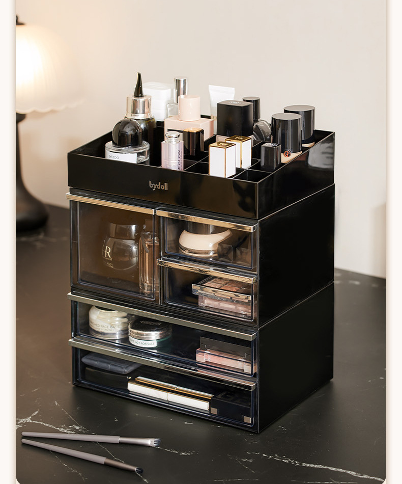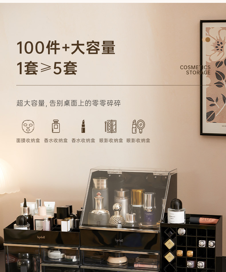 Biddoll tocador caja de almacenamiento de cosméticos escritorio combinación de alta gama de acabado de gran capacidad caja de resumen de productos para el cuidado de la piel