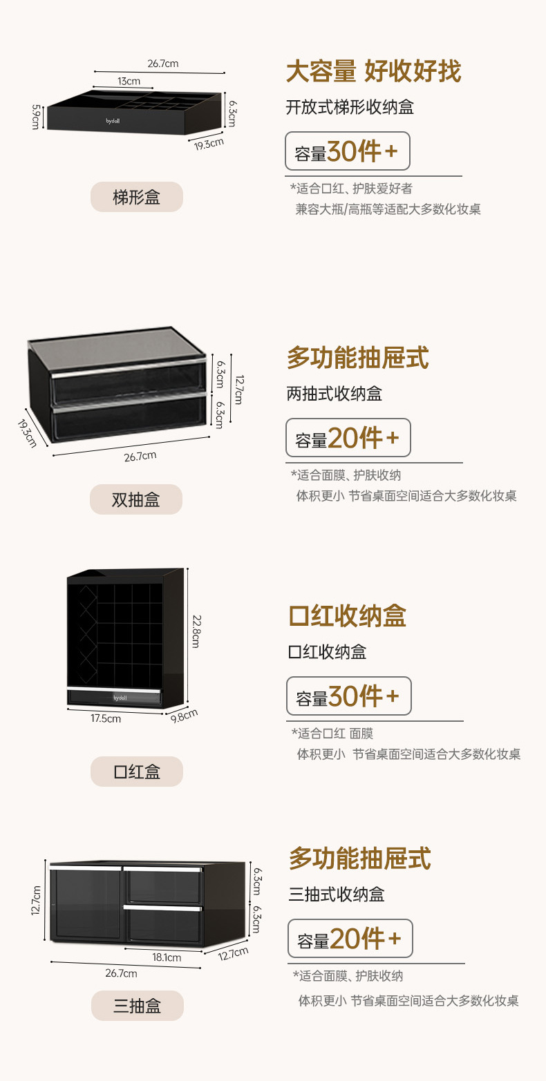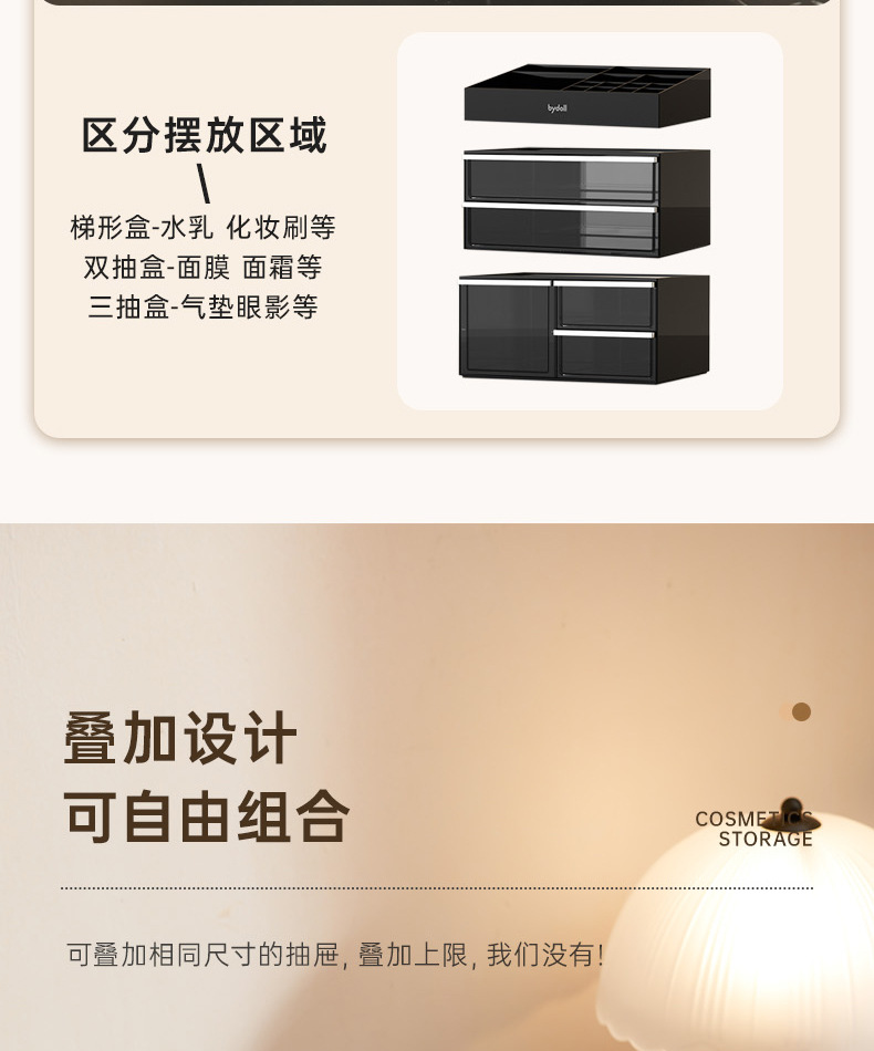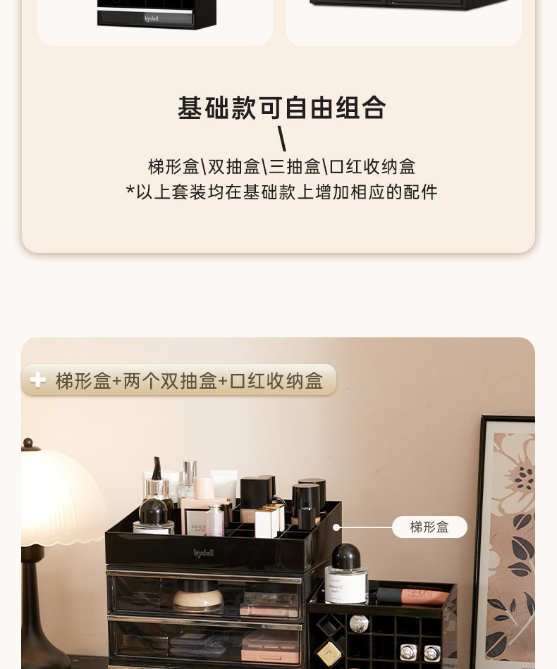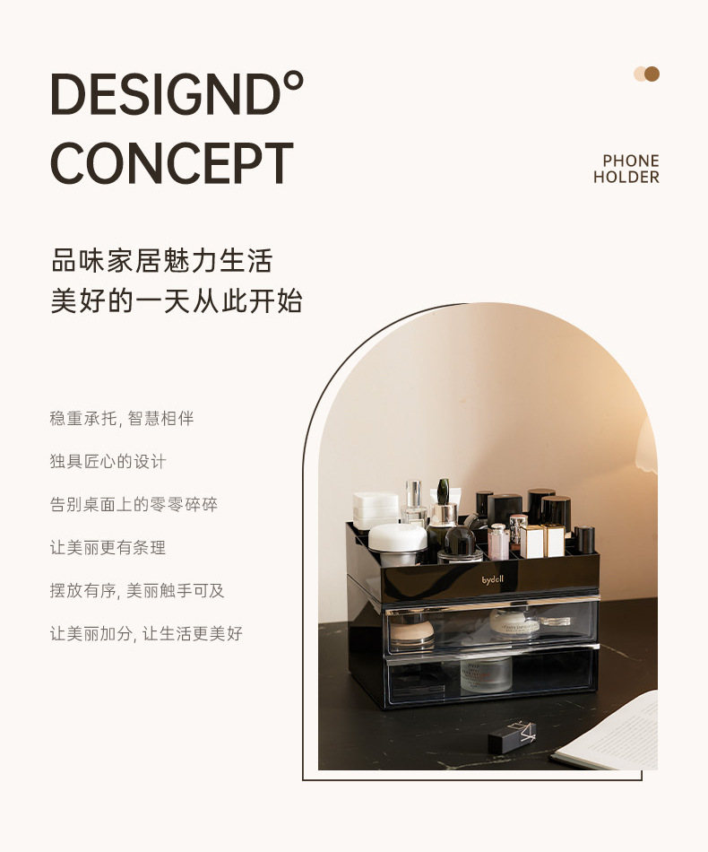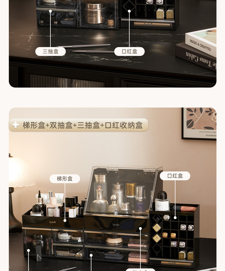 Biddoll tocador caja de almacenamiento de cosméticos escritorio combinación de alta gama de acabado de gran capacidad caja de resumen de productos para el cuidado de la piel