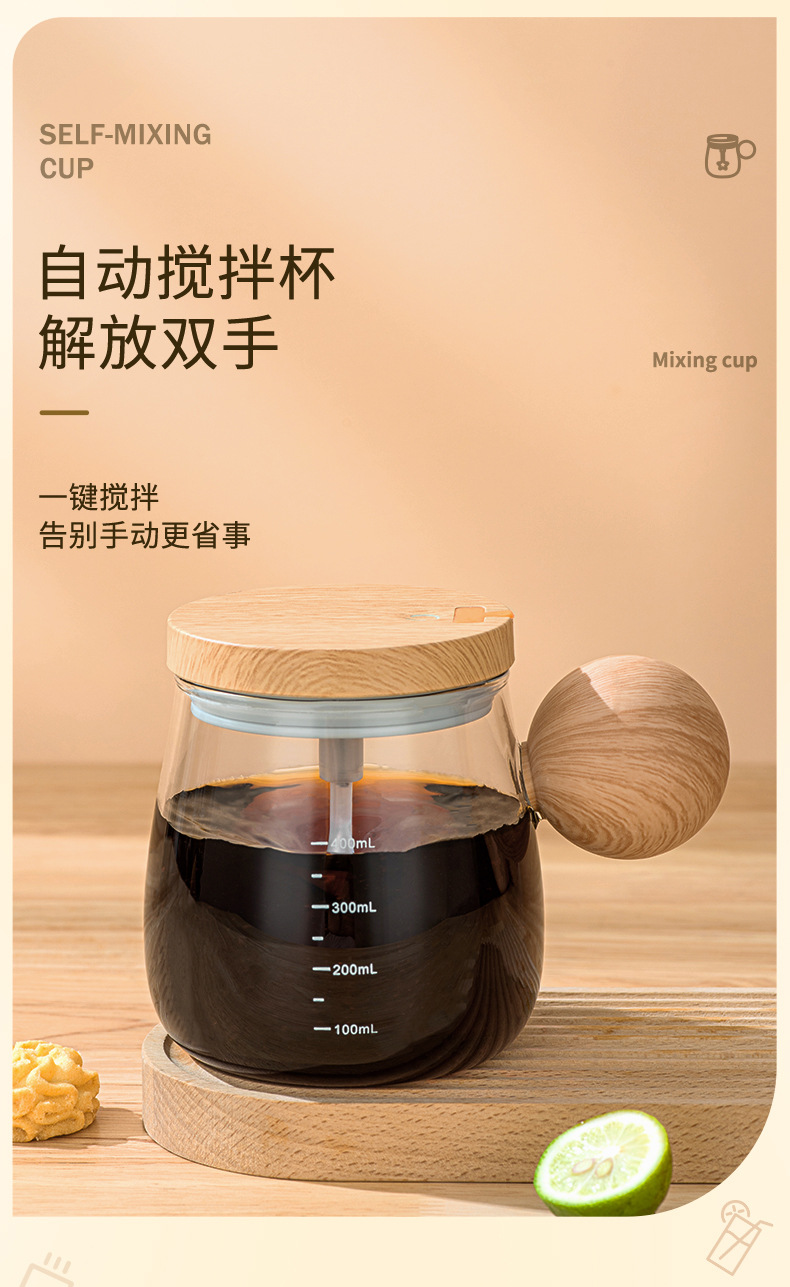 Taza de mezcla transfronteriza totalmente automática 2024 nueva taza de vidrio eléctrica agitada de oficina recargable taza de café al por mayor