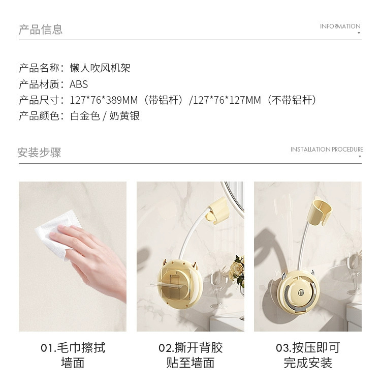 Secador de pelo perezoso soporte mano-libre montado en la mano sin perforar inodoro eléctrico secador de pelo rack de almacenamiento