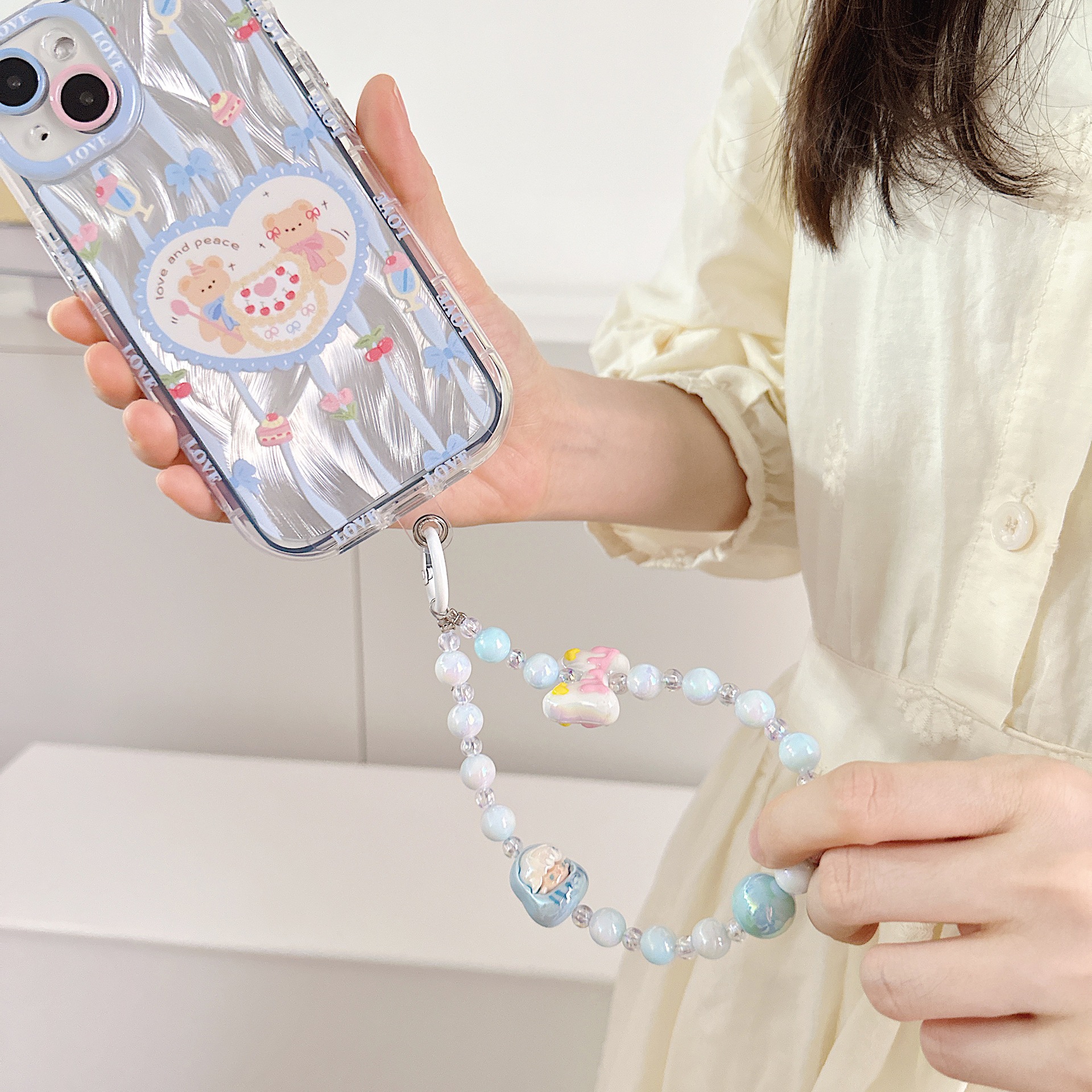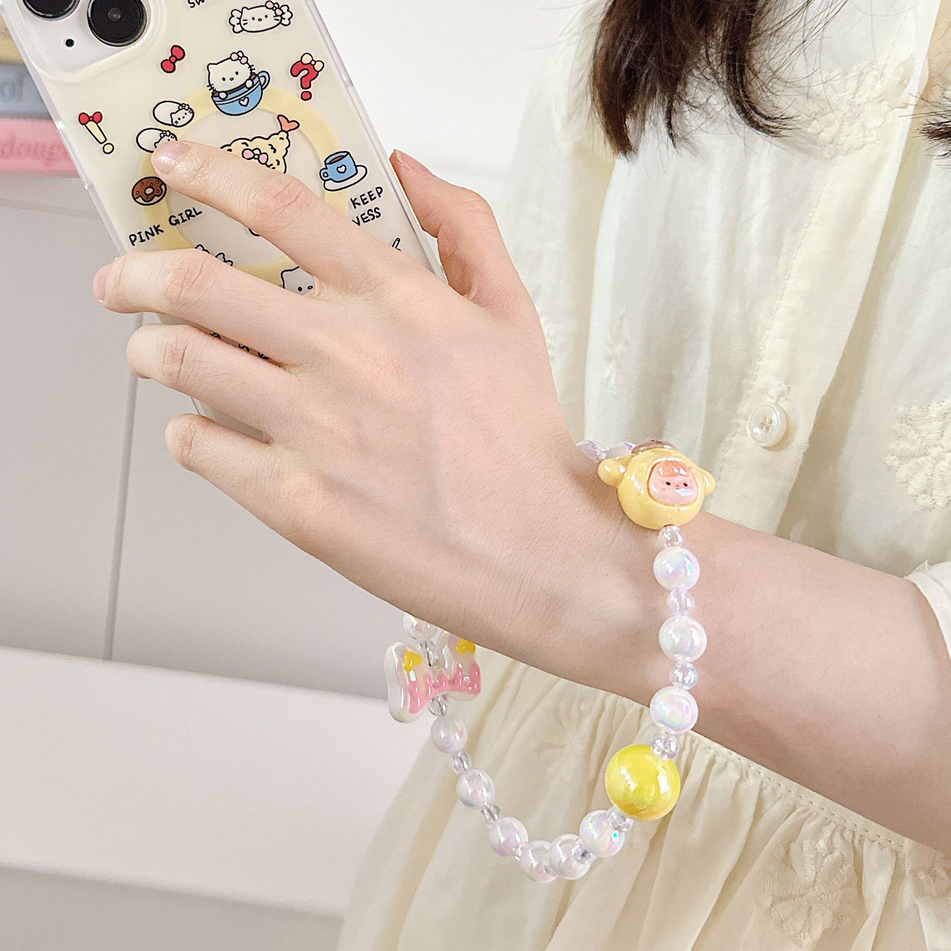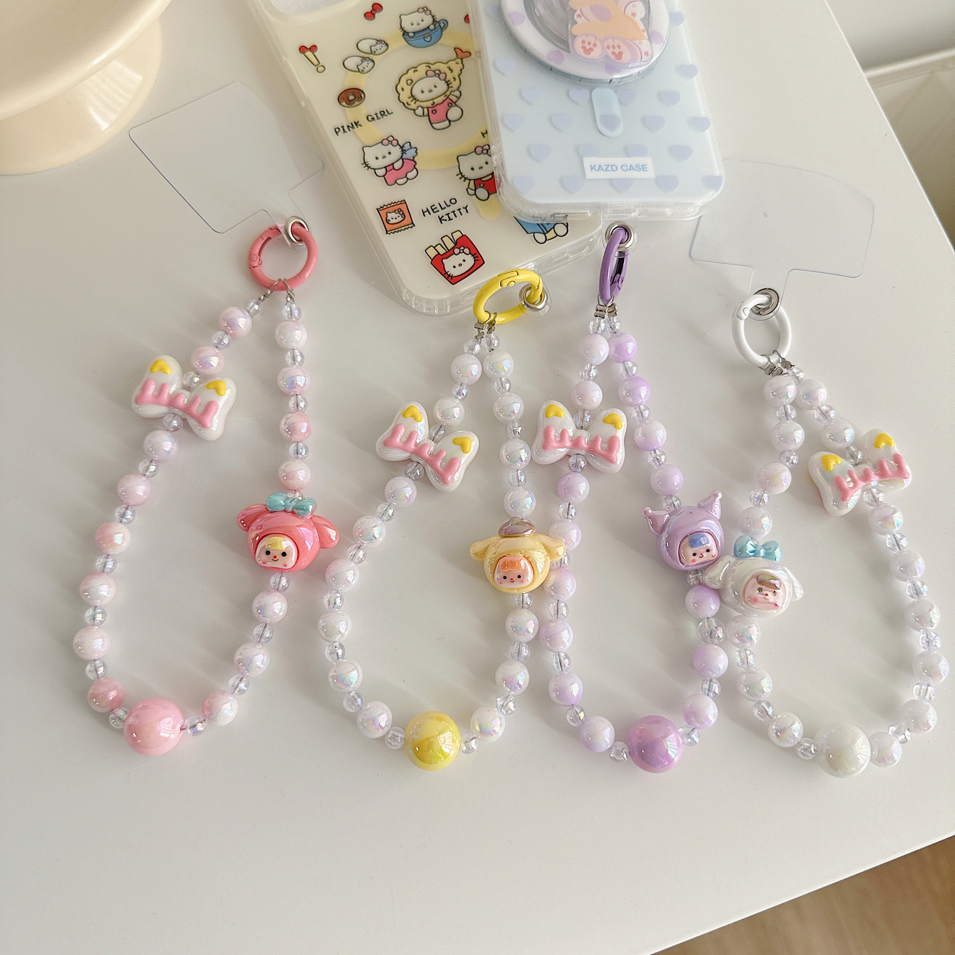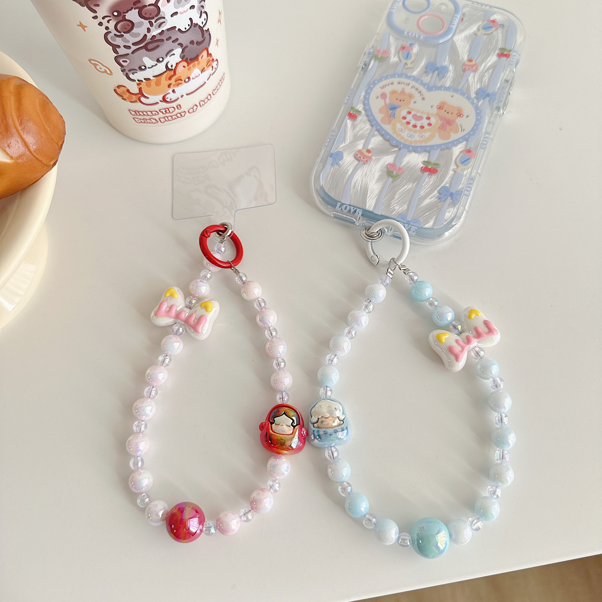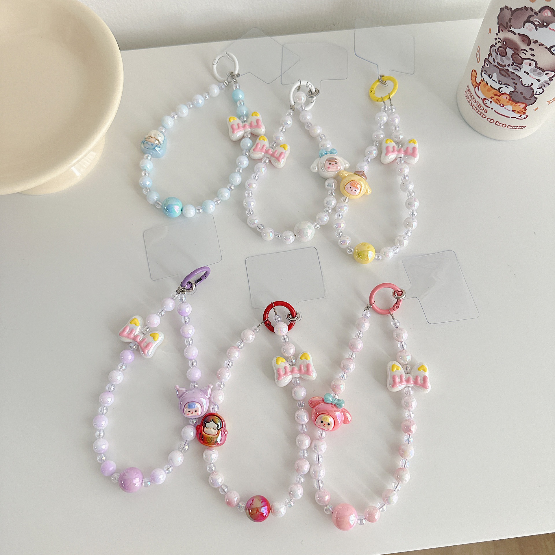 Dulce viento encantador cuentas de dibujos animados para teléfonos móviles colgante colgante colgante universal bolso colgante de cuentas hechas a mano colorido